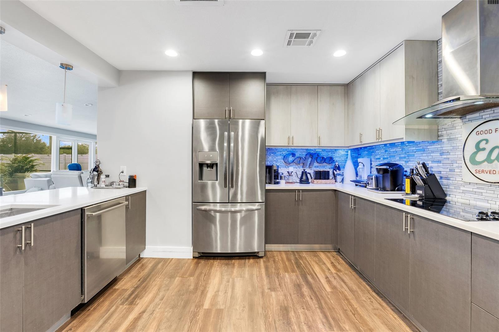 Under contract-accepting backup offers. Welcome to this beautifully updated modern pool home located in the heart of Dr. Phillips! This spacious 4-bedroom, 3-bathroom residence offers the perfect blend of style, comfort, and functionality. Ideal for both entertaining and everyday living. Step inside to an open-concept layout featuring a gourmet kitchen with sleek two-tone cabinetry, stainless steel appliances, under-cabinet lighting, and a stylish glass-tile backsplash. The adjoining dining and living areas are bright and inviting, boasting expansive dual French doors that lead out to the stunning screen-enclosed pool and patio area. The primary suite feels like a retreat, with a spa-inspired ensuite bathroom offering dual vanities, an oversized glass shower, and custom fixtures. The custom walk-in closet provides exceptional storage and organization. Additional bedrooms are spacious, with updated flooring and modern finishes throughout. Outside, enjoy your own private outdoor oasis, complete with a covered outdoor kitchen and lounge area, a resort-style pool, and ample space for relaxing or entertaining under the screened enclosure. Located minutes from Disney Springs, Restaurant Row, and top-rated schools, this home offers both convenience and tranquility in one of Orlando’s most desirable areas. Schedule your private showing today! Some Photos may be digitally altered. Buyers are advised to verify all property features and conditions in person.