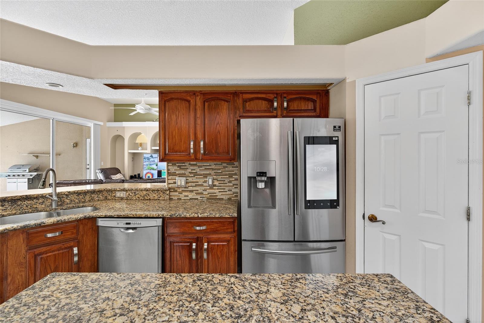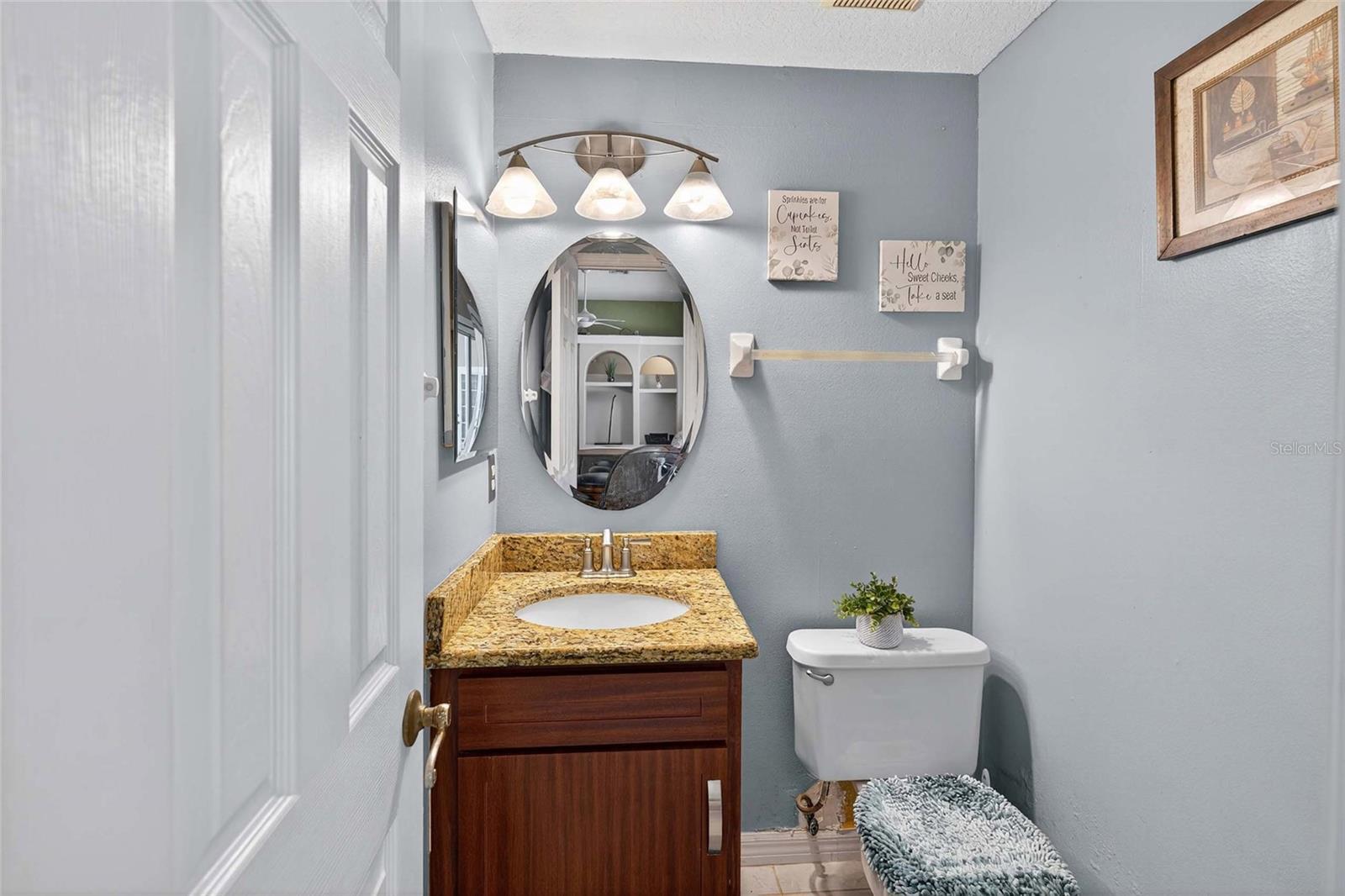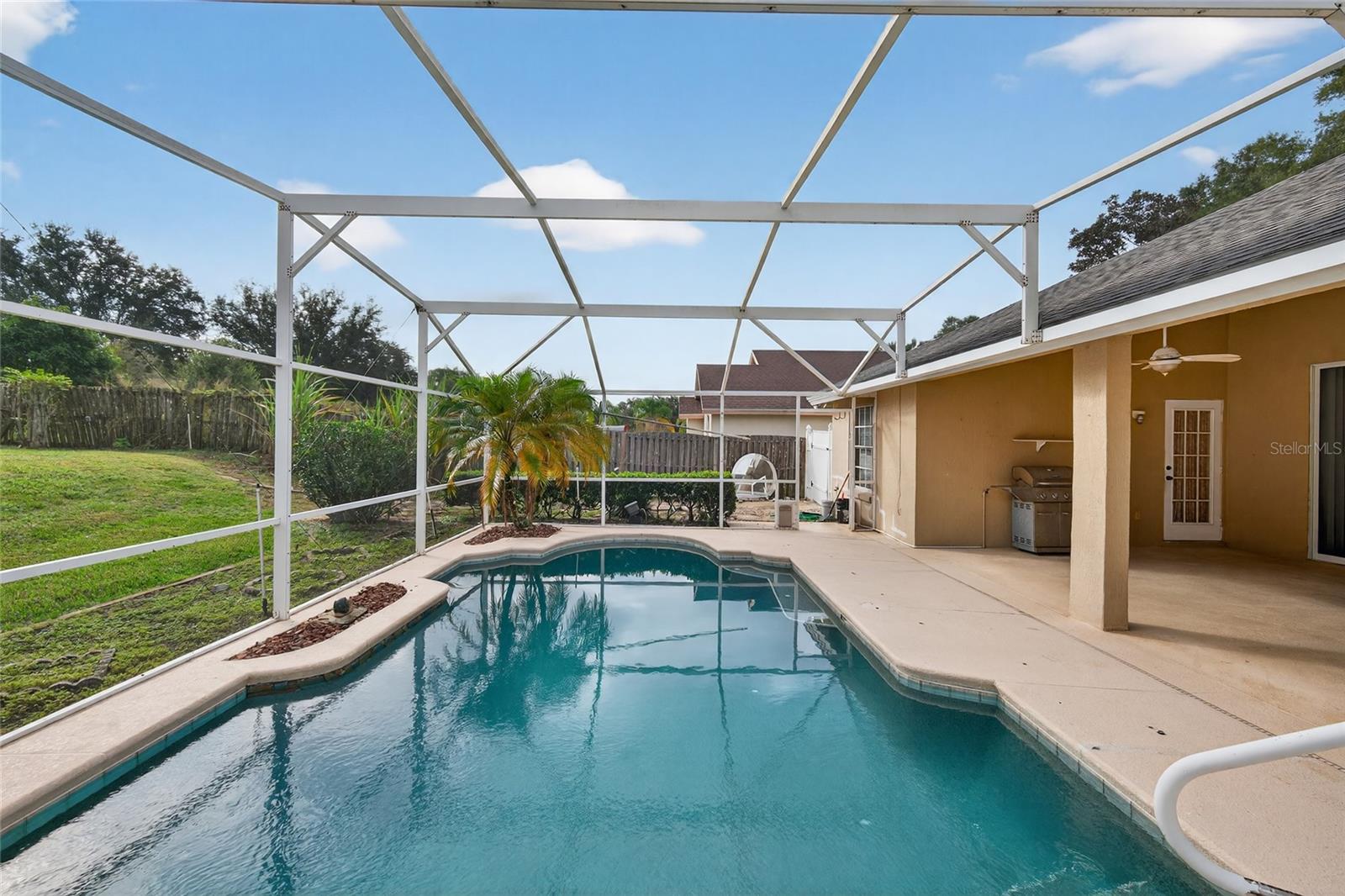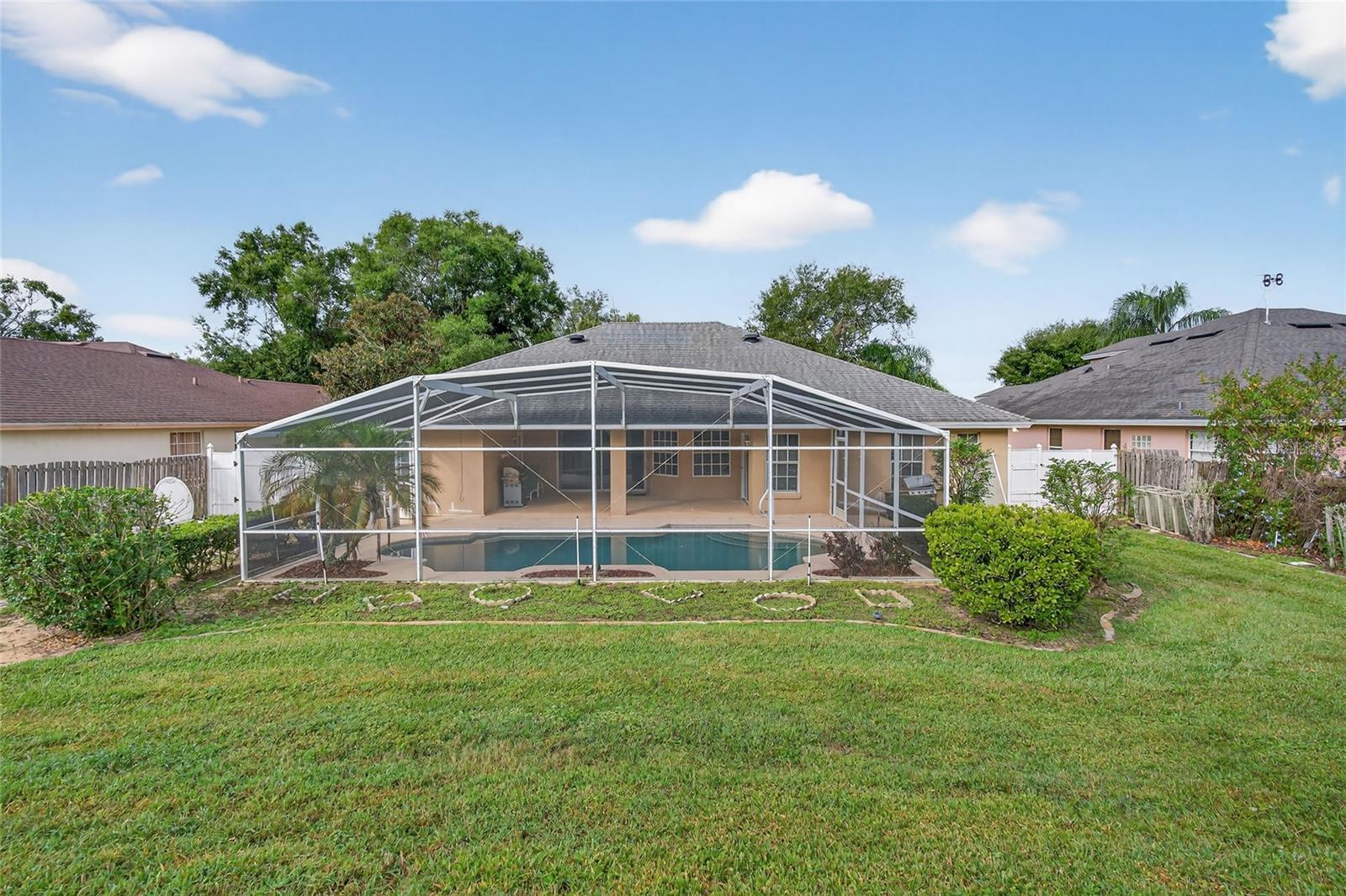 Welcome to this beautiful pool home featuring four bedrooms and two and a half bathrooms, along with an additional enclosed room that can serve as a flex space, home office, or extra bedroom. The home offers an open floor plan with a spacious kitchen boasting granite countertops and wood cabinetry, perfect for both everyday living and entertaining. Enjoy a large backyard ideal for gatherings and relaxation. Recent upgrades include a renovated master bathroom with a new shower, refreshed secondary bathrooms. Additional features include a water softener, a pool pump replaced in March, a 2017 roof, 2022 HVAC system, and a 2022 water heater. Conveniently located just minutes from nature trails, shopping, schools, and the Turnpike, this home is only 30 minutes from Orlando and major theme parks. Don’t miss the opportunity to make this stunning home your own!