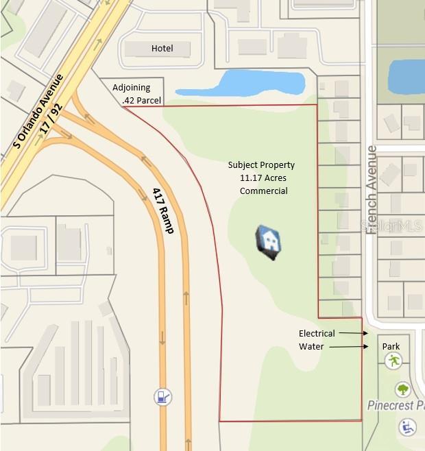 Unique Commercial 11+ Acres Parcel zoned GC-2; Adjoining .42 Acre GC-2 is also for sale with a 24' access easement from 17/92, both within City of Sanford. Possible package deal. Great exposure from 417 and 17/92 and provides for many options for permitted and conditional uses (see attached schedule). Great for Corporate Headquarters, Office Warehouse, Residential Development, and many other permitted and conditional uses, offering a large enough work and play space and setting. Fresh trails with great vegetation, local tennis courts and gazebo by entrance to property, plenty of shade and relaxation areas. Natural pond and water retention area with great buffer for privacy and natural freshness. Partially cleared and ready to start your development. Buyer/s and/or Buyer/s' Agent are responsible and should verify all public, and tax collector's data, as well as property size, square footage, zoning, and permitted uses and restrictions. Buyer/s must be accompanied by Buyer's Agent. Sold as is where is, with no representations or warranties. Listing Agent is Owner. Land Lease and Owner Financing are also options.