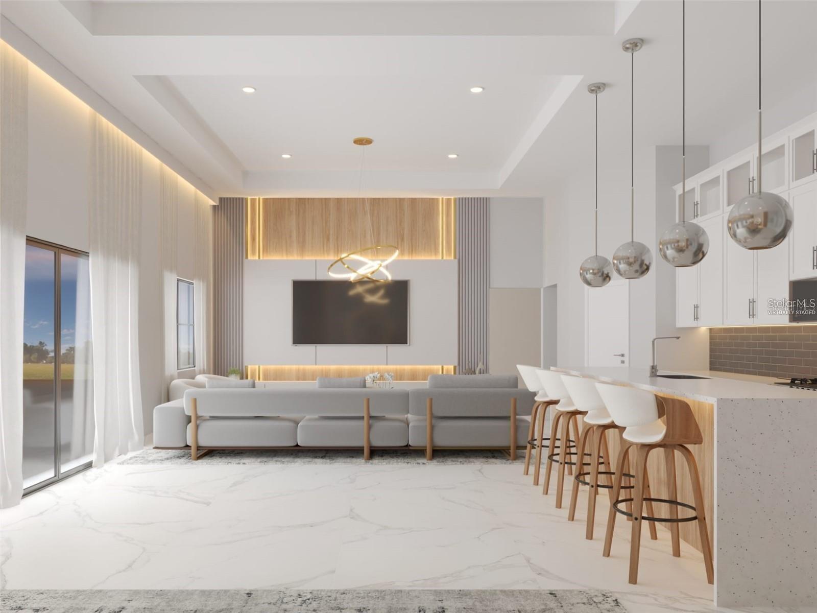 Available December 1st 2025. One or more photos were virtually staged! Uncover the hidden treasure of North Port and indulge in luxury living at its best with this breathtaking 4-bedroom, 3-bathroom home! Featuring top-quality finishes and modern designs throughout, the property includes:A gourmet kitchen with tall cabinetry (42-inch and 18-inch glass) and a large waterfall island in quartz countertops. Spacious bedrooms and bathrooms adorned with premium upgrades, 8-foot interior doors, impact-resistant doors and windows, and ceiling fans. Expansive living spaces with 14-foot ceilings in the central family room, abundant natural light, and a full floor of large porcelain tiles (48x48). A unique wide-opening patio door (12x8ft, impact-resistant tempered glass, 10mm) and sleek aluminum bifold doors. Don't miss the chance to see this extraordinary home! Schedule a viewing today and embrace the relaxed coastal lifestyle of North Port, where you can enjoy life to the fullest!