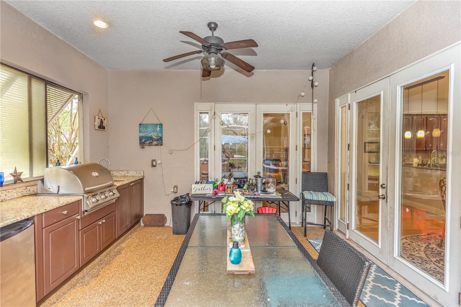 - French Doors, Lighting, Outdoor Grill, Outdoor Kitchen, Storage