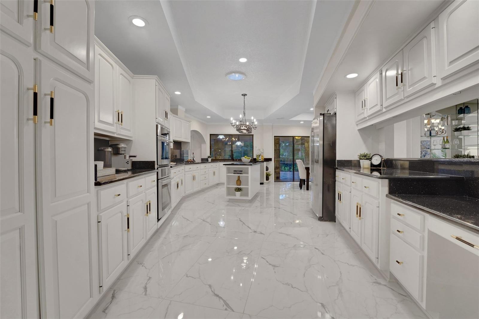 Ideally nestled within the established Wingfield Reserve community of Longwood, this stunning ONE LEVEL 4-bedroom, 4-bath home sits on a private one-acre lot and combines timeless elegance with modern updates; NO CARPET ANYWHERE. Calacatta Gold marble flooring flows through the main living areas, while luxury vinyl plank adds warmth to the bedrooms. The chef-inspired kitchen features Black Galaxy granite countertops, crisp white cabinetry, Avsiiile faucets, and a KitchenAid Pro Series stainless steel appliance suite. Designed for both comfort and style, the family room showcases a vaulted wood-beam ceiling and a custom fireplace feature wall. The primary suite offers a custom walk-in closet and a spa-inspired bath, while a separate in-law suite with a private entrance provides added flexibility. French doors open to a screened lanai with travertine tile decking, a summer kitchen and bar, and a sparkling pool surrounded by lush landscaping for a true resort-like retreat. Additional updates include a new irrigation system, newer A/C and water heater, and two septic tanks replaced three years ago. Ideally located off Markham Woods Road with easy access to I-4, shopping, dining, and Wekiwa Springs State Park, this home offers the perfect balance of privacy, natural beauty, and convenience in one of Longwood’s most sought-after communities. This property may be under audio/visual surveillance.