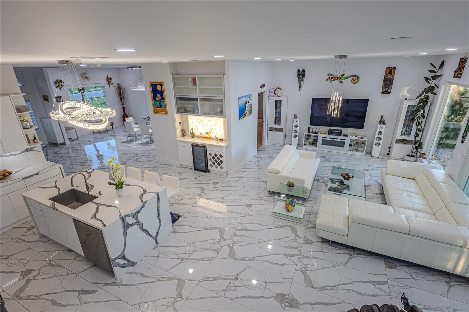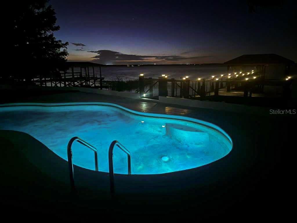 Completely Remodeled Waterfront Luxury Home – Boater’s Paradise on Lake Apopka Experience the ultimate in lakefront living with this stunning, turnkey home on Lake Apopka in Winter Garden, in the heart of a highly desirable GOLF CART DISTRICT. Boasting over 3,700 sq. ft. of beautifully remodeled living space, this 4-bedroom, 3.5-bathroom residence combines modern luxury with waterfront charm, offering breathtaking sunrise and sunset views every day. Every inch of this home has been meticulously upgraded with nearly $450,000 invested in 2024 renovations, creating a move-in-ready oasis with high ceilings, spacious open-concept living, and designer finishes throughout. Gorgeous porcelain tile and hardwood floors flow seamlessly across two stories, complemented by abundant natural light from all-new, upgraded windows. The gourmet kitchen is a chef’s dream, featuring quartz countertops, a large island with built-in cabinetry, stainless steel appliances, a backlit quartz bar, and a modern backsplash. Entertain effortlessly in the expansive dining room and living room framing incredible lake views. The master suite is a serene retreat with two walk-in closets, an oversized Jacuzzi bathroom, and stunning water vistas. Each bedroom boasts lake views, while a second-floor guest bedroom offers privacy, a separate bathroom, and noise-reducing flooring—perfect for another master bedroom, home theater or office. A dedicated office/den at the entrance is ideal for remote work or study. Outdoor living is exceptional with two enclosed and screened patios on the first and second floors, providing panoramic lake views. Boaters will love the expansive deep-water dock with a boat lift and the fun Margaritaville-themed bar. The backyard features a newly resurfaced saltwater pool with a new pump, a fully fenced private yard, fruit trees and mature, landscaped greenery creating a private oasis. Additional highlights include new windows, new HVAC, new solar panels (helping to keep the monthly electric bill under $100), smart thermostat, upgraded irrigation, and a two-car garage with built-ins. Located in a quiet, family-friendly gated community with golf-cart-friendly streets and direct access to the scenic West Orange Trail. Enjoy Winter Garden’s historic downtown just minutes away, with A-rated schools, shopping, dining, and the famous weekend farmers market. Only 20 minutes to Downtown Orlando and close to Disney, Universal, and major highways without the traffic. This is more than a home—it’s a boater’s and fisherman’s paradise, a lakefront retreat, and a perfect family haven all in one. Don’t miss this rare opportunity to own a completely remodeled luxury waterfront home with unmatched views and lifestyle amenities on Lake Apopka, offering over 30,000 acres of endless water fun! Price can be reduced by $40,000 if the buyer is willing to assume a solar panel loan at 3.49%!