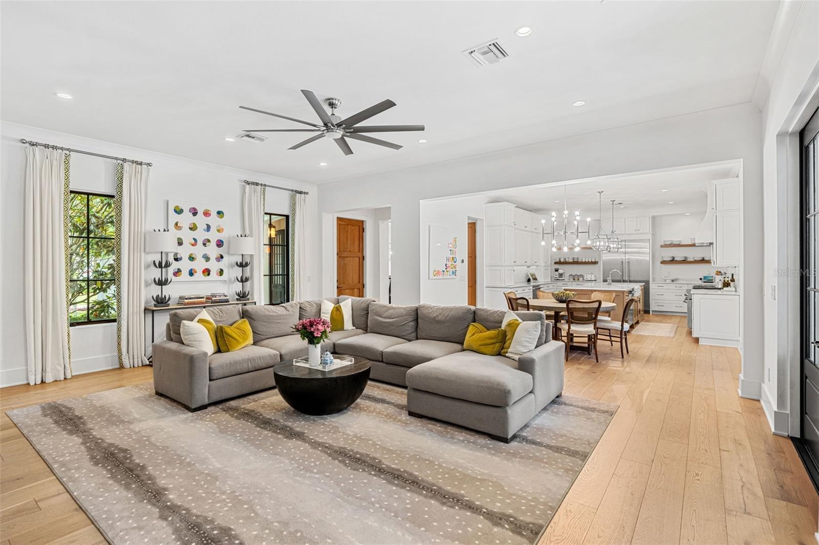 - Built-in Features, Ceiling Fans(s), Crown Molding, Dry Bar, High Ceilings, Living Room/Dining Room Combo, Open Floorplan, Primary Bedroom Main Floor, Solid Surface Counters, Solid Wood Cabinets, Stone Counters, Walk-In Closet(s)