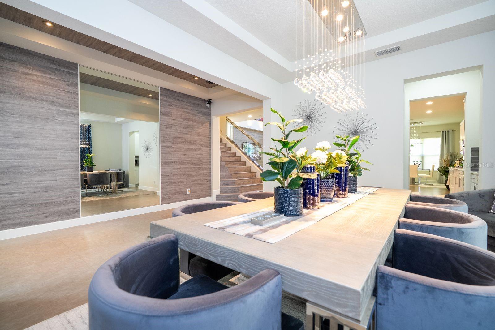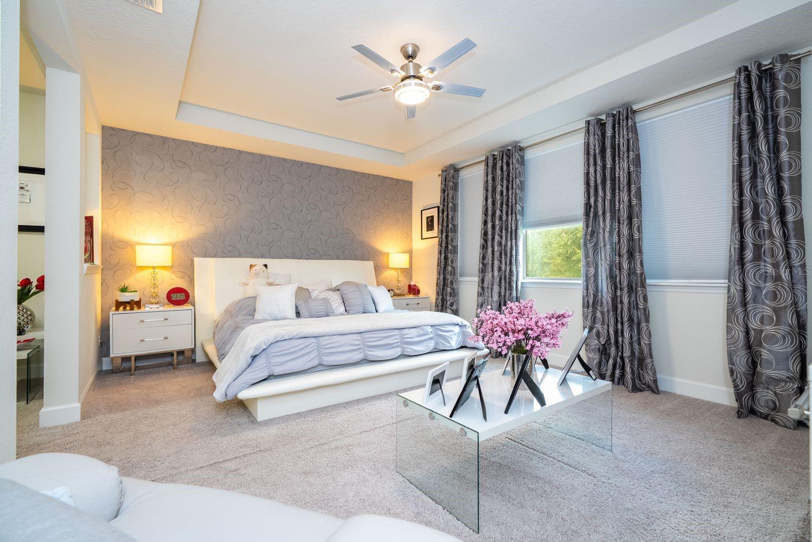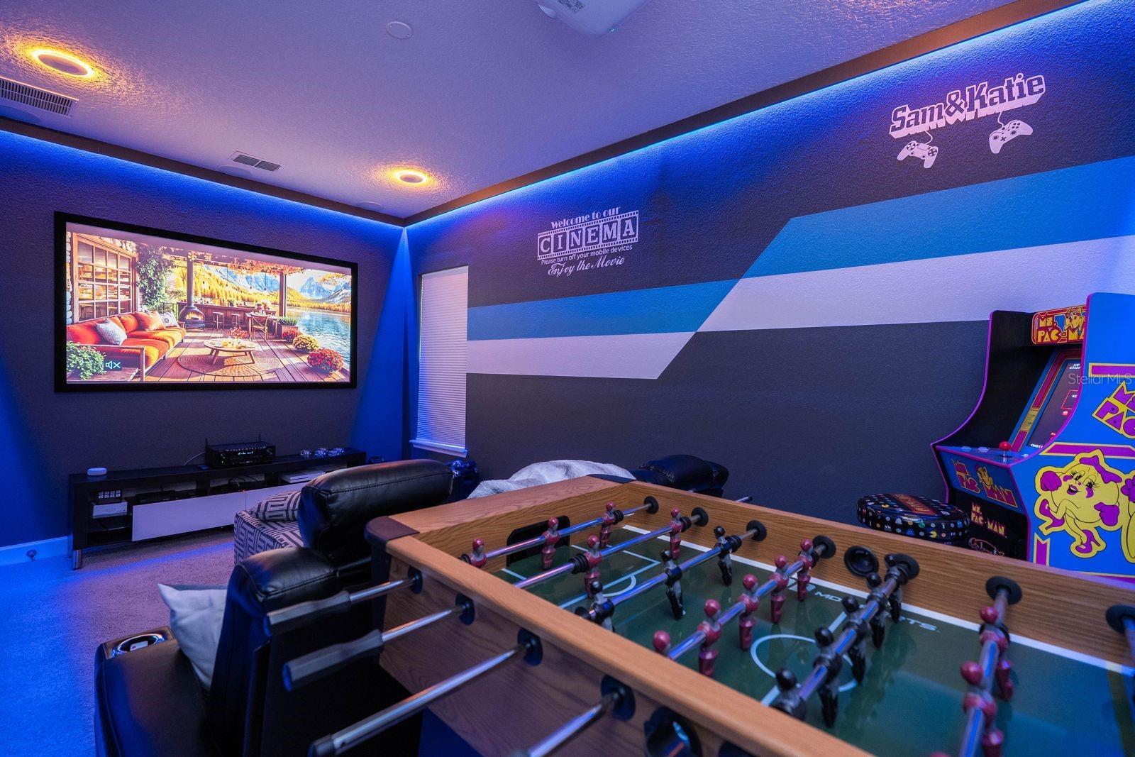 PRICE IMPROVED !!! Welcome to Royal Estates, one of the most reputable and desirable communities near Windermere, where you can enjoy the breathtaking Disney World fireworks from the privacy of your own backyard. This luxurious two-story residence, built in 2018 by Pulte Homes, exemplifies refined elegance, superior craftsmanship, and an array of high-end upgrades throughout. The grand foyer & family room open to an impressive 20-foot ceiling adorned with a stunning designer chandelier, setting the tone for the home’s elegance. The main living areas feature custom 32x32 porcelain tile, while the gourmet kitchen showcases Calacatta quartz countertops, premium finishes, and a seamless open-concept design ideal for entertaining. The home offers a thoughtfully designed floor plan, with the primary suite and three additional bedrooms located on the upper level, as well as a private movie theater complete with a 95-inch screen and projector. A full bathroom is conveniently located on the main floor for guests. Elegant glass stair rails, 8-foot interior doors, custom window treatments, a show-stopping dining room chandelier, and personalized his-and-her closets add to the home’s distinct sense of luxury. Step outside to a spacious backyard with a covered lanai, a separate entry to the pool bath, and space designed for both relaxation and entertaining. The oversized tandem three-car garage provides ample room for vehicles and storage. Residents of Royal Estates enjoy exclusive community amenities, including a resort-style pool, a cabana, and a playground, all within a serene, beautifully maintained neighborhood. The location offers unparalleled convenience — just minutes from Disney theme parks, major highways, fine dining, luxury shopping, A-rated schools, Disney Springs, Downtown Orlando, and Winter Garden Village. You won’t find another home of this caliber — over 4,200 sq. ft. with this level of upgrades — at this price point. This is a truly exceptional opportunity that will not last! Call now to schedule your private tour.