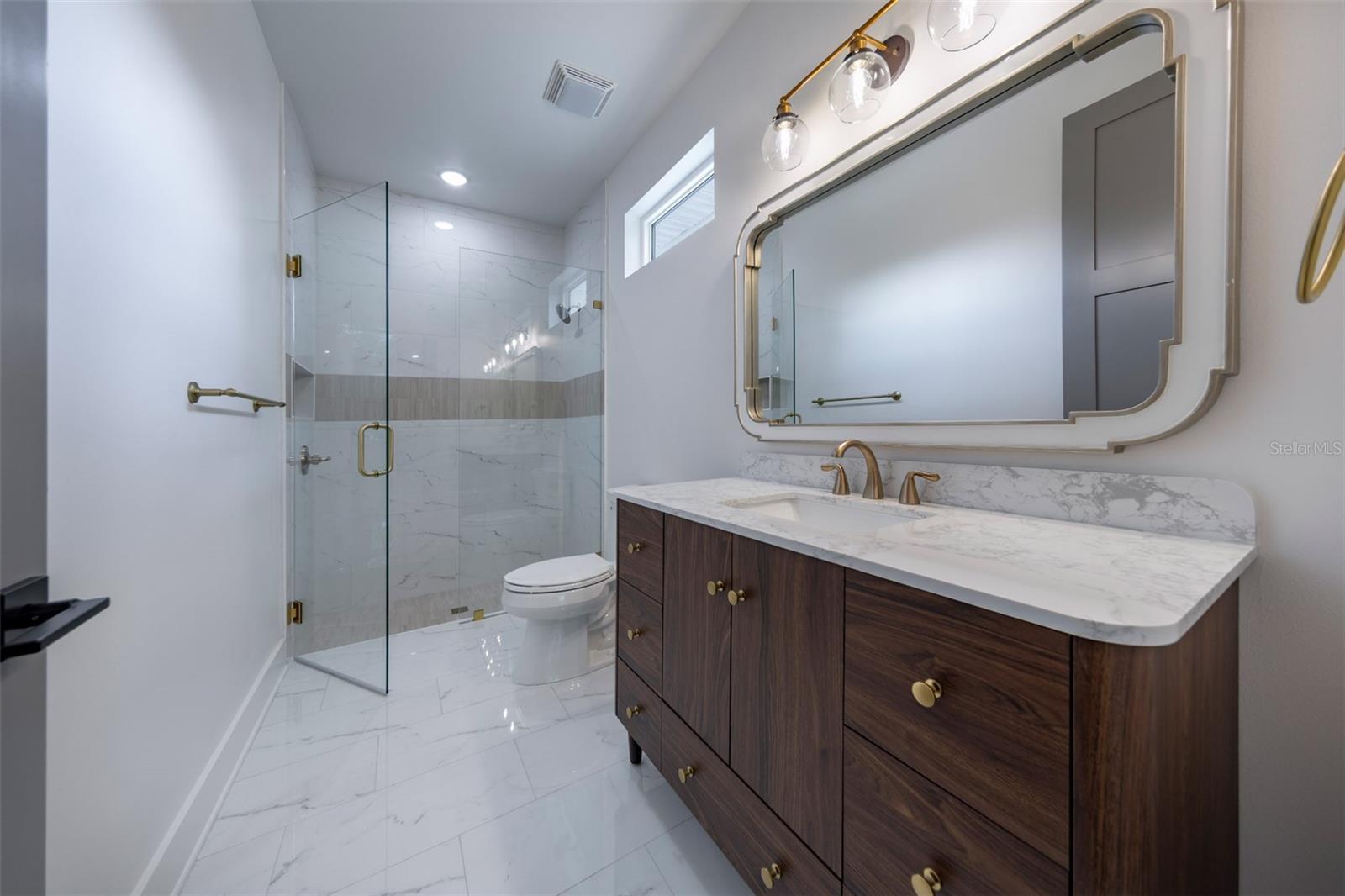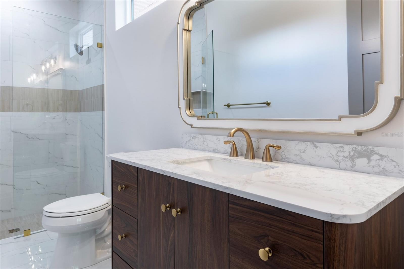 An incredible location with accessibility to its charming downtown main street, that College Park is known for. Enter inside the Silverleaf, a two-story new construction residence concepted by Soco Home Collection. It is transitionally designed with elevated selections and enduring architecture. Encompassing five bedrooms, a primary and guest suite on the first floor and three bedrooms, two baths upstairs with flex space, all rooms generously sized sprawling across nearly 4,000 square feet. Experience an open living concept with wide plank white oak flooring in all living spaces and 11-foot ceilings which add to the spaciousness of the home. A wide entry foyer features inlaid herringbone tile and enjoys clear views to the backyard through stacking sliding doors to pool. An impressive gathering space makes entertaining easy with an expansive kitchen with clean lines featuring custom double stacked cabinets to ceiling, an oversized island with quartz counters that provides loads of workspace for the emerging chef. A marble-designed backsplash adds character, finished with upgraded gold accented fixtures with sophisticated lighting warming the space. Upscale Bosch appliances and Fisher Paykel refrigerator all panel fronted for continuity. A generous closet pantry is fully customized for organization. This home is filled with storage. Kitchen also features a combined dining space flanked with windows and signature lighting overhead. All spaces blend, with the living room opening to covered porch, and include a stylish wet bar with floating wood shelving and customized tile accents. An outdoor oasis awaits with a sparkling saltwater pool and generous green space for enjoying Florida fall nights. Primary suite is a retreat with ample space and great light. Primary bath is neutral toned with walk-in shower with seamless glass enclosure, dual sinks with carefully selected details, all adding to the elegance. Great primary closet is fully fitted with custom closet organization, making move-in a breeze. The additional first-floor office or guest room welcomes you with custom barn doors with modern hardware and a full bath to make any guest feel right at home. Upstairs finish level continues with consistent wood flooring, customized bath selections and spacious secondary bedrooms. All bedroom closets have custom organization, so every detail is accounted for. Other essential details include oversized garage with flooring finish, paver drive and walkway, professionally landscaped with irrigation system, dimmable recessed lighting throughout, smooth finish drywall, reinforced TV walls for ease of hanging, additional outlets for holiday decorating, additional storage closets strategically placed, generous secondary bedroom and bath sizes all with walk-in closets, summer barbeque in covered porch, fully fenced yard, Pebble Tec pool finish and more. College Park is uniquely close to downtown Orlando, a short distance to Edgewater Drive which is a special town center with locally owned retail, restaurants and shopping unique to this neighborhood. Enjoy top-rated schools and conveniences to many amenities and major roadways. Simplify your life, move right in and capture the reason why so many choose College Park to call home.