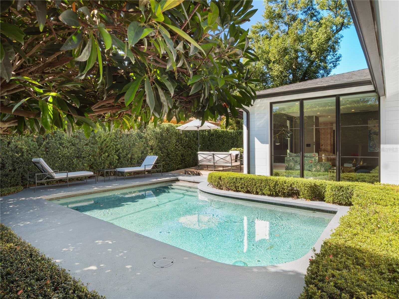 Under contract-accepting backup offers. Sophisticated and timeless, this stunning one-story home was completely reimagined in 2019 by multi-award-winning builder and design through Z-Properties. Taken down to the studs and rebuilt with the finest materials, this split-plan three-bedroom, three-bath residence blends modern design with an inviting, incredible design feel. Gorgeous high grade wood flooring throughout along with expansive windows and walls of glass flood the interiors with natural light, taking advantage of picturesque views! The backyard is a sanctuary setting with Signature Landscape mature landscaping and sparkling pool and separate spa. The open concept design is ideal for daily living and entertaining, with a seamless flow extremely well thought-out living areas. A designer-inspired gas fireplace in the dining area creates a sophisticated and welcoming ambiance, while two sets of glass doors in the living room open to the inviting outdoor living spaces. The stately kitchen is a showpiece, featuring Thermador Pro Series appliances, a Sub-Zero wine tower, and elegant counters that elevate form and function. The primary suite offers a private retreat with a generous walk-in closet and a spa like well-appointed bath. Two additional bedroom suites are equally refined, each with custom closets for optimal storage and organization. Outside, every detail has been thoughtfully curated. The private front courtyard, centered around a tranquil Zen fountain private courtyard, sets the tone for the home's refined elegance. The rear outdoor living area features Brazilian IPE wood decking surrounding the heated saltwater pool, alongside lush landscaping, complete with sculpted hedges and tropical palms, creates a resort-like ambiance. A built-in summer kitchen includes a gas grill and green egg off the kitchen, and flex space is framed by a beautiful bougainvillea hedge for added serenity, ideal for effortless outdoor entertaining. Lastly there is a fully finished garage with indoor/outdoor carpeting and is temperature controlled with its mini-split AC unit. Residents of Hollieanna Shores enjoy deeded lake access to Lake Maitland, part of the prestigious Winter Park Chain-of-Lakes, via a private community boat ramp. Ideally with convenient access to major roadways, this exceptional home offers easy commutes to downtown Winter Park, Orlando and area airports, a sophisticated retreat in one of Central Florida's desirable Maitland/Winter Park hidden gem neighborhoods!