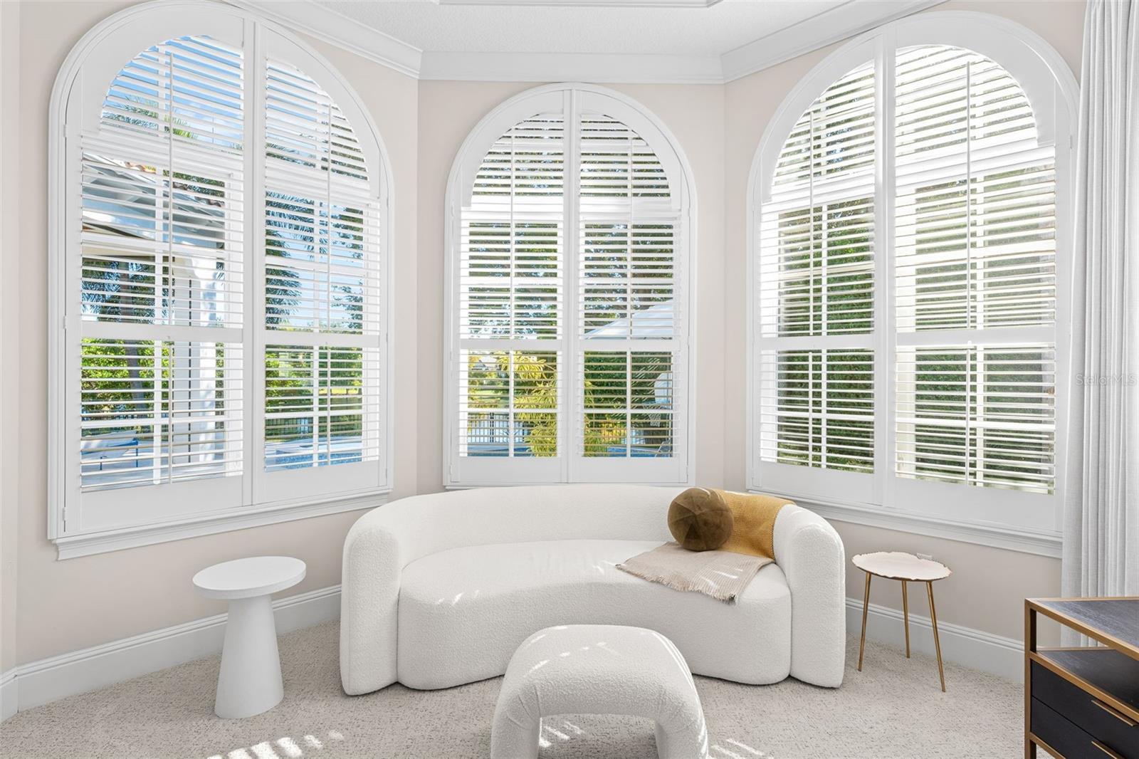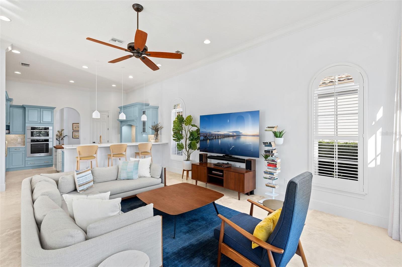 - Cathedral Ceiling(s), Ceiling Fans(s), Coffered Ceiling(s), Crown Molding, Eat-in Kitchen, High Ceilings, Kitchen/Family Room Combo, Open Floorplan, Primary Bedroom Main Floor, Solid Wood Cabinets, Split Bedroom, Stone Counters, Thermostat, Vaulted Ceiling(s), Walk-In Closet(s), Wet Bar, Window Treatments