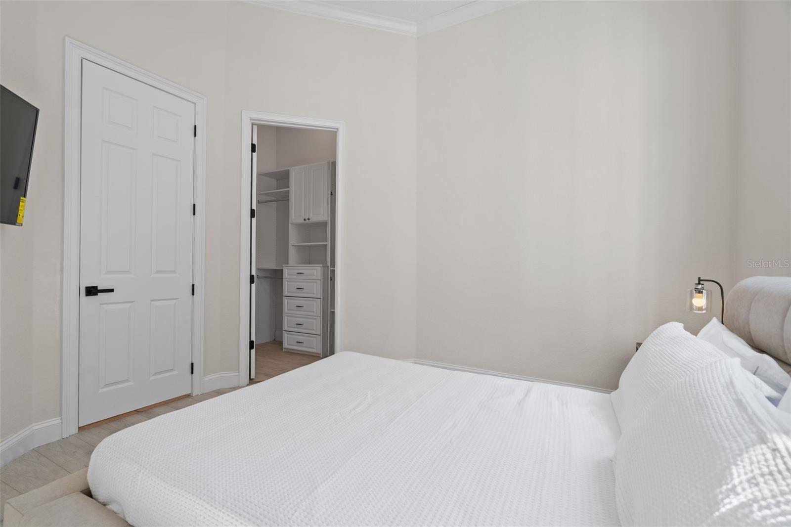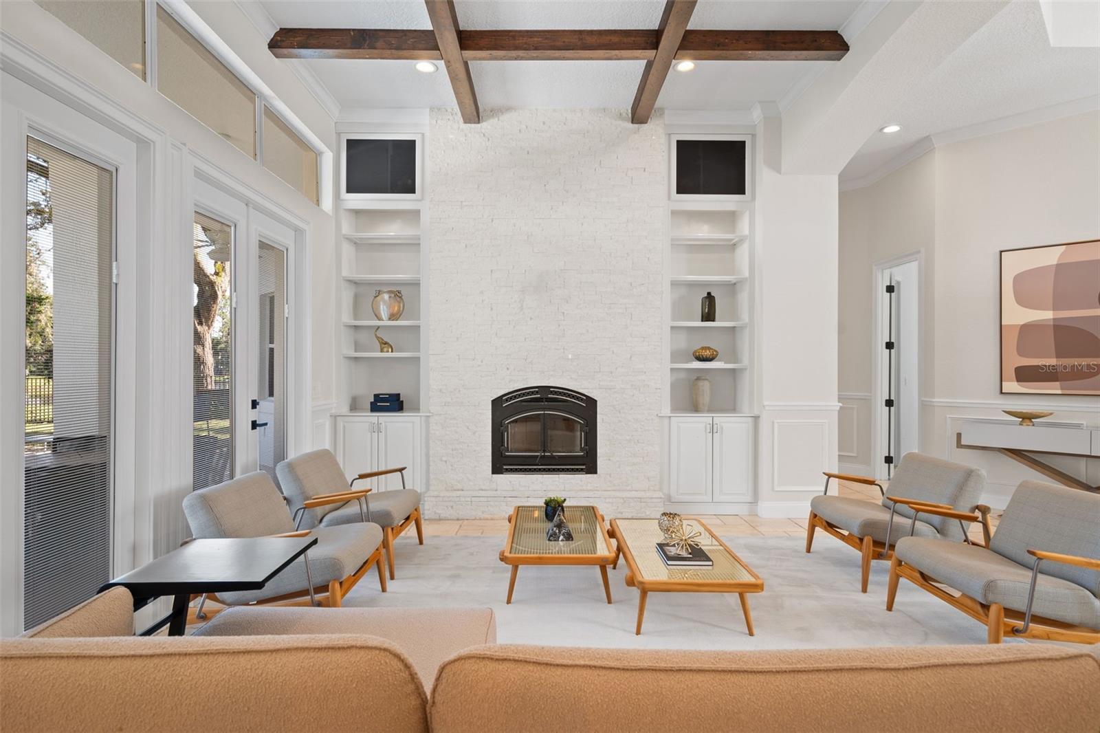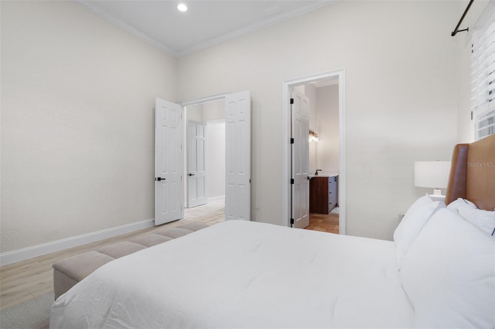 Beautifully renovated residence tucked away on one of the most private and tree-lined streets in the prestigious Lake Nona Golf & Country Club. Set on an oversized lot with mature landscaping and tranquil partial pond views, this elegant home blends timeless design with modern sophistication.A circular paver driveway leads to a rare 4-car garage, offering impressive curb appeal and generous guest parking. Inside, the open floor plan is filled with natural light and features travertine flooring, custom millwork, and a stone wood-burning fireplace. The new gourmet kitchen showcases white quartz countertops with waterfall edges, Sub-Zero wine storage, Thermador gas cooktop, KitchenAid refrigerator, and designer cabinetry.The primary suite features wood floors, coffered ceilings, dual walk-in closets, a spa-style bath with garden tub and walk-in shower, and direct pool access with peaceful backyard views.Outdoor living includes a private pool and heated spa, surrounded by tropical landscaping and a fenced yard that offers both comfort and openness. The covered patio is prepped for a future summer kitchen, providing an ideal space for relaxing or entertaining.Additional highlights include a versatile upstairs guest suite or bonus room with private bath and breakfast bar, a study or 3rd bedroom with pool bath access, and a second main-level suite.Recent updates include new AC systems (2025), new water heater (2025), new kitchen cabinetry and quartz countertops (2024), and modern LED lighting throughout. Offered fully furnished by MAX Home Design, this move-in ready home presents exceptional value within one of Orlando’s most exclusive gated communities—featuring a Tom Fazio golf course, clubhouse dining, fitness center, tennis courts, and 24-hour security.Experience resort-style living in Lake Nona Golf & Country Club, just minutes from Medical City, UCF Lake Nona Hospital, and Orlando International Airport.