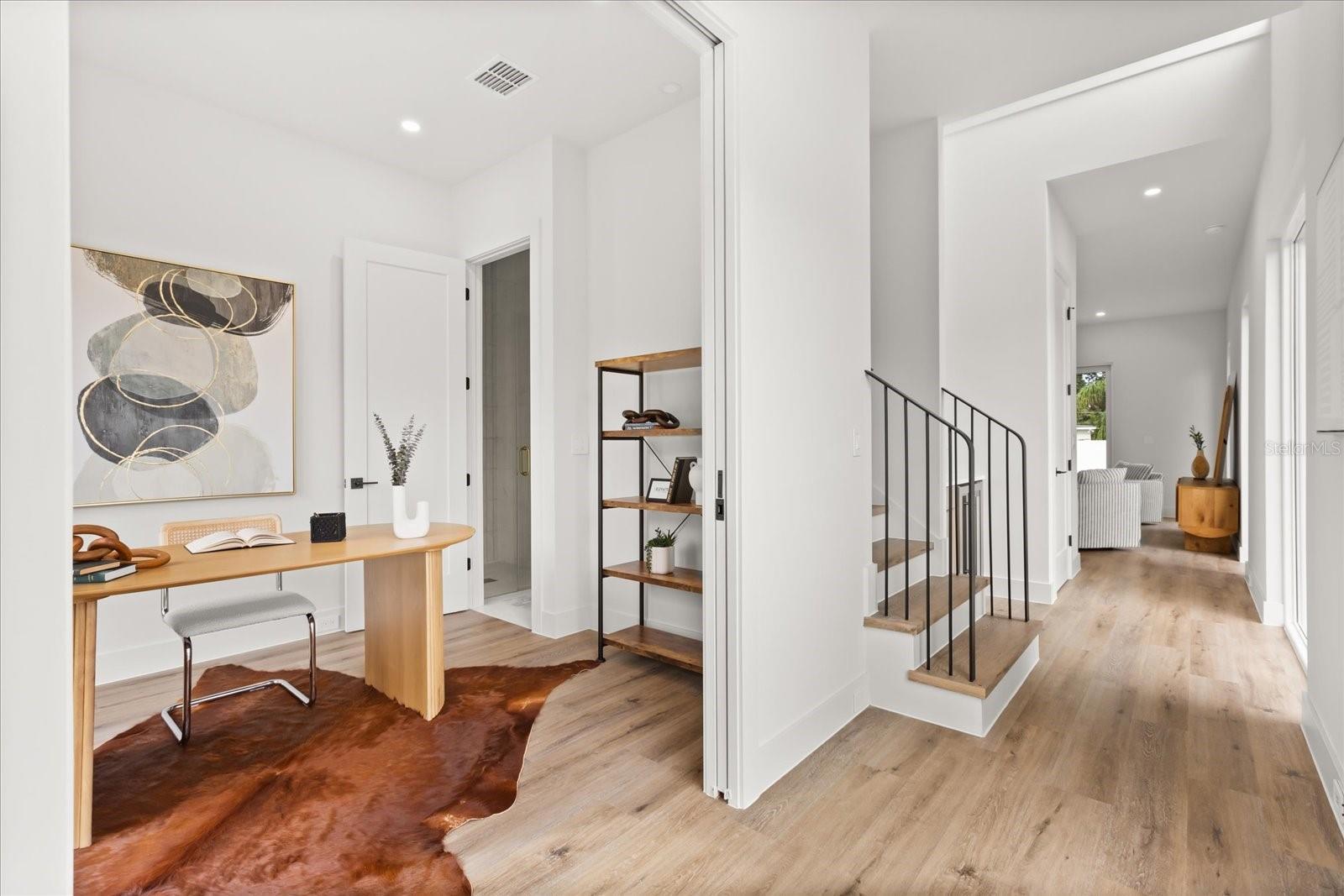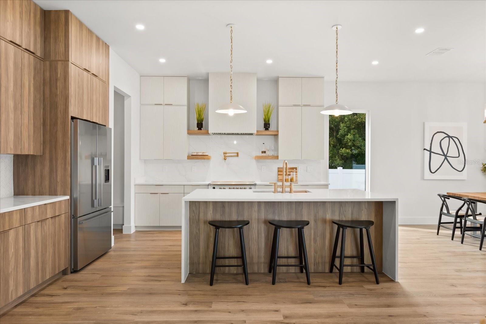 Under contract-accepting backup offers. Step inside and discover a home designed for connection, comfort, and modern living. Natural light fills the open-concept main floor where a chef-inspired kitchen with a pot filler, oversized island, and top-tier appliances becomes the heart of the home. The living and dining areas flow seamlessly, creating a warm, social space perfect for gatherings large or small. Tucked just off the entry, a stylish office and full bath add flexibility for guests or working from home. Upstairs, a spacious loft and family room provide room to unwind, while the luxurious primary suite feels like a private retreat with a spa-style bath featuring dual vanities, soaking tub, and an oversized wet room shower. Two additional bedrooms share a beautifully designed Jack and Jill bath. Enjoy peaceful mornings on the inviting front porch or end your day on the covered back patio overlooking the fenced, manicured yard. With thoughtful details like a wine fridge and dry bar, tray ceilings, and high-end finishes throughout, this move-in-ready 2025 new build blends everyday function with modern elegance, just minutes from the heart of Orlando’s sought-after SODO district, dining, and parks.