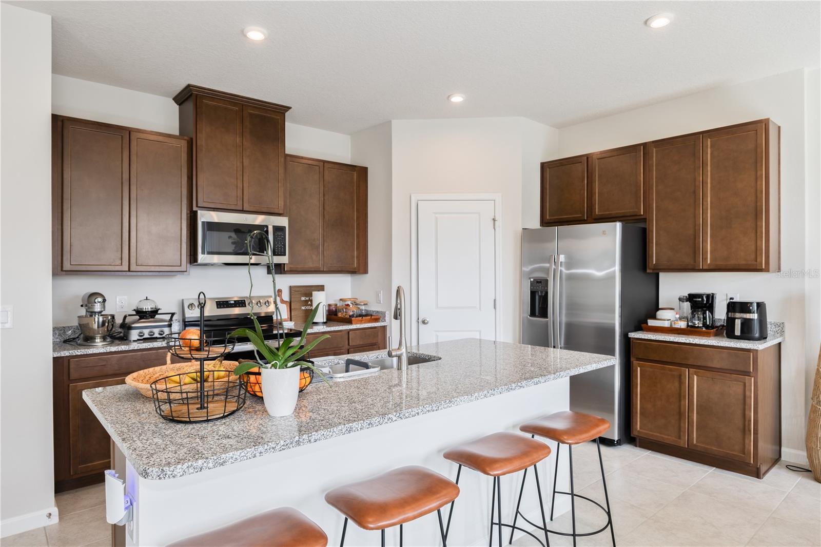 Welcome to this beautifully maintained single-family home offering a perfect blend of modern comfort and classic style. Located in one of Davenport’s most desirable and peaceful communities, this residence features a spacious open-concept floor plan ideal for relaxation and everyday living. The gourmet kitchen is equipped with granite countertops, stainless steel appliances, a pantry, and a large island with seating. Upstairs, a versatile loft provides flexible space for a home office, media area, or playroom. The primary suite includes a generous walk-in closet and an elegant ensuite bathroom with dual sinks and a glass-enclosed shower. Secondary bedrooms are bright and comfortable, suitable for family or guests. Enjoy outdoor living in the fully fenced backyard an inviting space for gatherings or quiet evenings under the Florida sun. Additional features include a two-car garage and an indoor laundry room for added convenience. Conveniently located near world-class theme parks, shopping, dining, and top-rated schools, with easy access to major highways and Orlando International Airport.