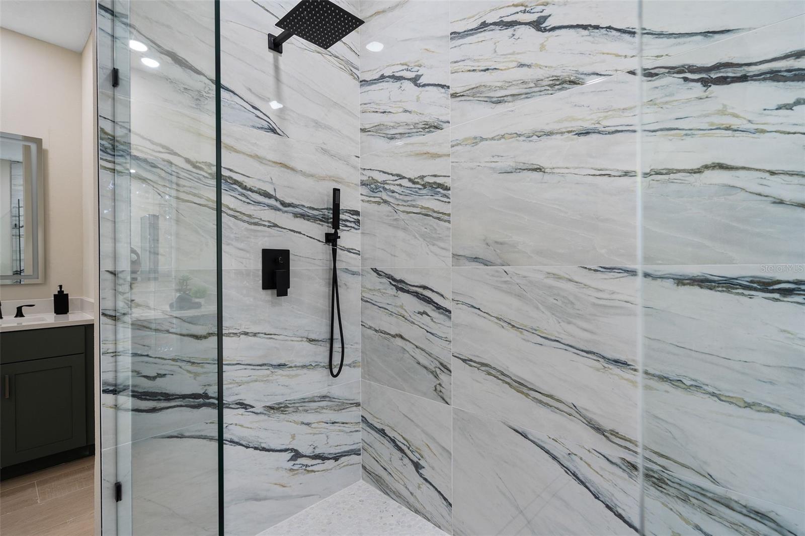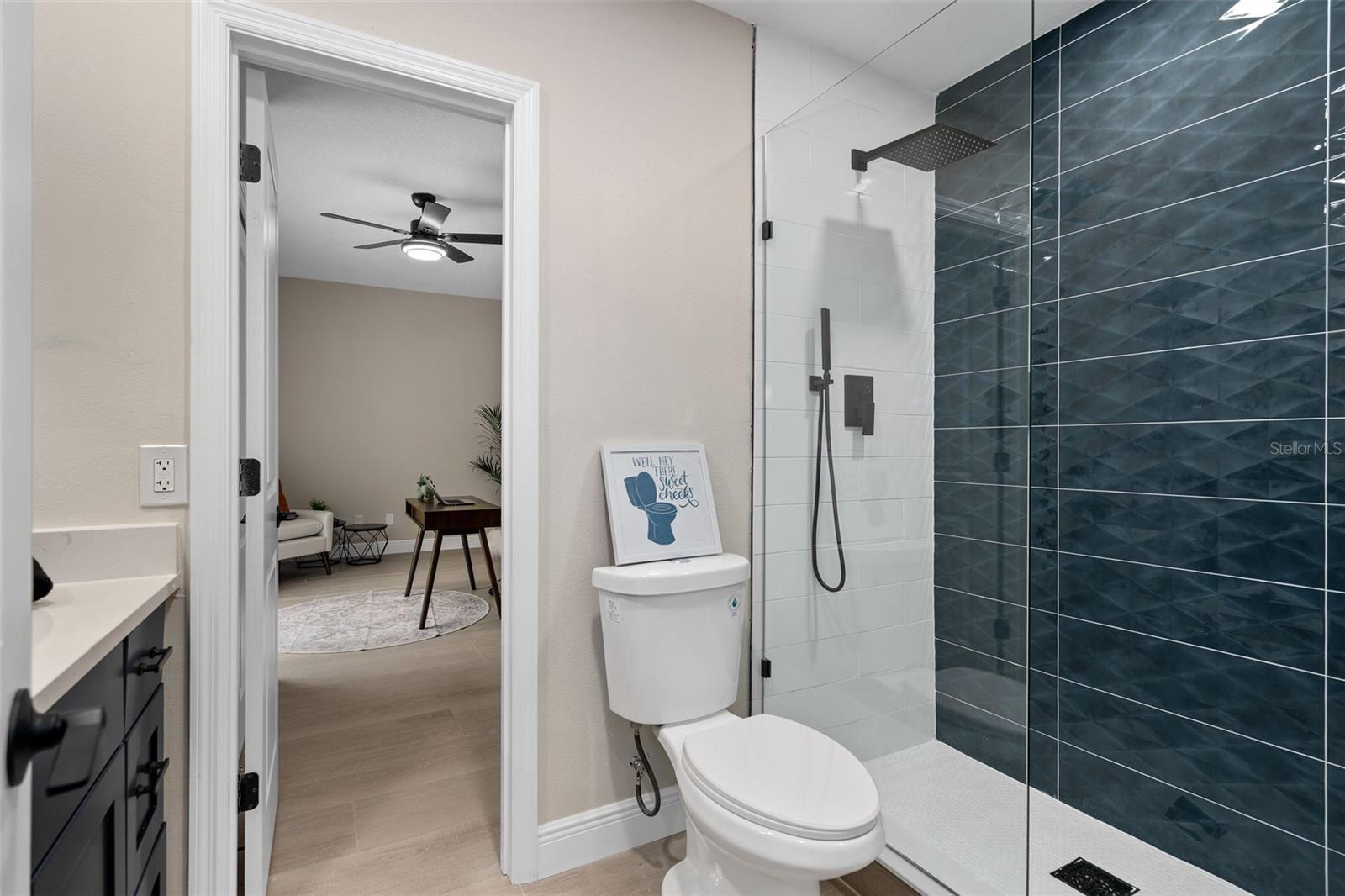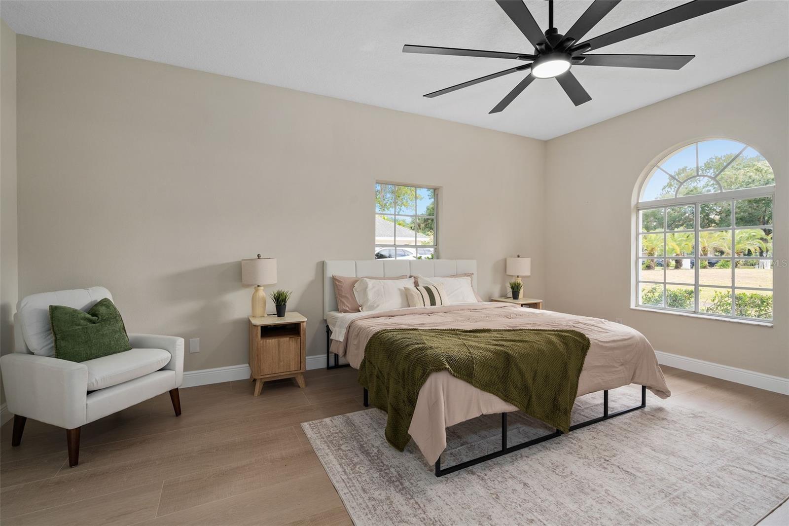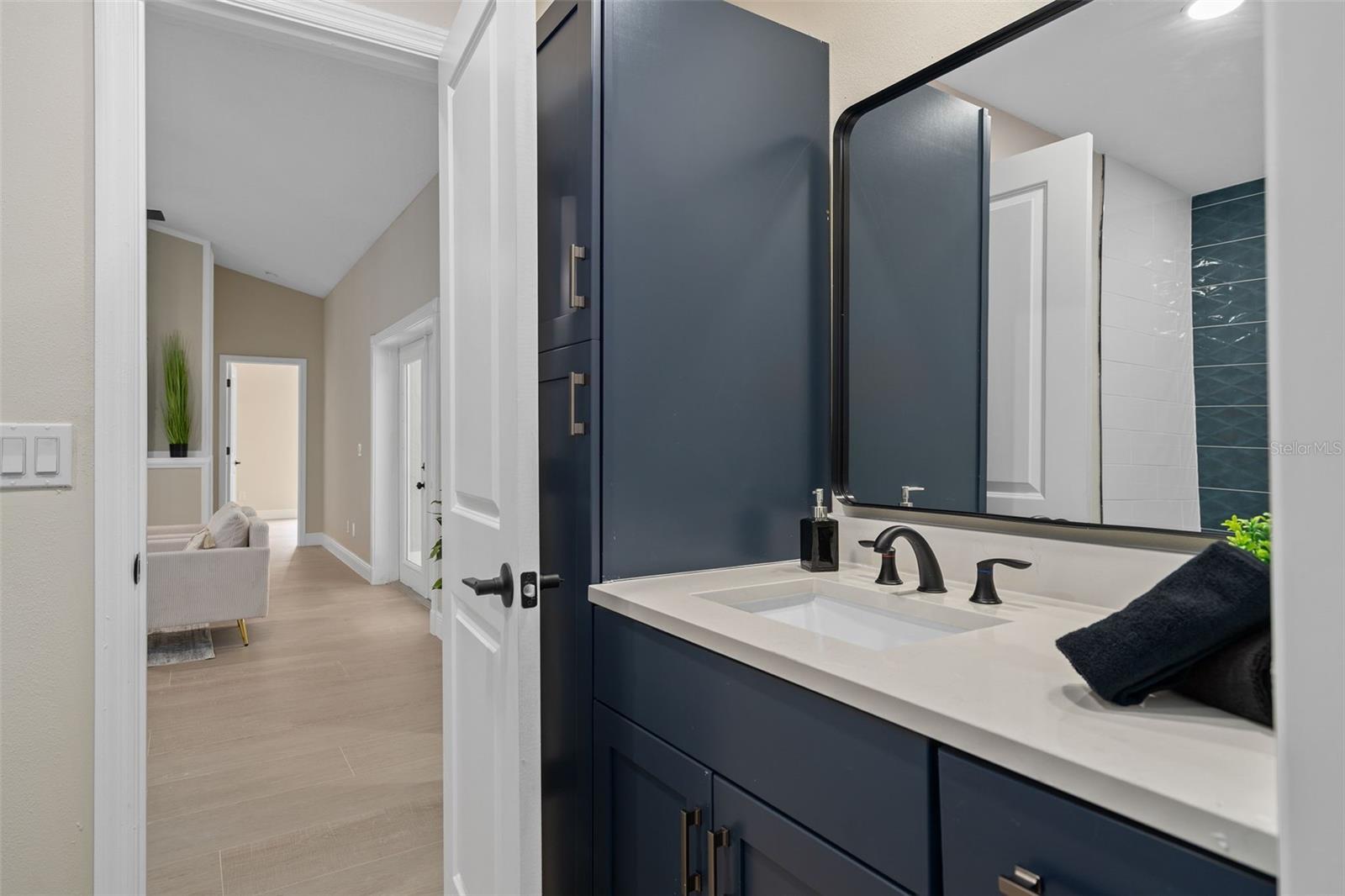Under contract-accepting backup offers. Beautifully updated 5-bedroom, 3-bath pool home with a 3-car garage, now available in the highly desirable guard-gated community of River Crest in Sanford. Situated on a full acre, this property offers outstanding privacy and quiet surroundings. A circular driveway leads to a welcoming entrance with travertine tile, and indoors, wide wood-look tile plank flooring spans the entire home. The heart of the open layout is a stunning custom kitchen featuring dual islands, quartz countertops and backsplash, and new black stainless appliances. The spacious primary suite includes a generous walk-in closet with custom shelving and a beautifully designed bathroom with a large-format tiled shower and dual vanities. Just off the kitchen, the expansive living room showcases a floor-to-ceiling flagstone fireplace, adding warmth and character. Three bedrooms and an updated full bath with dual vanities extend down one hall, while a fifth bedroom with ensuite bath and walk-in tiled shower rests on the opposite side—ideal for guests or multigenerational living. French doors open to a fully screened rear porch overlooking the resurfaced pool and spa, complete with brand-new equipment. Additional upgrades include a new roof, newer AC system, updated sprinkler system, new garage doors and openers, updated doors and trim, new lighting and fixtures, fresh interior and exterior paint, resurfaced pool deck, and refreshed landscaping. Residents enjoy private access to community tennis courts and a scenic boardwalk along the Wekiva River, plus seasonal neighborhood events and gatherings. River Crest offers the perfect blend of nature and convenience—with easy access to major highways, shopping, dining, and everyday needs. A rare opportunity to own an exceptional home in a premier setting.