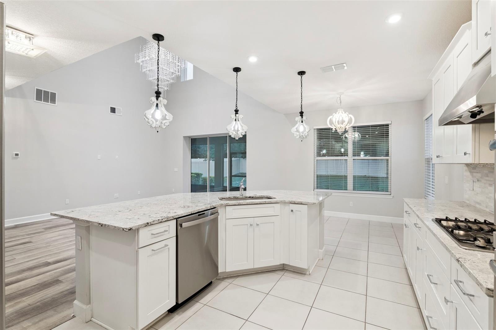 - Eat-in Kitchen, High Ceilings, Open Floorplan, Primary Bedroom Main Floor, Solid Wood Cabinets, Thermostat, Walk-In Closet(s)