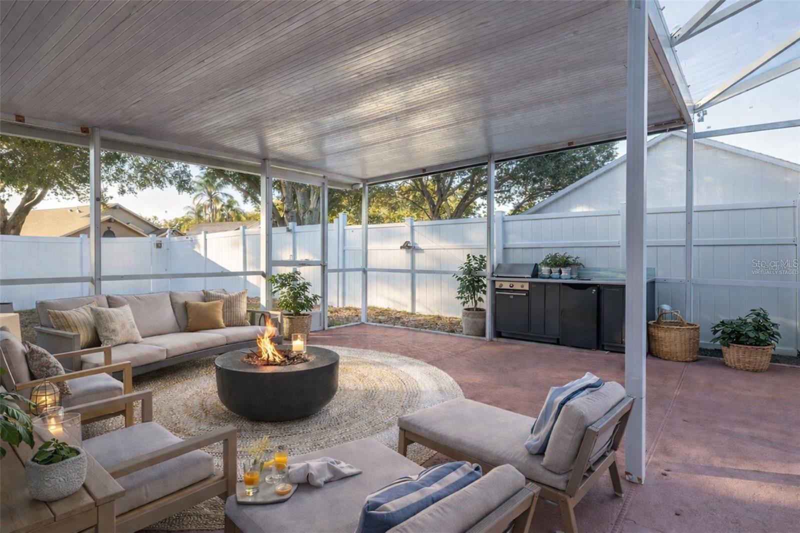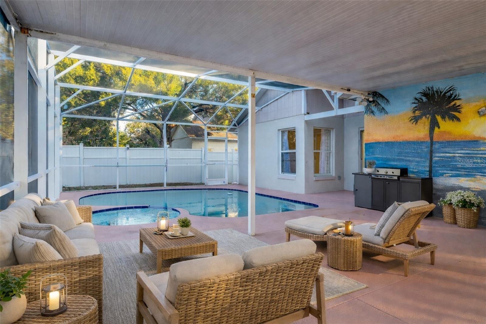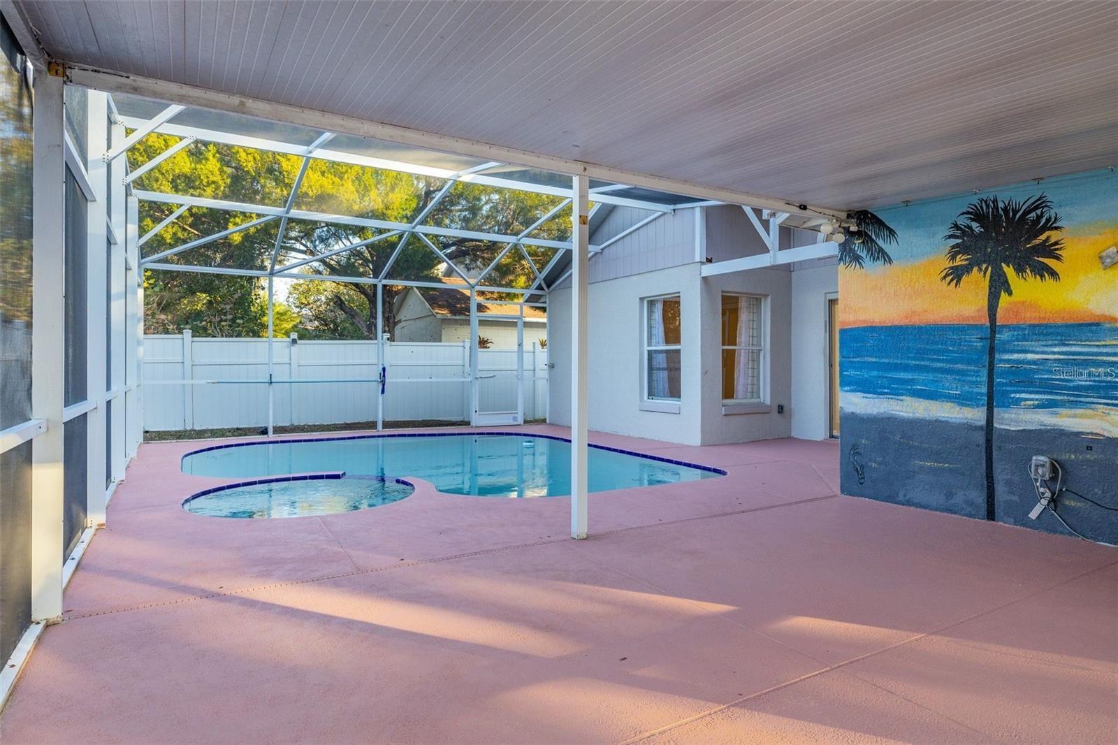 One or more photo(s) has been virtually staged. Move-in-ready. RENT INCLUDES ELECTRICITY. Pool home features 3 beds, 2 baths with BONUS DEN (office, home gym) and 2-car garage. Home comes with washer and dryer. Completed fenced-in. Pet friendly. Pool features a jacuzzi. Lanai is extended and partially covered with extra Fridge and TV - ideal for relaxing and hosting football parties. Master bedroom offers walk-in closet, stand-up shower. Pool access through sliding doors from master bedroom and living room. Recently painted walls with no carpet throughout. Home has generator plug. Community: large pool, tennis court, playground, covered picnic area, access to a 400-acre fishing lake. Close to Highway 27 and Disney Parks. Call to see this home today!!