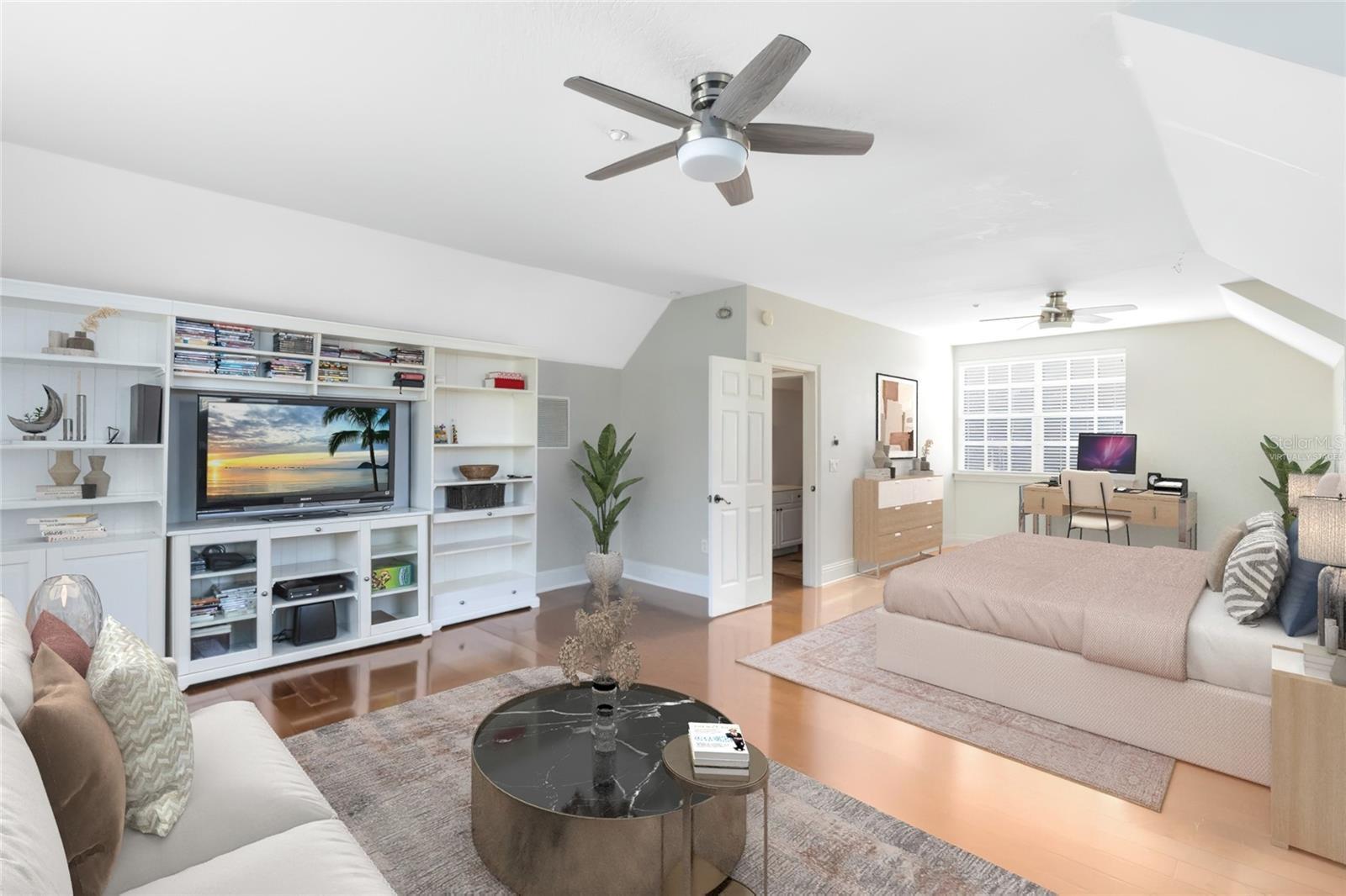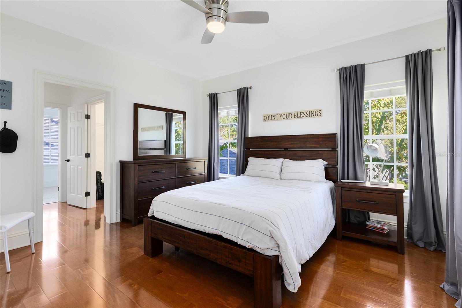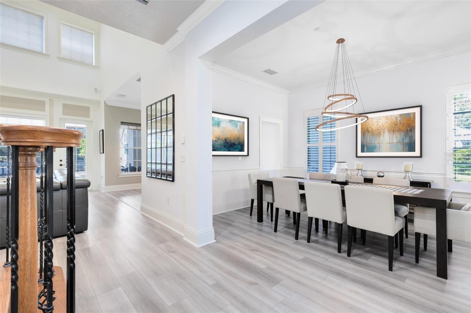 Under contract-accepting backup offers. One or more photo(s) has been virtually staged. Welcome to this beautifully updated Bradford Custom Home—one of only four in NorthLake Park at Lake Nona. Perfectly positioned on an oversized corner lot across from a serene conservation area, this 5-bedroom, 4 full and 2 half bath residence spans 3,797 square feet of elegant living space, blending thoughtful design with timeless craftsmanship. The main floor features a bright, open layout with high ceilings and abundant natural light. The living room’s stone-accented gas fireplace and crown molding add warmth and charm, while French doors open to the screened pool and lanai. The gourmet kitchen, fully remodeled in 2022, includes top-of-the-line built-in appliances, quartz countertops, custom cabinetry, and a butler’s area with built-in desk and storage. Luxury vinyl flooring, plantation shutters, and wood details create a cohesive and welcoming atmosphere throughout the first level. The primary suite on the main floor offers a beautifully remodeled bath with dual sinks, a frameless glass shower, and a garden tub. Upstairs, the main second floor includes a spacious loft area and three large bedrooms, each featuring 5-inch maple hardwood floors and generous closet space. One of the bedrooms enjoys its own ensuite bathroom, while the others share a well-appointed full bath with Kohler glass shower doors. A private second-floor wing, located above the three-car garage, provides an oversized fifth bedroom with a full bath—ideal for guests, extended family, or a home office. This versatile layout makes it an ideal home for multigenerational living, offering both shared and private spaces for everyone. Step outside to your private backyard oasis. The screened saltwater pool and spa are surrounded by lush tropical landscaping, and the covered lanai with ceiling fans creates the perfect space for relaxing or entertaining. Beyond the pool area, a paver terrace with pergola and water feature adds even more outdoor living space. The side yard provides additional space for kids to run and play outside, extending the enjoyment of the home’s generous outdoor areas. The fenced yard features four access gates and mature landscaping that enhances privacy. Additional highlights include a three-car oversized garage, large driveway, irrigation system, outdoor lighting, and stone-accented exterior. NorthLake Park residents enjoy access to community amenities including a fitness center, pool, tennis courts, playgrounds, and walking trails—just minutes from Medical City, top-rated Lake Nona schools, shopping, and dining.