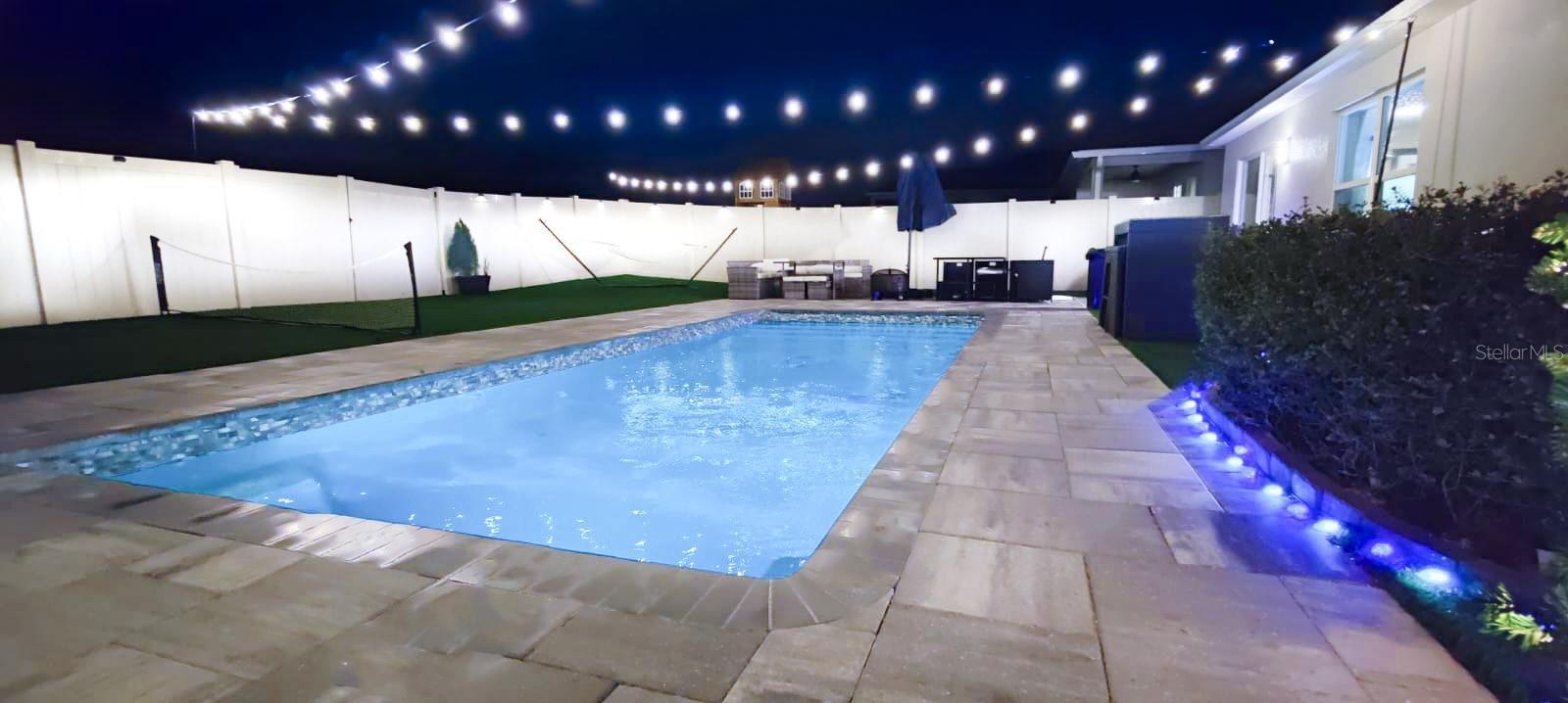Former KB Home model offered fully furnished with professionally selected interior design. Solar panels and an EV charger are included. Saltwater heated in-ground pool provides year-round outdoor enjoyment. The kitchen features light gray 30" upper cabinetry with soft-close hardware, Whirlpool® appliances, large island and pantry, opening to spacious living/dining with vinyl plank flooring. The primary suite is rear-located for privacy and offers a dual-sink vanity, custom-tile tub/shower, walk-in closet and linen storage. Three more bedrooms and laundry are near the front of the home. Garage currently functions as a game room and computer/study area. Open patio is ideal for outdoor seating with white fence. Convenient to Cherry Lake Charter School, area dining and retail, and reasonable travel time to major Orlando attractions and downtown Clermont.