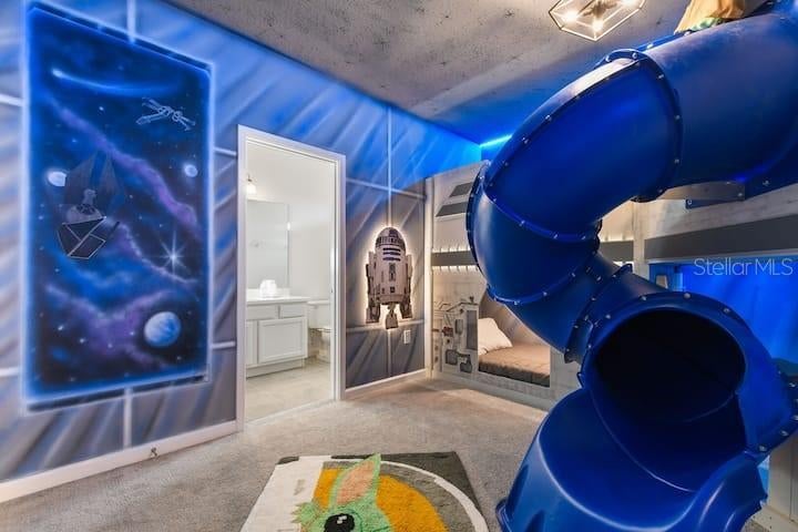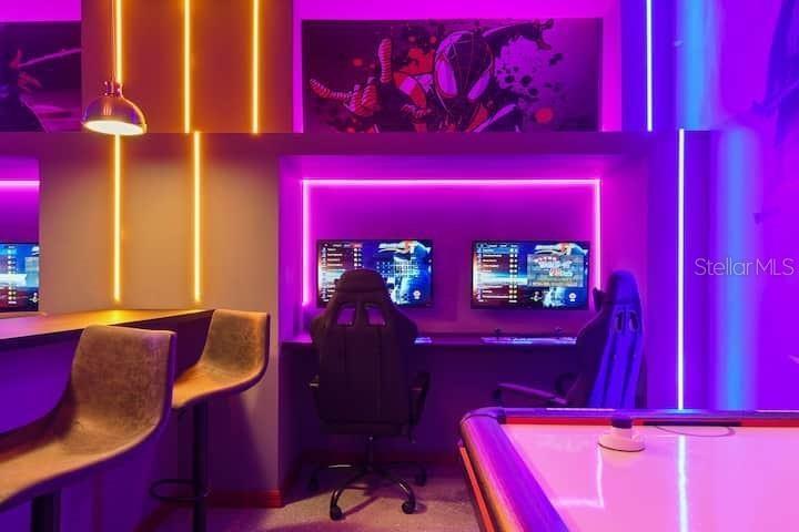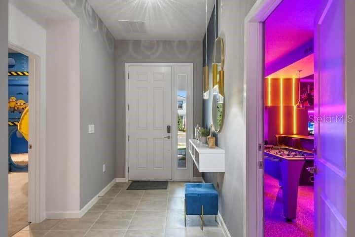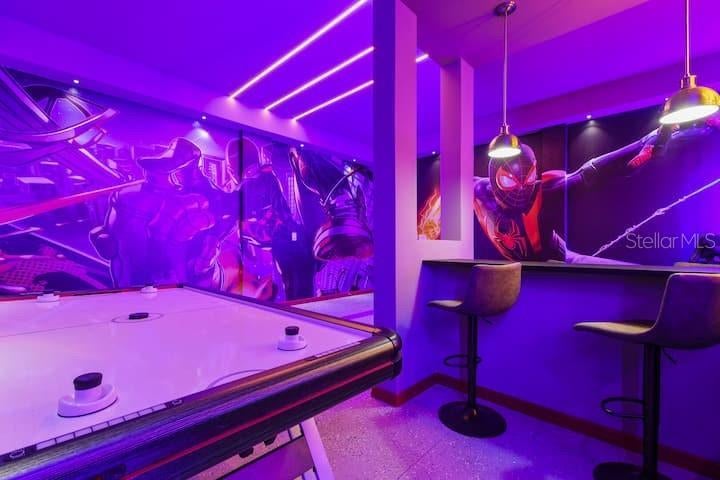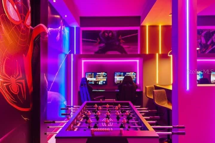 Welcome to this rare-to-find, fully furnished vacation villa in the sought-after Bella Vida Resort, just minutes from Disney! This home is not only beautifully designed but also a ready-to-operate short-term rental business — perfect for investors or families looking for a vacation home with great returns. Step inside and experience pure fun and comfort! The home features a Spider-Man arcade, an immersive Harry Potter movie theater, and themed bedrooms including Frozen, Star Wars, and Minions — delighting all aged alike. Enjoy the Florida sunshine in your private screened pool, or gather in the spacious open-concept living and dining area, ideal for entertaining family and guests. Whether you’re looking for a turnkey vacation home or a profitable short-term rental investment, this property checks every box — location, design, and income potential! Don’t miss this incredible opportunity — schedule your private showing today!