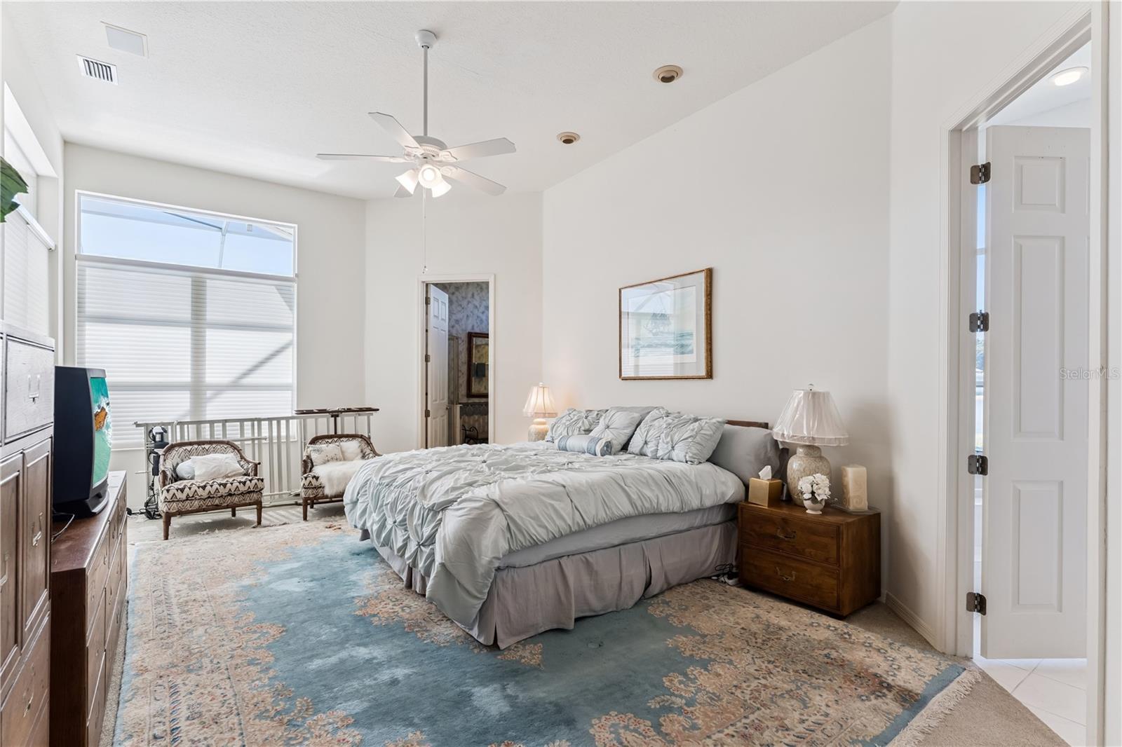 - Ceiling Fans(s), Eat-in Kitchen, High Ceilings, Kitchen/Family Room Combo, Primary Bedroom Main Floor, Solid Surface Counters, Walk-In Closet(s), Window Treatments