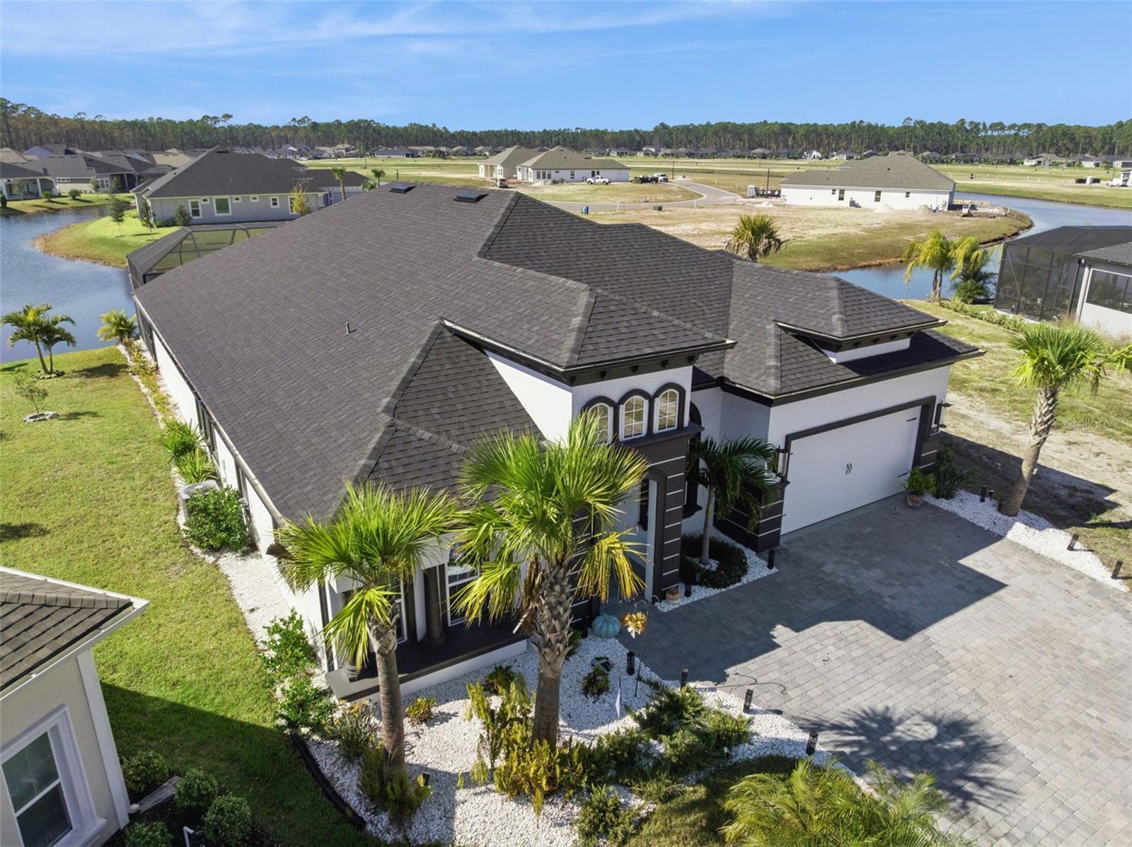 Welcome to a custom-built masterpiece of modern Florida living, completed in 2023 within the prestigious Plantation Bay gated community. Every detail of this one-story residence reflects thoughtful design and upscale living. Enjoy breathtaking water views, an entertaining pool with tanning ledge, fountains, and a heater/cooling unit, a summer kitchen, and a spacious outdoor living area that make this home perfect for gatherings and relaxation. An oversized 3-car garage with raised ceilings designed for car lifts, plus generous workshop space and built-in storage for tools and gear. Tucked away on a peaceful cul-de-sac, this home delivers both privacy and exceptional value. Inside, an open-concept layout welcomes you with natural light, a flex room for a home office, gym, or media space, and a chef-inspired kitchen with granite countertops, recessed lighting, a hidden pantry, and a large island overlooking the living room and pool. The primary suite is perfectly positioned for comfort, complemented by luxurious finishes and direct access to the lanai. Beyond the home, enjoy the Plantation Bay lifestyle—championship golf, tennis, pickleball, resort-style pools, fitness and spa facilities, and a brand-new clubhouse. With Flagler and Ormond Beaches, shops, and medical centers just minutes away, this home defines Florida luxury living at its best.