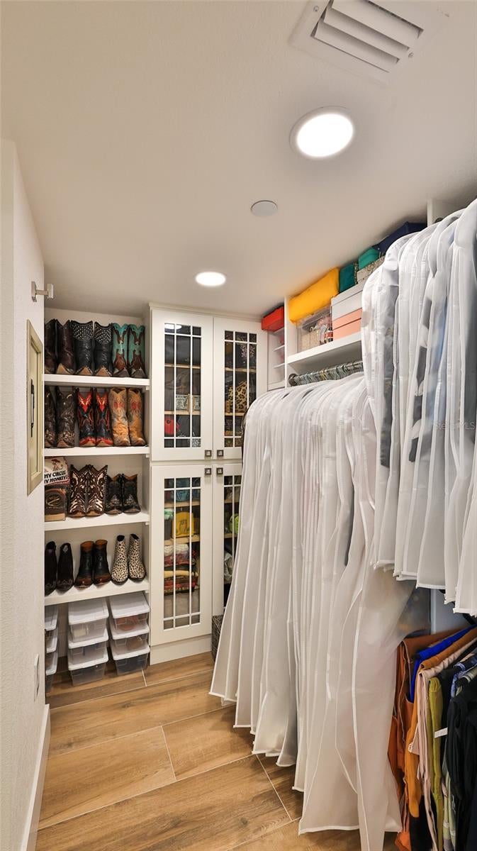 - Built-in Features, Ceiling Fans(s), Crown Molding, Living Room/Dining Room Combo, Open Floorplan, Solid Surface Counters, Solid Wood Cabinets, Split Bedroom, Stone Counters, Walk-In Closet(s)