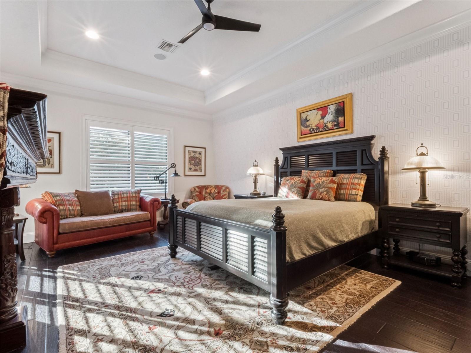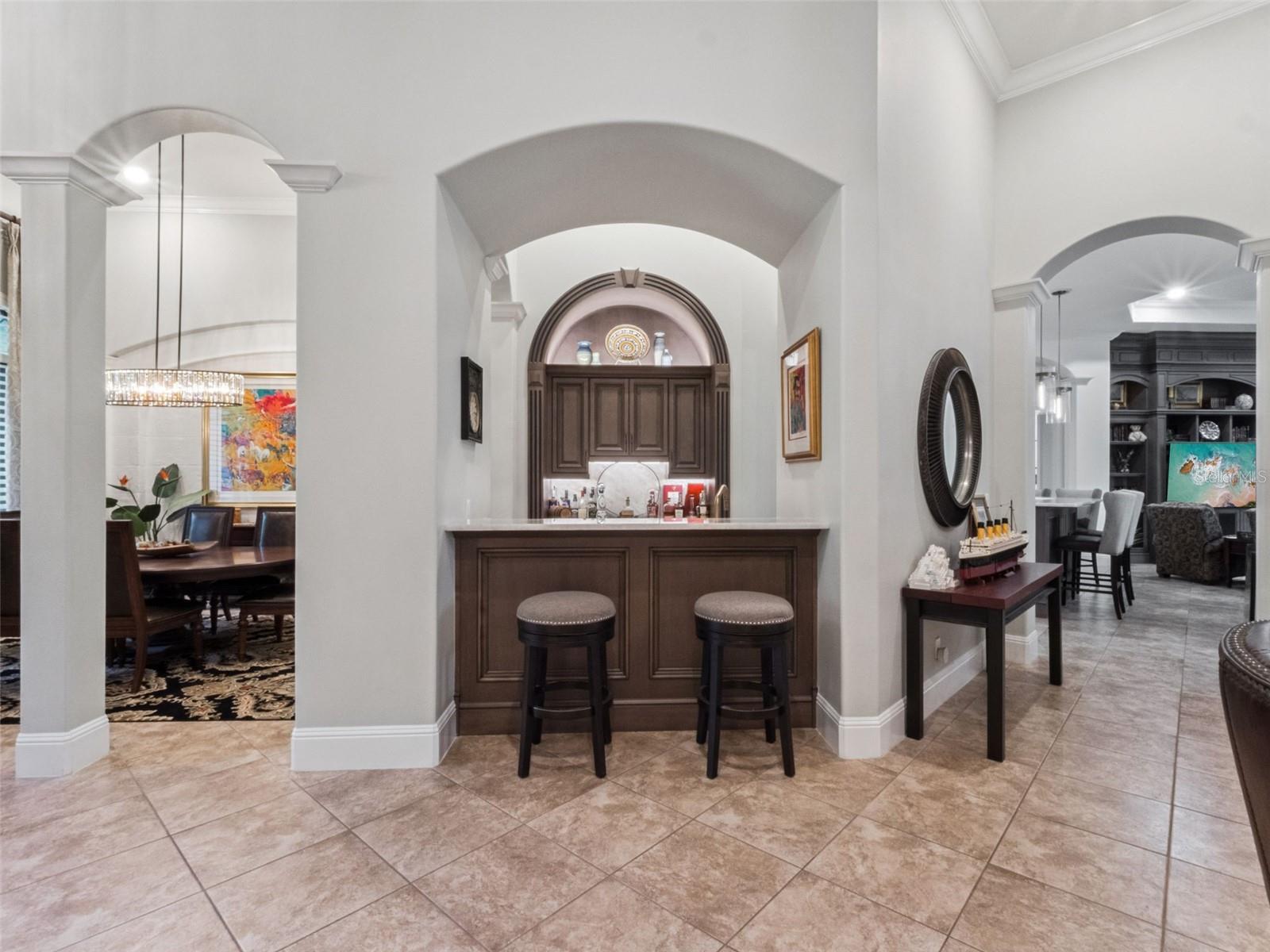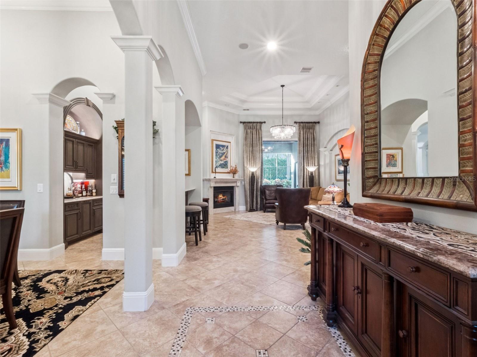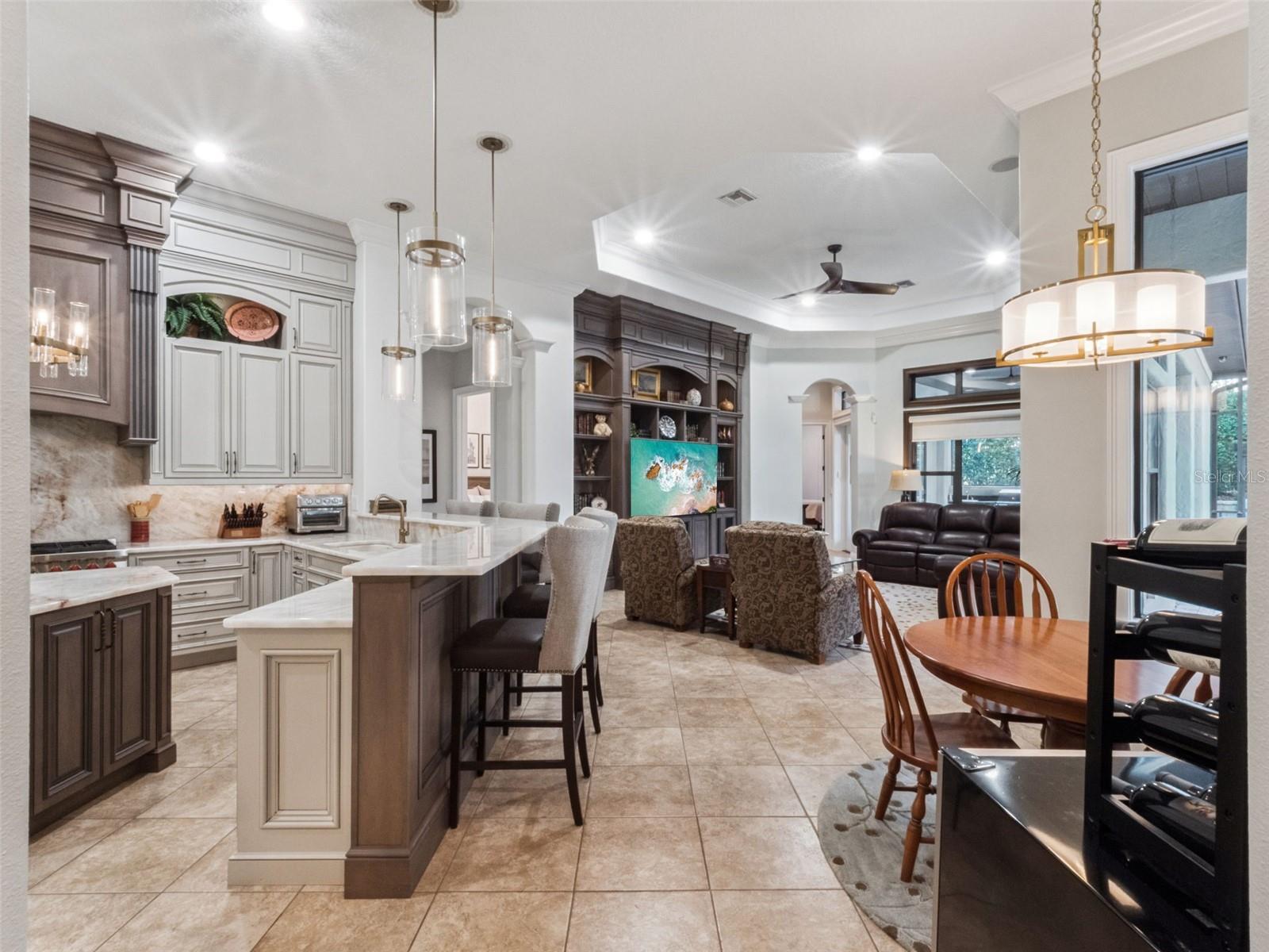 - Built-in Features, Ceiling Fans(s), Coffered Ceiling(s), Crown Molding, Eat-in Kitchen, High Ceilings, Kitchen/Family Room Combo, Living Room/Dining Room Combo, Open Floorplan, Primary Bedroom Main Floor, Solid Wood Cabinets, Stone Counters, Thermostat, Tray Ceiling(s), Walk-In Closet(s), Wet Bar, Window Treatments