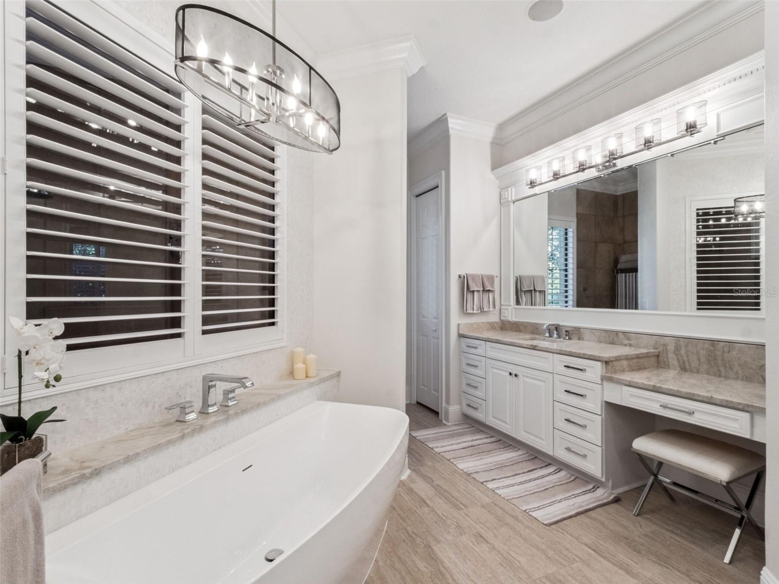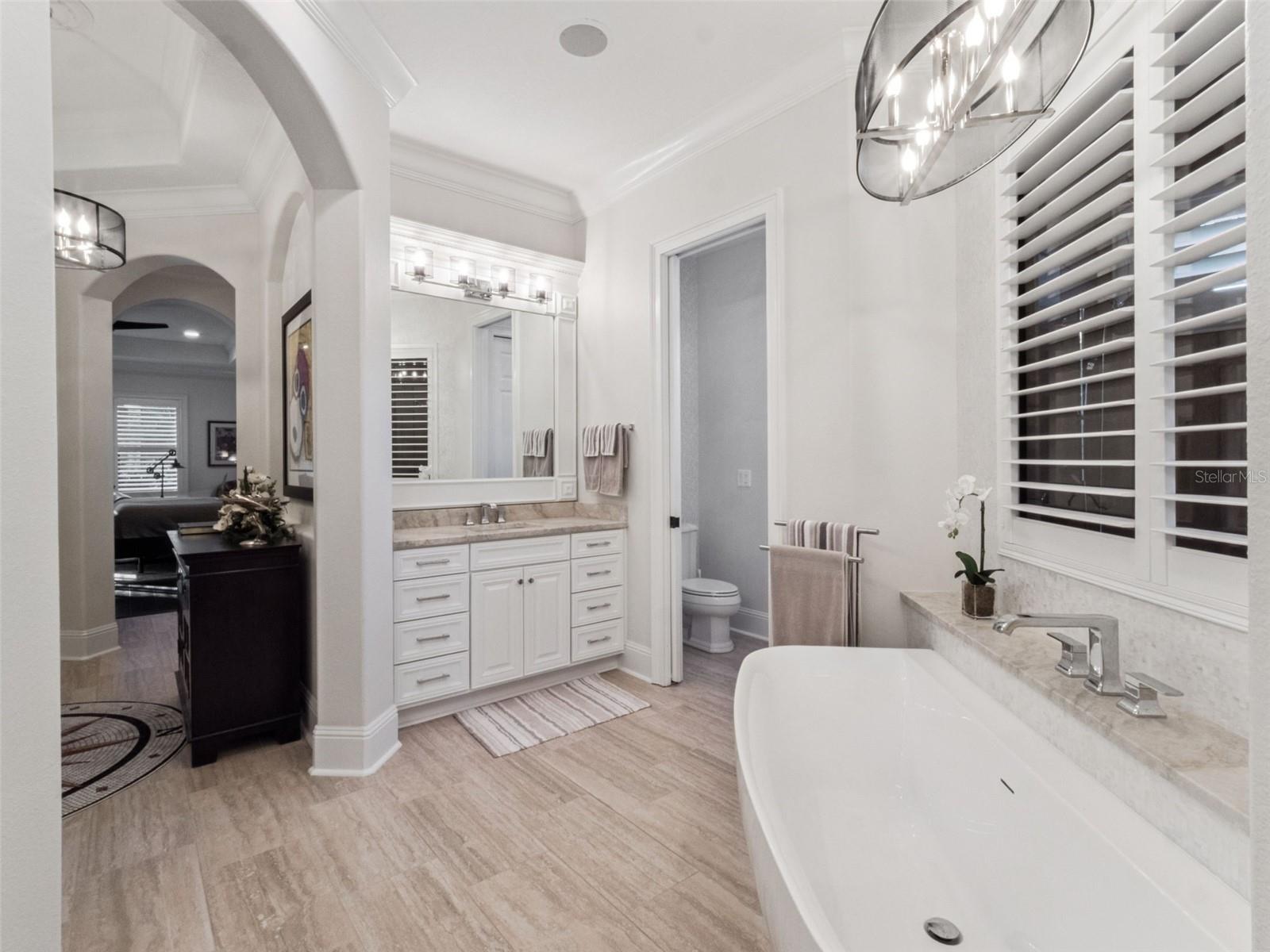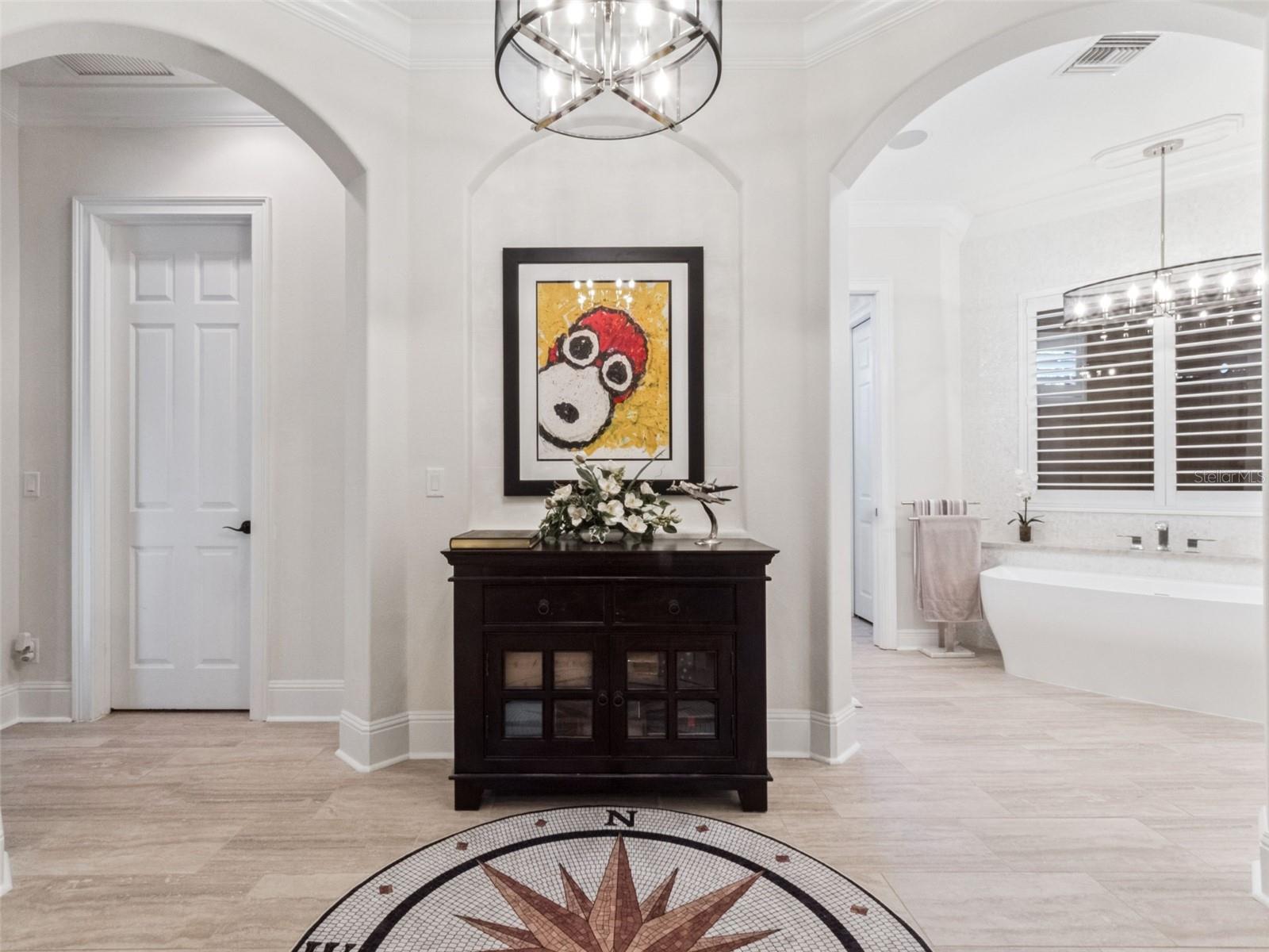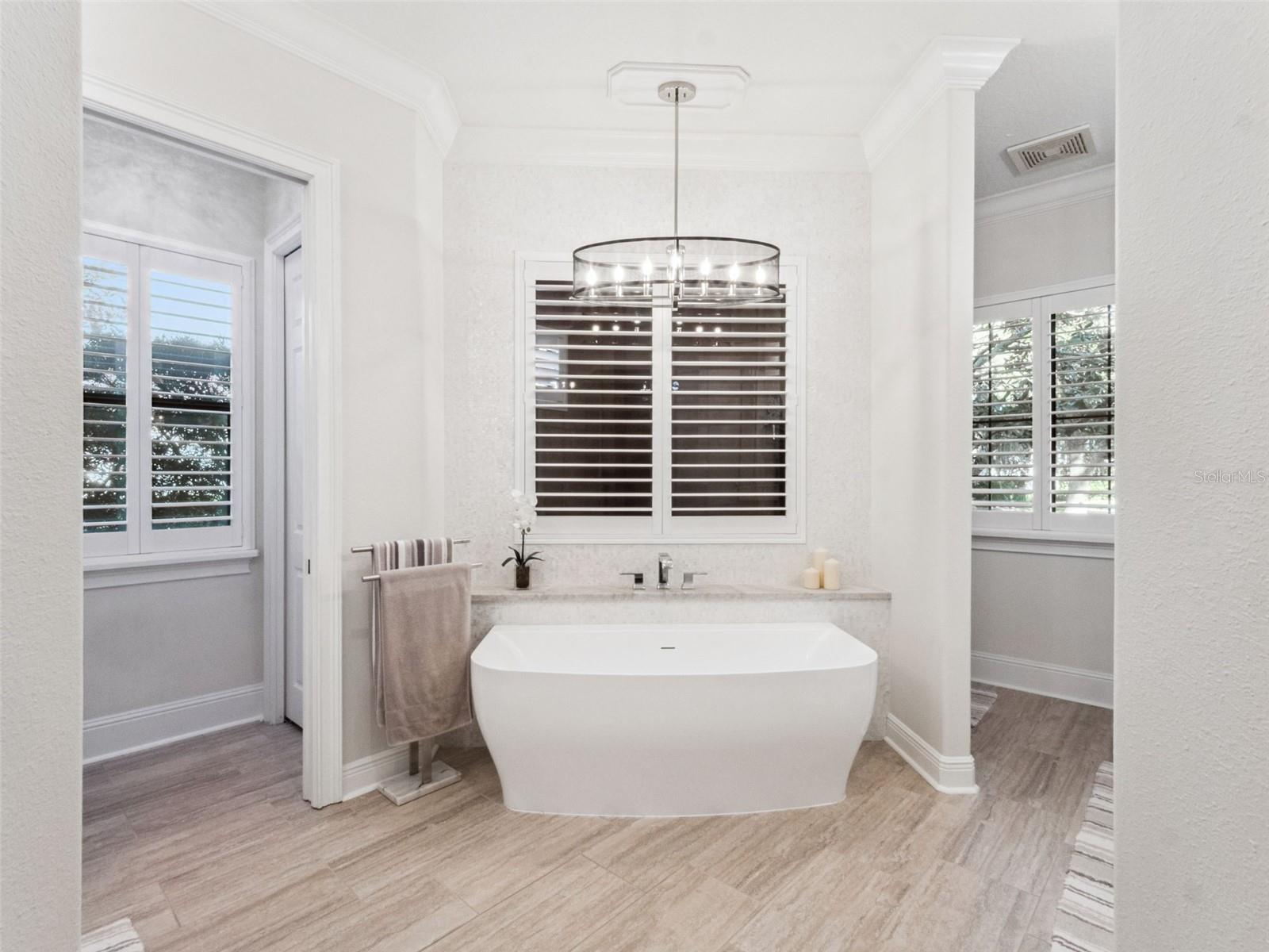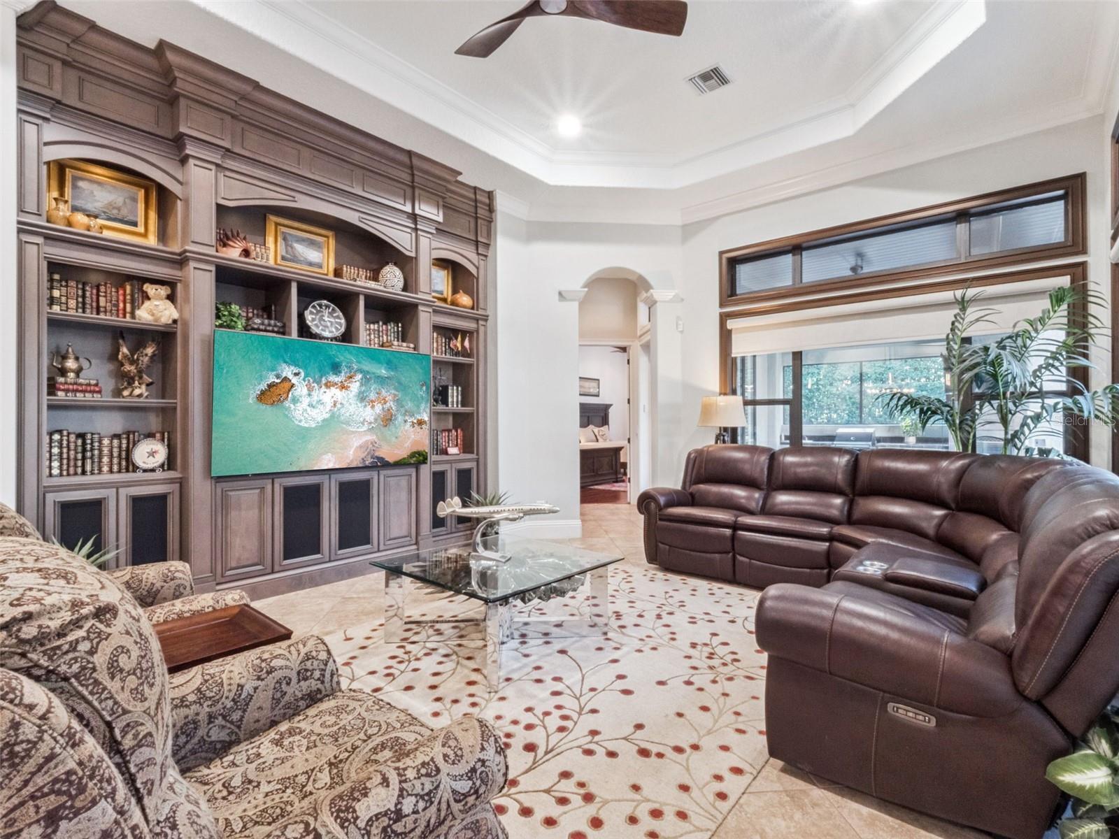 - Built-in Features, Ceiling Fans(s), Coffered Ceiling(s), Crown Molding, Eat-in Kitchen, High Ceilings, Kitchen/Family Room Combo, Living Room/Dining Room Combo, Open Floorplan, Primary Bedroom Main Floor, Solid Wood Cabinets, Stone Counters, Thermostat, Tray Ceiling(s), Walk-In Closet(s), Wet Bar, Window Treatments