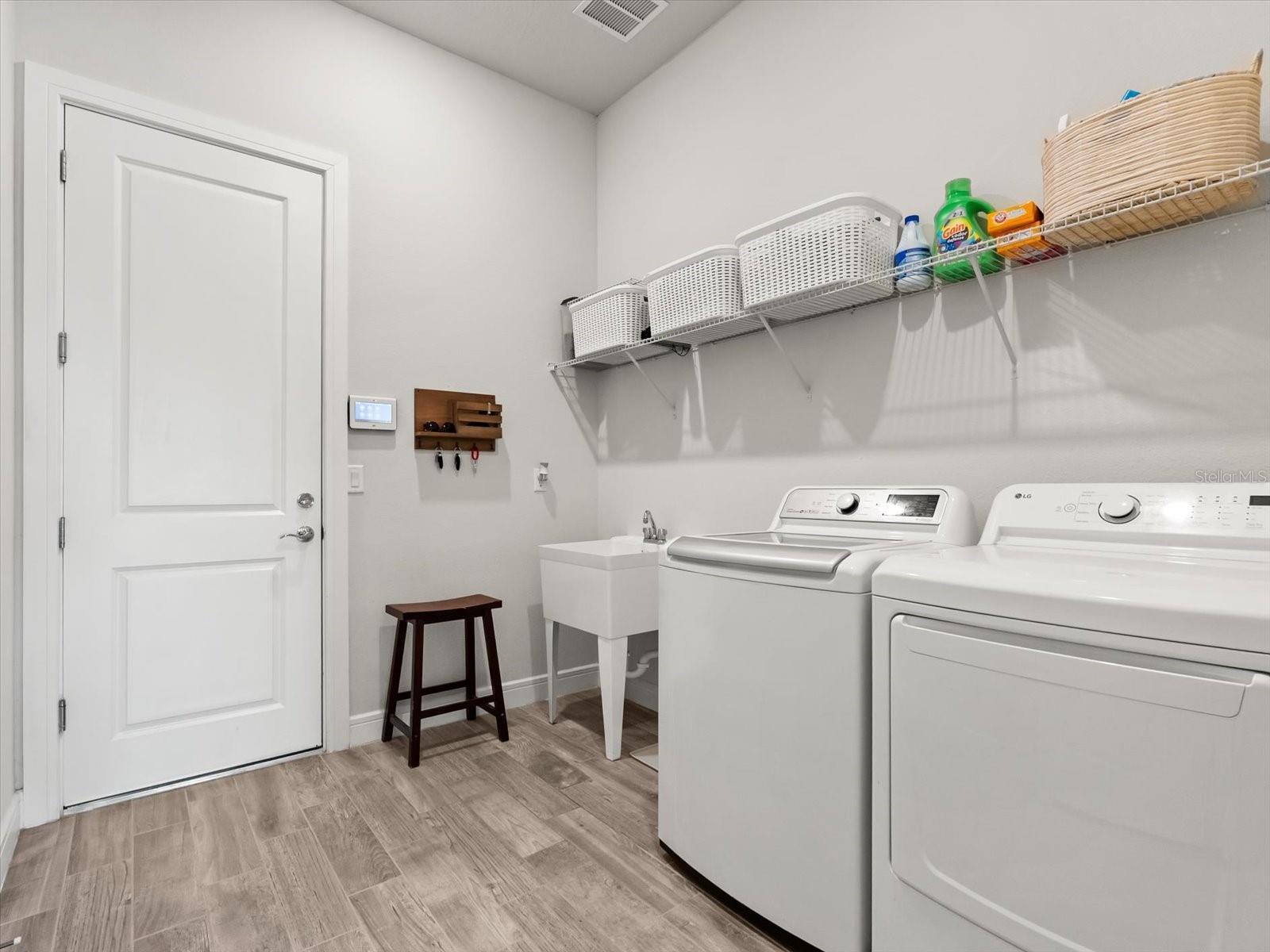 Luxury Single-Family Home in Lake Nona's Premier Community — The Isles of Lake Nona. Step into this stunning residence, where luxury meets functionality in the highly desirable Lake Nona community of The Isles. Built in 2021(Roof, structure, A/C, and water heater still under warranty) and situated on a peaceful cul de sac, this home boasts the best lake view in the community, providing a serene backdrop for your daily life and entertaining. The expansive oversized driveway and a three-car garage make parking a breeze, perfect for family and guests. This exquisite property features elegant luxury vinyl plank flooring throughout, creating a warm yet sophisticated ambiance. The formal dining area seamlessly connects to a spacious open-concept family room with soaring ceilings and the gourmet chef’s kitchen, designed for both everyday living and entertaining. The luxurious chef’s kitchen is equipped with a gas stove, ideal for culinary enthusiasts, and offers ample cabinetry and counter space for all your culinary needs. The home hosts three spacious bedrooms, including a luxurious primary suite with a stunning water view, and three modern bathrooms. Additionally, there's a versatile office/flex room perfect for remote work or additional guests. The laundry room comes complete with a utility sink, and washer and dryer, both included for your convenience. Enjoy outdoor living at its finest with a covered lanai that overlooks the most breathtaking water views in the community — a perfect setting for relaxing evenings or entertaining friends. Residents of The Isles of Lake Nona enjoy a resort-style lifestyle with amenities including a sparkling pool, splash pad, clubhouse, fitness center, tennis, basketball, and pickleball courts, as well as playgrounds. The HOA takes care of fiber internet, exterior pest control, lawn care, irrigation, and gated entry, offering a truly maintenance-free lifestyle. Conveniently located just minutes from major highways like the 417 and Medical City, you'll have easy access to attractions such as Boxi Park, Drive Shack, Nona Adventure Park, and the trendy Wave Hotel, along with a wide variety of restaurants and shopping options around Lake Nona. Don't miss this rare opportunity to own a luxurious, move-in ready home in one of Orlando's most sought-after communities. Contact us today to schedule your private tour and experience the perfect blend of luxury, location, and lifestyle in Lake Nona! Your Dream Home Awaits — Schedule Your Visit Today!