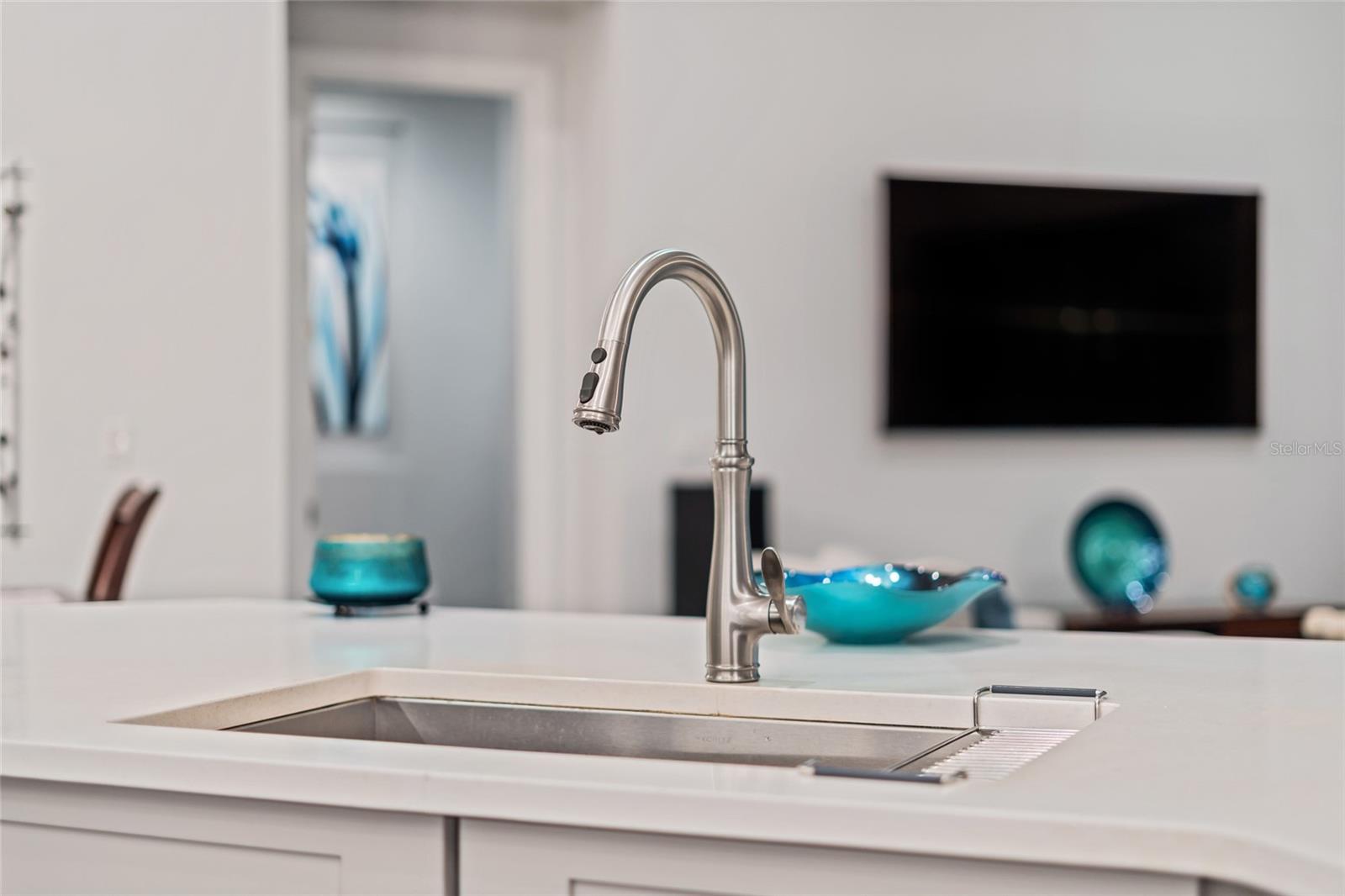 Stunning single-story Toll Brothers home in the desirable 24-hour guard-gated community of Royal Cypress Preserve. This beautifully upgraded four-bedroom, two-and-a-half-bath residence showcases timeless Spanish Colonial architecture with a classic Spanish tile roof, 10-12-foot ceilings and elegant 8-foot doors throughout. The home's open-concept design creates an effortless flow between the great room, dining area and gourmet kitchen, providing an inviting space for everyday living and entertaining. The gourmet kitchen is a chef's dream, featuring soft-close cabinetry and pullout drawers. Cambria Brittanica quartz countertops, a custom glass mosaic backsplash, under-cabinet and above-cabinet lighting, and premium KitchenAid stainless-steel appliances including a built-in 42-inch refrigerator, gas cooktop and double wall ovens. A large center island serves as heart of the home, offering abundant prep space and casual seating for gatherings with family and friends. The great room is enhanced by coffered ceiling featuring built-in rear surround speakers, custom designer lighting and triple pocket sliding glass doors that open to an expansive screened lanai, creating seamless indoor-outdoor living. The lanai is ideal for entertaining, outdoor dining, or relaxing while enjoying private views of the beautifully landscaped backyard. The spacious primary suite serves as a serene retreat, featuring a tray ceiling, dual walk-in closets and a spa-inspired bath with frameless glass shower, rain and body-spray fixtures, a luxurious soaking tub and dual quartz-topped vanities. Three additional bedrooms offer flexibility for guests, a home office, fitness space or media lounge. Additional highlights include hardwood flooring throughout all main living areas and bedrooms, custom plantation shutters, crown molding, upgraded lighting, and a spacious two-car garage with epoxy flooring and storage cabinetry. Residents of Royal Cypress Preserve enjoy an exceptional maintenance-free lifestyle with lawn care included and resort-style amenities such as a lakeside clubhouse with a zero-entry pool, modern fitness center, dog park, playground and private boat ramp with access to scenic South Lake. The community is ideally just minutes from Golden Oak, the Four Seasons Resort, Walt Disney World, and Orlando's world-class shopping, dining and entertainment venues. With its architectural elegance, open layout and premium location, this home blends luxury, comfort and convenience within one of Central Florida's exclusive gated communities.