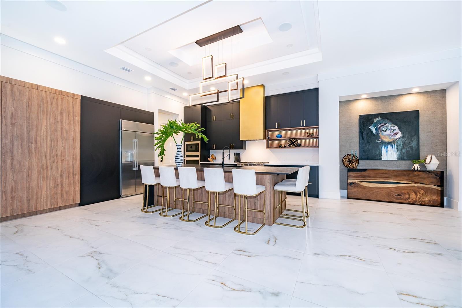 Located within the gated community of Bella Collina, this custom-designed residence delivers a refined blend of architectural presence, curated interiors, and elevated functionality. Professionally designed and thoughtfully executed, the home offers a professionally completed residence, ready for immediate occupancy. Furnishings are not included and may be negotiated separately. Set on a flat, fully cleared 1.19-acre homesite, the property offers exceptional usability, privacy, and flexibility—ideal for outdoor entertaining, recreation, or future enhancements, all within a beautifully manicured and easily maintainable setting. Light-filled open living spaces feature soaring ceilings, expansive 30” x 30” porcelain tile flooring, and hardwood floors throughout all four bedrooms, office, and bar areas. The chef’s kitchen anchors the home with a custom CopperSmith brass hood, oversized Dekton island, sleek custom cabinetry, and premium Monogram appliances—designed for both daily living and entertaining at scale. A fully integrated in-ceiling sound system throughout all primary social areas—including the kitchen, living room, bar, lanai, and outdoor kitchen—creates a seamless indoor-outdoor entertaining experience. An integrated wine bar with a 160-bottle dual-zone wine refrigerator further enhances the home’s hosting appeal. The primary suite serves as a private retreat with wooded views, full-wall custom cabinetry, and a spa-inspired bathroom featuring custom shower tile, LED-lit engineered wood panels, designer wallpaper, and premium countertops. Disappearing glass sliders from the great room open to a covered lanai, resort-style pool, heated spa, and summer kitchen—creating effortless flow for year-round Florida living. A dedicated home office with 16’ ceilings, custom cabinetry, and a glass-and-aluminum door provides a refined workspace. Professional landscape lighting and an extended paver driveway further elevate the home’s architectural presence. Residents enjoy access to The Club at Bella Collina, offering Har-Tru tennis courts, pickleball, a resort-style pool complex, fitness center, spa, complimentary fitness classes, a Nick Faldo-designed championship golf course, and year-round social and culinary programming. With over 45 premium upgrades already completed, this residence represents a rare opportunity to acquire a fully realized, design-forward home on one of Bella Collina’s more versatile homesites—without the time or uncertainty of new construction. Showings are encouraged for qualified buyers seeking quality, lifestyle, and immediate value.