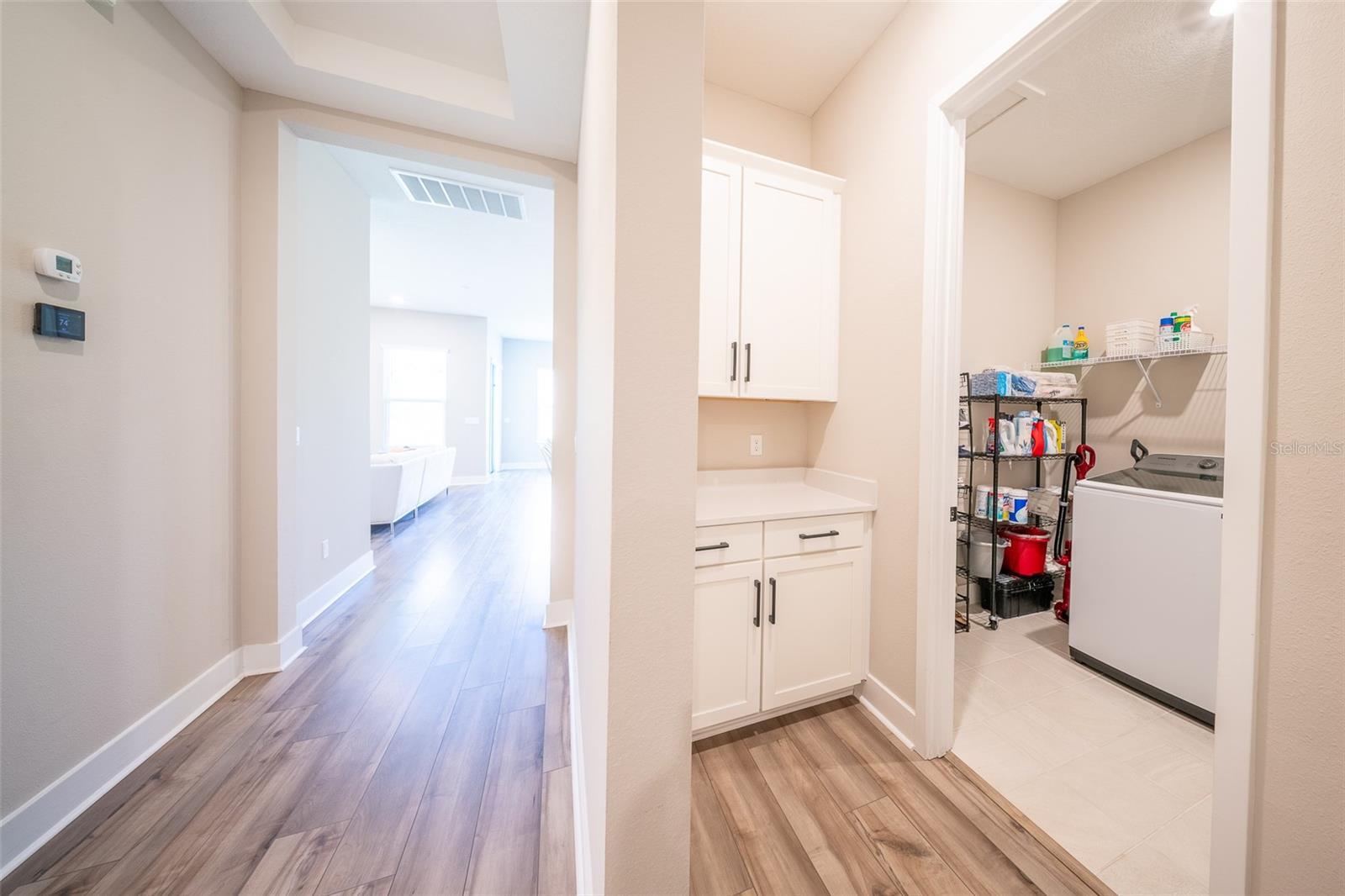 Beautiful single-family home available for rent in a prime location, featuring a charming front porch and a lovely garden at the entrance. This residence offers comfort, practicality, and quality of life, with approximately $70,000 in recent upgrades that include high-end finishes throughout the home. The property features all-black hardware, taller-than-standard doors, vinyl flooring throughout, and an elegant wooden panel with LED lighting in the living room, creating a modern and inviting atmosphere. The gourmet kitchen is equipped with a double sink, Samsung refrigerator, wooden cabinets, and a functional center island. The integrated laundry room is ready for immediate use. A whole-house water softener system was recently installed, along with an additional filter at the kitchen sink for enhanced water quality. The home offers three bedrooms, two full bathrooms, a guest bathroom, and a versatile flex space that serves perfectly as a home office. The living room connects seamlessly to the dining area, with sliding doors that open directly to the outdoor space, allowing abundant natural light and excellent airflow. Located in a full-amenity community, residents can enjoy access to a swimming pool, tennis court, and tree-lined walking paths. The covered garage features a secure gate and accommodates two cars. The home also benefits from a privileged location within the community, which includes two internal schools, allowing children to safely walk or bike with ease. Conveniently close to essential shops and services, this property is situated in an area known for its excellent lifestyle and strong appeal. Don’t miss this opportunity to live comfortably in a beautifully upgraded home in one of the best locations in the area.