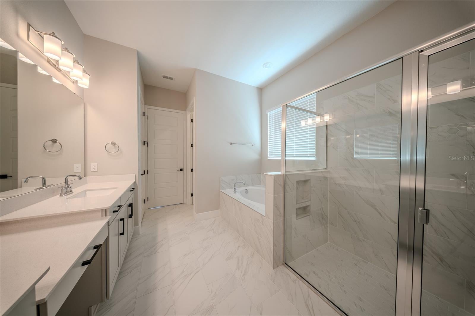 - Eat-in Kitchen, Kitchen/Family Room Combo, Living Room/Dining Room Combo, Open Floorplan, Primary Bedroom Main Floor, Solid Wood Cabinets, Stone Counters, Thermostat, Walk-In Closet(s)