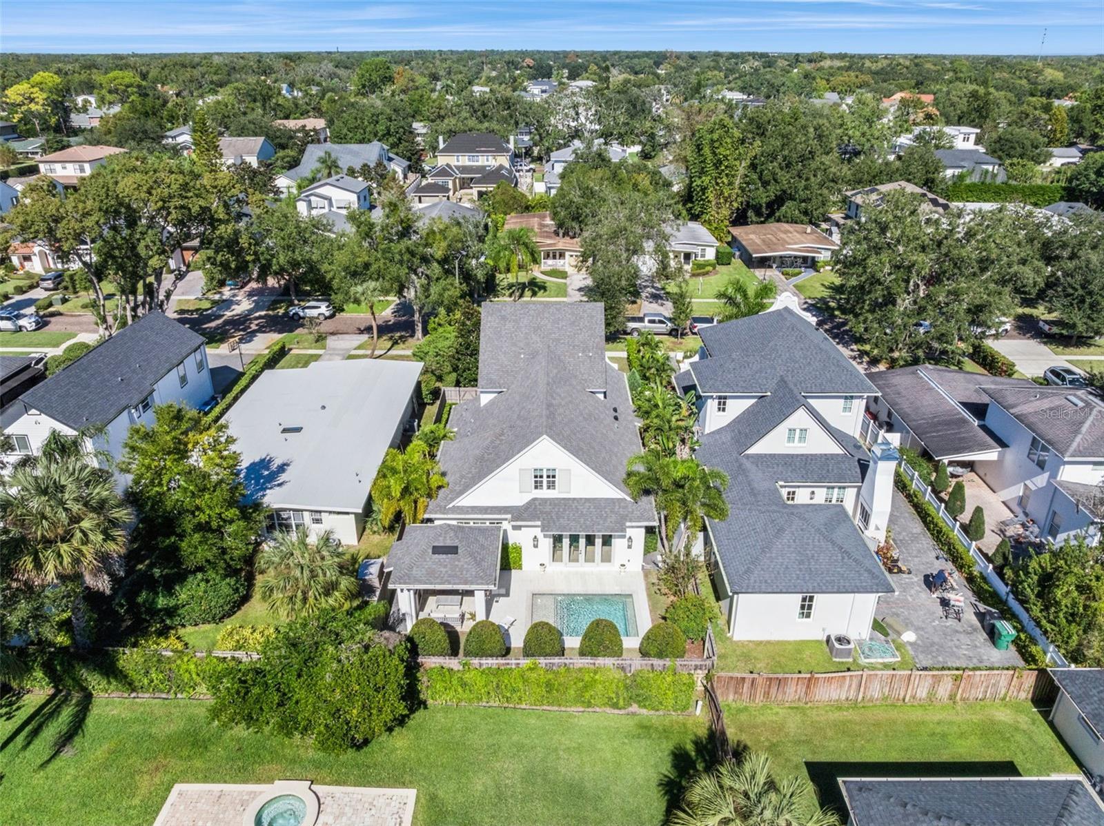 Under contract-accepting backup offers. Discover a fresh take on modern living in one of Winter Park's most admired neighborhoods - the "Tree Streets." This custom three-story LunDev home marries modern minimalism with subtle Dutch Colonial influences, creating a distinctive and inviting retreat. The carefully curated neutral palette sets a relaxed tone throughout, blending timeless design elements with contemporary sophistication—indoors and out. Step into an open-concept layout bathed in natural light that highlights generous room sizes and thoughtful transitions from space to space. The welcoming foyer flows into a great living area and gourmet kitchen featuring a premium Thermador appliance package, including a commercial gas range and double under-counter refrigerator drawers. Adjacent to the kitchen, a stylish powder bath and mudroom with abundant storage lead to a convenient two-car attached garage. The main level is anchored by a luxurious primary suite that features a spa-inspired bath and an expansive walk-in closet with dedicated laundry facilities, perfectly suited for busy lifestyles. From the great room, large garden doors open to a back lanai pool area, seamlessly integrating indoor and outdoor living. Enjoy extended entertaining options in the cabana pool house, complete with a TV and fireplace. Upstairs, two additional bedrooms, each with an ensuite and custom walk-in closet, share a beautifully appointed bonus room with a dramatic raked ceiling and a second laundry area, offering flexibility to suit your needs. The versatile third level features a private studio that can easily serve as a fourth bedroom, guest suite, or private home office, complete with a built-in closet and full ensuite bathroom. LunDev has masterfully created a residence that exudes sophistication and casual luxury, making this property a standout gem. Located near parks, lakes, and premier shopping at Park Avenue, Winter Park Village, and Whole Foods, this home offers an exceptional lifestyle opportunity. Schedule your private tour today to experience the allure of this exquisite Winter Park residence.