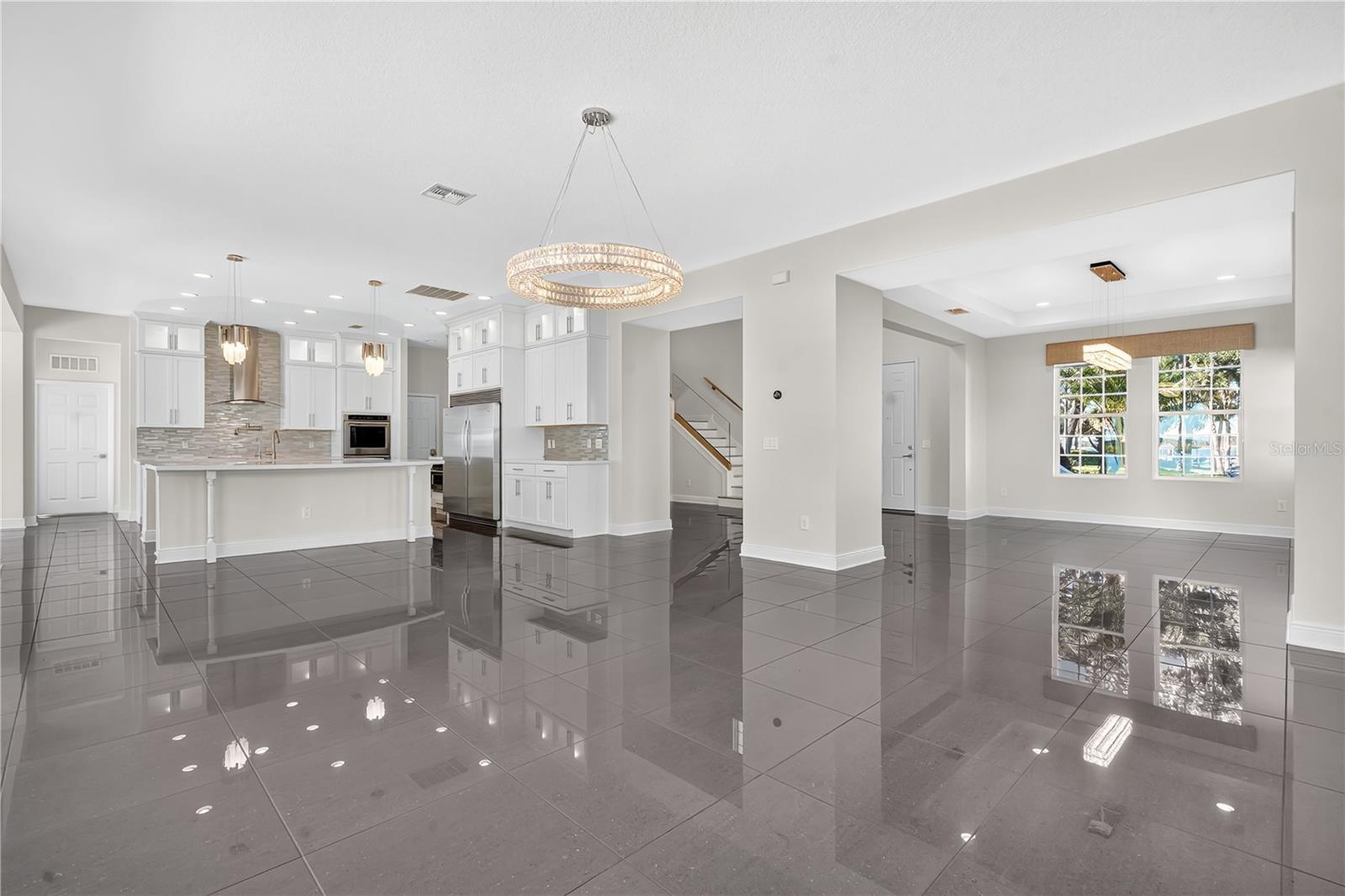 LUXURY ISLAND HOME IN POPULAR GATED COMMUNITY. Experience modern lakefront luxury in Emerald Point, an exclusive gated island of only 28 homes within the desirable Hickory Hammock community, offering a rare blend of luxury, privacy and premium lakefront living. Perfectly positioned on Johns Lake, this contemporary two-story home showcases clean architectural lines, sophisticated finishes, and breathtaking water views, offering the ultimate in Florida living. Privacy and serenity are exceptional with wide lake views from nearly every room and a charming, landscaped park with towering oaks directly across the street. From the moment you enter, a dramatic two-story foyer with upgraded crystal light fixtures and a striking clear view of the lake sets the tone for this modern masterpiece. The formal dining area flows seamlessly into the expansive great room, where an open concept design, stacked stone accent wall, and a rear wall of stackable sliding glass doors creating a true indoor-outdoor living experience. The oversized gourmet kitchen is a chef’s dream, featuring dual islands, pot filler, built-in side-by-side stainless steel refrigerator and freezer, double ovens with convection, built-in microwave, and a dedicated wine and beverage cooler. White shaker cabinetry with illuminated glass inserts, crown molding, quartz countertops, glass tile backsplash, and an oversized walk-in pantry elevate the space. The breakfast nook is perfectly positioned to capture tranquil lake views with every meal. The main level offers a thoughtfully placed half bath for guests, along with a private guest suite featuring sliding doors to the covered lanai and an ensuite bath, ideal for extended stays or multigenerational living. Upstairs, modern glass and stainless-steel railing lead to a spacious bonus room with a full wet bar and additional wine and beverage cooler. This impressive entertaining space opens to a generous balcony with sweeping, unobstructed views of Johns Lake. A convenient laundry room with LG washer and dryer and a second half bath add to the home’s functionality. The primary suite is a serene lakefront retreat, boasting dual walk-in closets, private balcony overlooking Johns Lake, and a spa-inspired ensuite with oversized walk-in shower with rain shower head, garden tub, and dual quartz vanities. Three additional upstairs bedrooms include generous closets, ceiling fans, and either ensuite or Jack-and-Jill baths with tile flooring, quartz counters, and tub/shower combinations; perfect for family or guests. Modern conveniences abound, including a Nest home system, motorized rolling shades, whole-house water filtration with reverse osmosis, and an oversized 3-car garage. The east-facing rear yard offers approximately 102 feet of lake frontage, thoughtfully oriented to avoid the harsh afternoon sun while maximizing shimmering water views throughout the day. Residents of Hickory Hammock enjoy resort-style amenities including a zero-entry pool, clubhouse, fitness center, tennis and volleyball courts, fishing pier, playgrounds, walking trails, and a dog park. Located just minutes from historic Downtown Winter Garden, Winter Garden Village, area attractions, Disney, and Orlando International Airport, this residence perfectly blends contemporary design, lakefront luxury, and everyday convenience. Schedule your private showing today and experience lakefront sophistication at Emerald Point at Hickory Hammock.