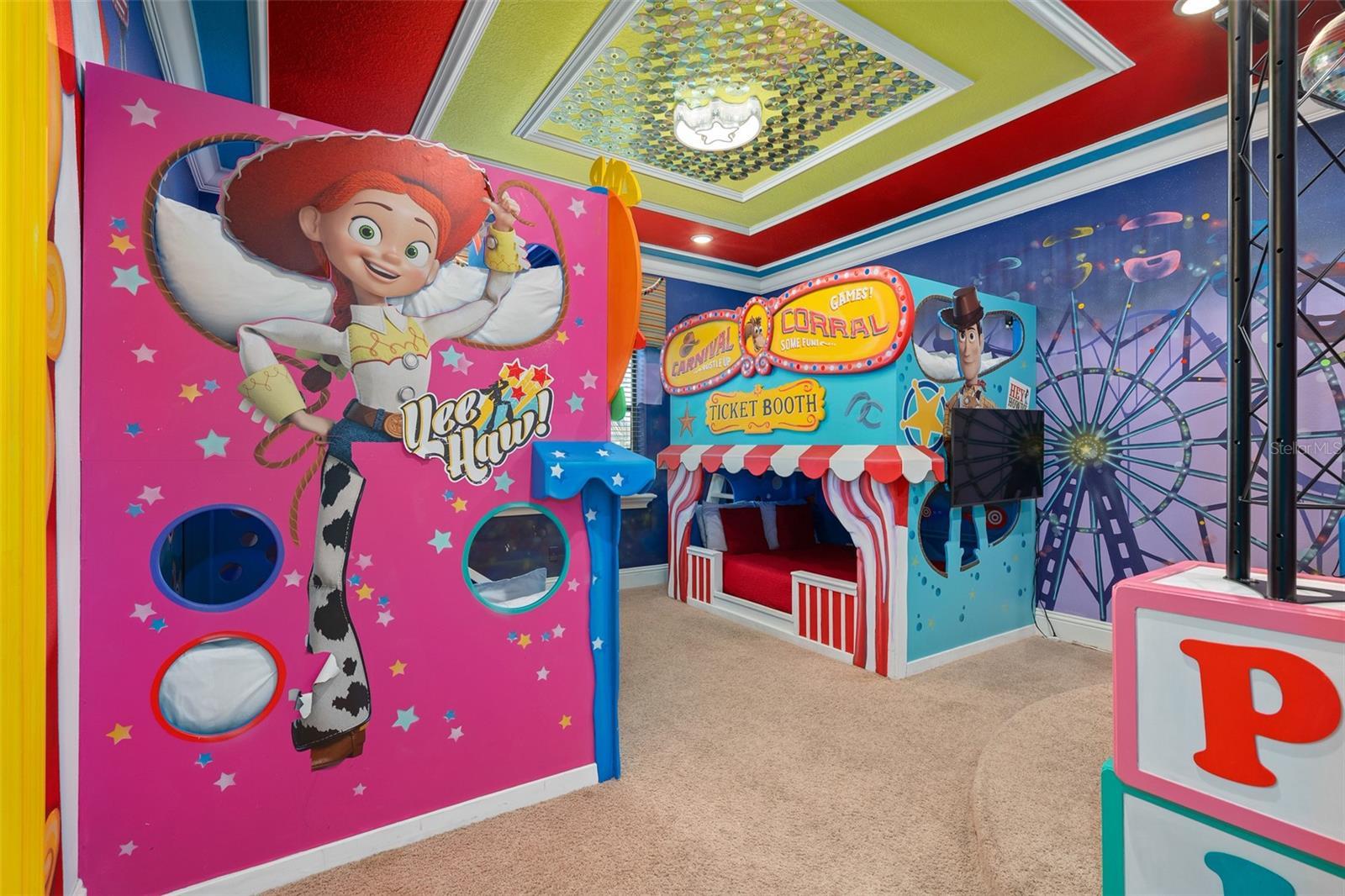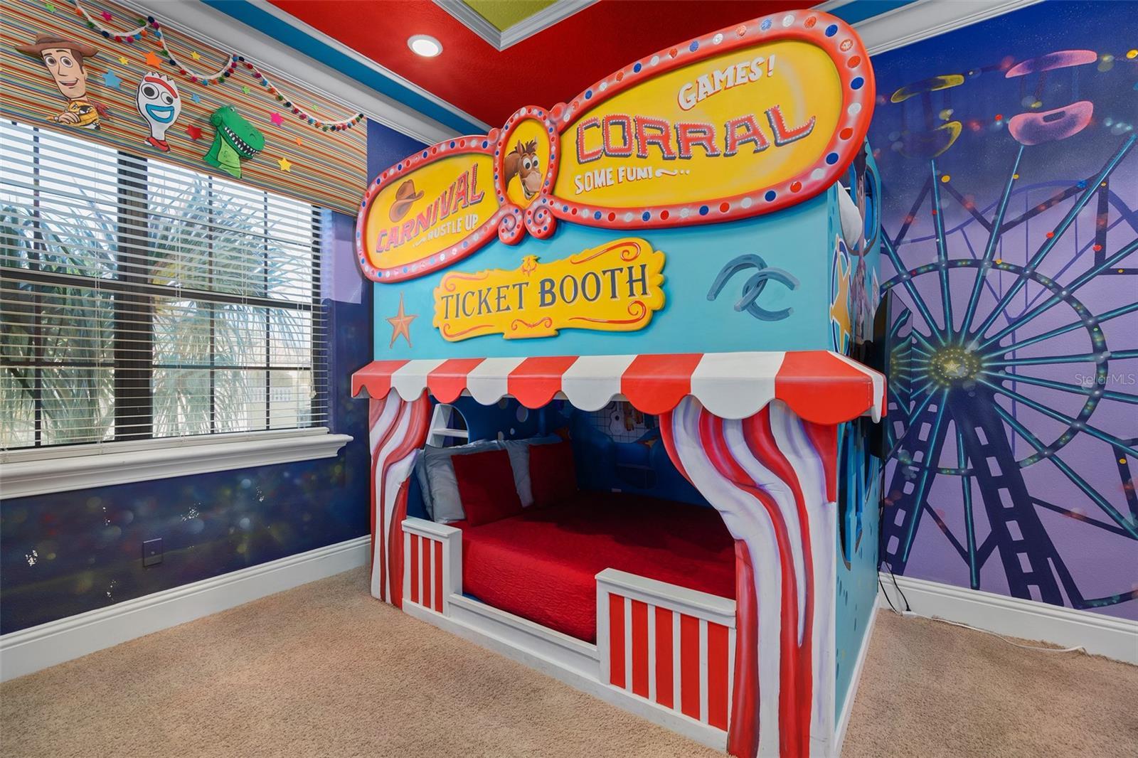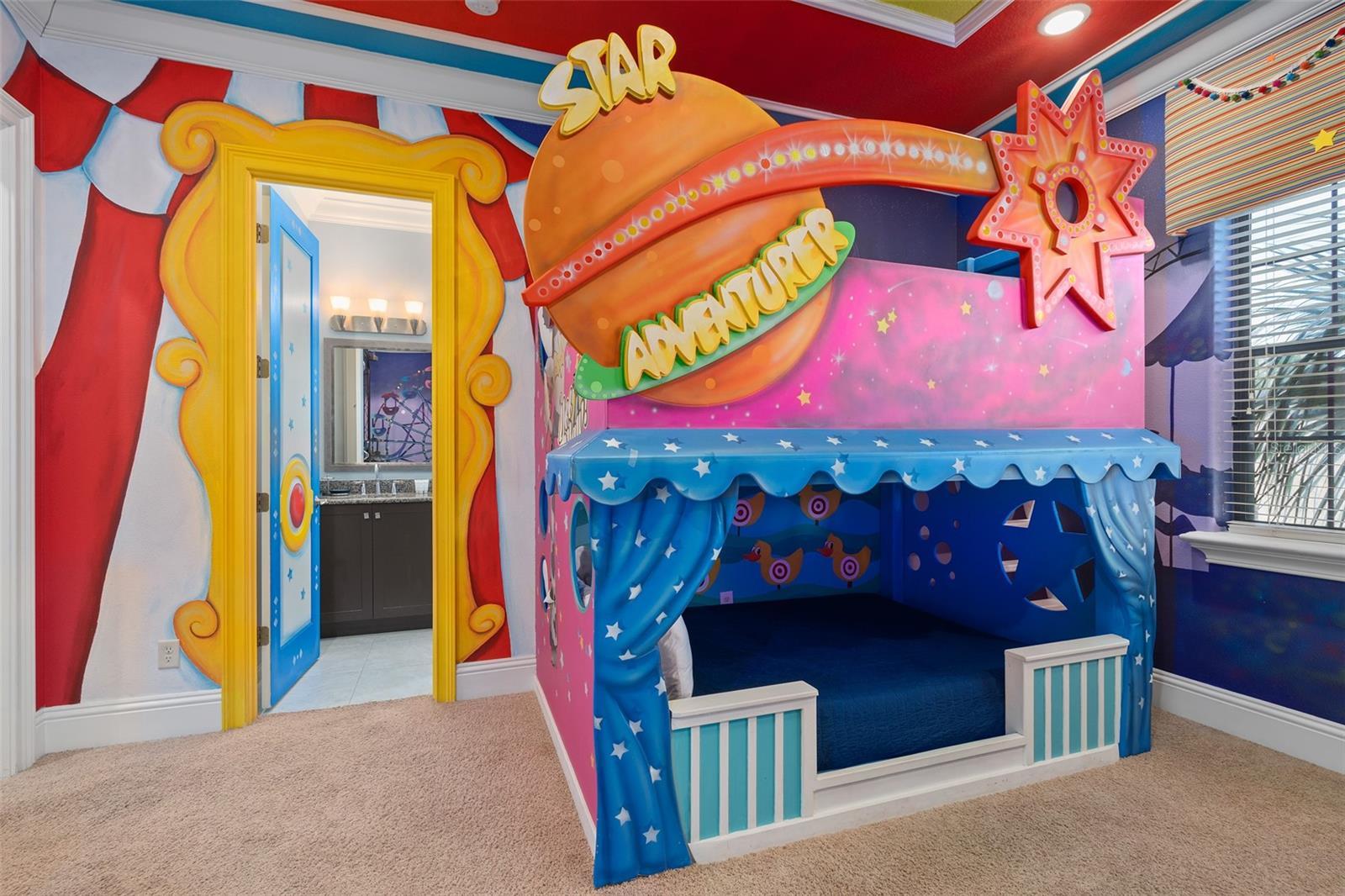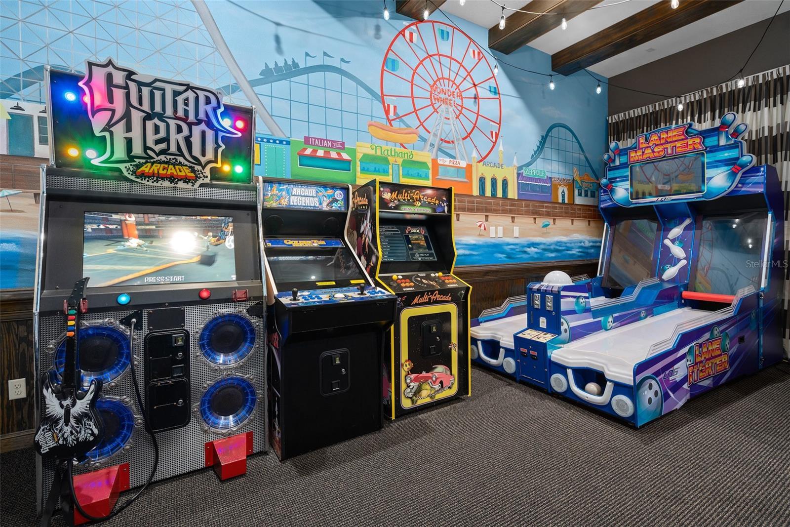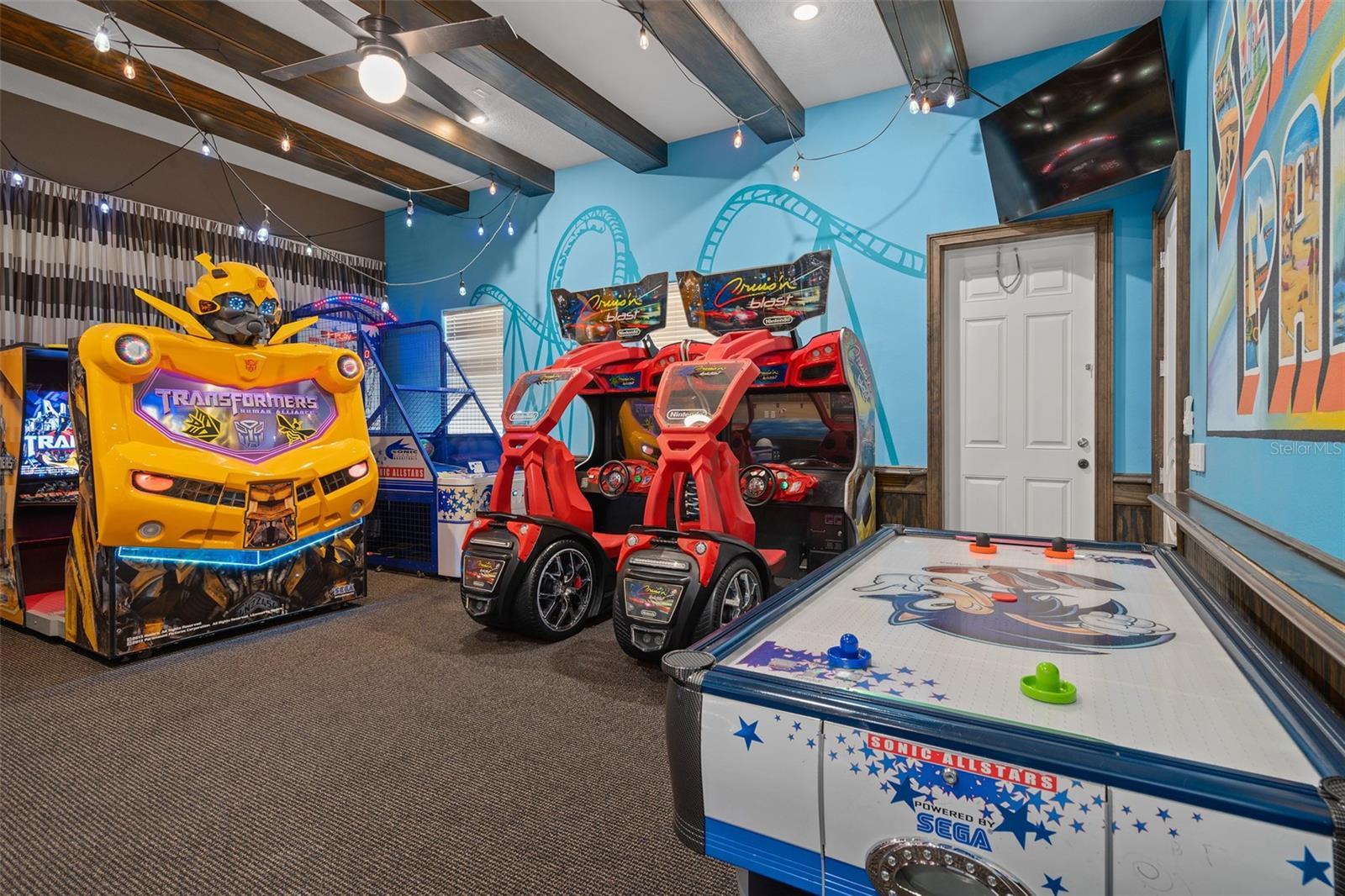Active Club Membership! Located in the Legend’s Corner neighborhood of Reunion Resort, this 8-bedroom, 8-full-bath, 3-half-bath home offers 7,360 heated square feet of space. The home is offered fully furnished and turnkey and operates as a successful short-term rental with a strong booking history and substantial future reservations in place. The first floor includes a primary suite with a bar and beverage fridge, walk-in closet, and en-suite with dual sinks, soaking tub, and walk-in shower. A second bedroom suite with a private courtyard entrance is also on the main level. The kitchen is designed for high-capacity use with two wall ovens, two microwaves, a 70” double fridge/freezer, and a 13-foot counter, all opening to a large living and dining area. Upstairs, the theater room includes a projector and seating for 15, while a separate gaming nook offers both Xbox and Playstation setups. Bedrooms #4 and #5 each have private covered balconies facing the pool along with en-suites featuring dual sinks and separate tubs and showers. Themed bedrooms include a Toy Story room with custom bunks and a karaoke stage and a Jungle Cruise inspired room with custom bunks. Bedrooms #7 and #8 complete the second floor, each with its own bathroom. Outdoor features include 624 square feet of covered living space, a built-in 36” gas grill with vent hood, and a heated pool and spa with sunshelf and a dedicated pool bathroom. The home overlooks the 14th hole of the Jack Nicklaus Tradition Course and includes a front courtyard with an outdoor fireplace. The converted garage arcade features eight machines including Transformers, Cruis’n Blast, and Guitar Hero. A recently installed SPAN smart electrical panel allows remote monitoring and energy management. Spanning 2,300 acres just 7 miles south of Walt Disney World, Reunion Resort is the only destination in the world featuring 3 signature golf courses designed by Jack Nicklaus, Arnold Palmer and Tom Watson. Reunion is also home to the Leadbetter Golf Academy. Onsite dining options include Eleven, 7593 Chophouse, Traditions, Grande Lobby Sushi Bar, the Clubhouse, the Cove, and Drifters at the waterpark. The water park features a lazy river, slides, outdoor games, and an aquatic playground. The gift shop in the Grande offers sundries and Starbucks coffee. Complimentary shuttles to the Disney transportation and ticket center leave from the Grande daily. Additional amenities include Camp Reunion, the tennis and pickle ball center, bocce ball, mini golf, foot golf, fitness center, playgrounds, dog park, various community pools including a roof top pool on the 11th floor of the Grande, and more. Zoning for short term rentals allows homeowners to rent their property by the night providing a great opportunity for investors. Reunion also works great as a primary residence or a private vacation retreat. The resort offers three separate 24 hour guard gated entries and one owner/resident only entry. Video and virtual tour available!