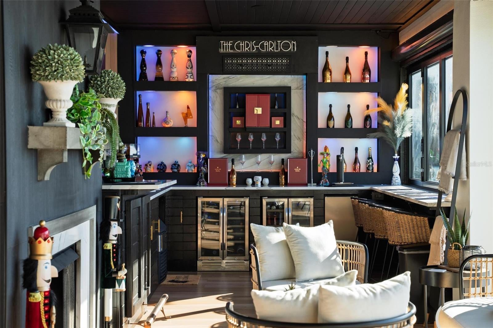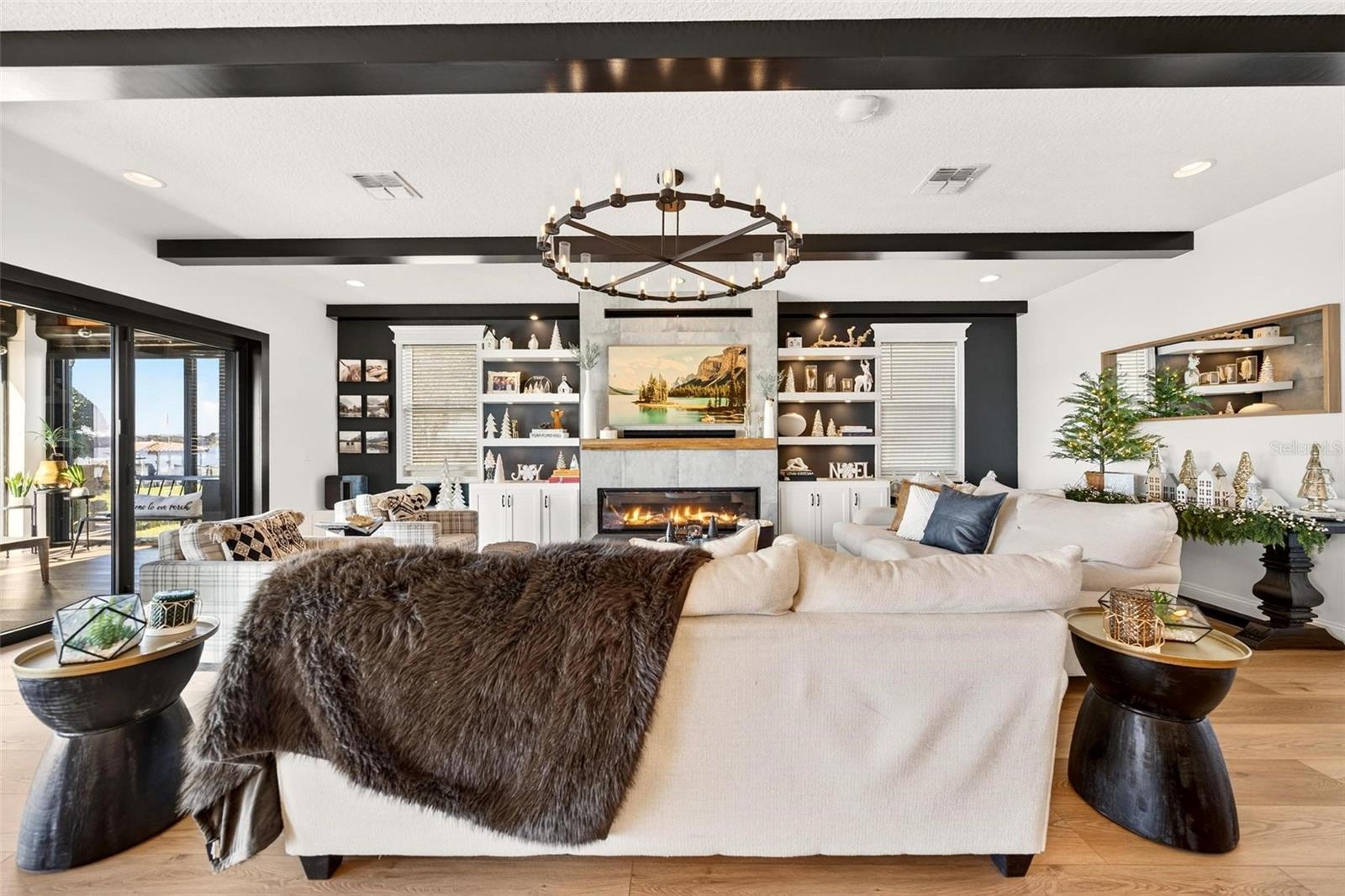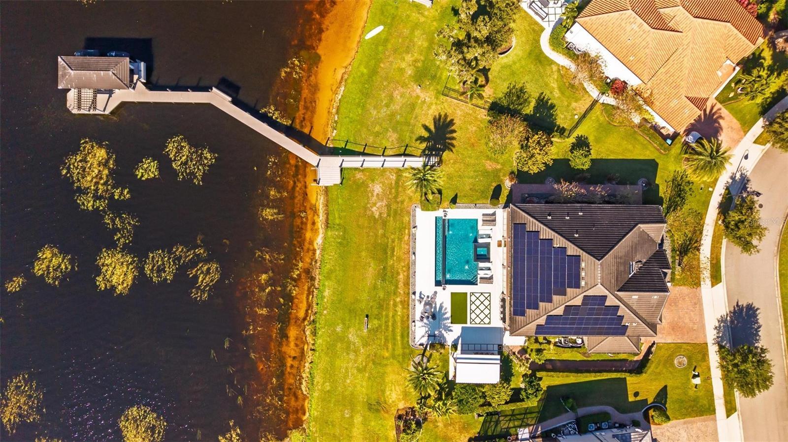 Under contract-accepting backup offers. **A Rare Lakefront Peninsula Estate in Emerald Pointe**Ideally positioned at the tip of a private island peninsula, this stunning lakefront estate offers unmatched privacy and panoramic water vistas within **Emerald Pointe**, one of Winter Garden’s most exclusive double-gated enclaves. Set along the shimmering shores of **Johns Lake—ranked among Florida’s Top 10 Bass Fishing Lakes—**the residence captures uninterrupted lake views from the moment you step through the front door. Designed to blur the boundaries between indoors and out, the home features a **Double NanaWall system** that spans the main living space with floor-to-ceiling glass. When opened, the precision-engineered, dual-pane panels vanish completely, allowing the great room to merge seamlessly with the lakefront environment. When closed, the insulated glass provides exceptional sound and thermal protection, complemented by **motorized retractable screens** for effortless open-air living. This is a home created to live far beyond its walls. Offering **5 bedrooms, 4.5 bathrooms, a dedicated theater room, and a spacious loft**, the floorplan provides both luxury and livability. The **primary suite** enjoys its own expansive balcony overlooking the water—an ideal vantage point for the vivid, mirror-like sunsets that reflect across the lake each evening. A custom **100-bottle illuminated wine room** becomes a striking architectural feature, while meticulous craftsmanship is displayed throughout the home: rich wood beams, elegant crown molding, and bespoke built-ins surrounding a designer fireplace. The chef’s kitchen showcases a large center island finished with **Wolf and Sub-Zero appliances**, ideal for culinary enthusiasts and entertainers alike. Every room is **Sonos-ready**, and the home’s striking bar becomes the centerpiece of evening gatherings, complete with programmable lighting that syncs to music for a club-quality ambiance. Mechanical upgrades include **two new Amana variable-speed AC units** (3.5 & 4 ton), ensuring optimal efficiency and comfort year-round. Outside, resort living continues with an **infinity-edge pool** featuring a glass pebble finish, dual heaters, and bubblers, all framed by **Shellock resort-grade pavers** designed with natural seashell cooling technology. The **outdoor pergola summer kitchen** is an entertainer’s dream—complete with a grill, pizza oven, sink, refrigerator, app-controlled lighting, and Sonos-integrated audio. Waterfront amenities are second to none: a **140-foot Hodgskins-built dock** with a boat lift and two jet ski lifts provides instant access to the lake. The property also includes a **four-car garage** and a durable **tile roof**. From its world-class indoor-outdoor design to its truly unforgettable nightly sunset displays, this exceptional estate offers a lifestyle found nowhere else on Johns Lake. A private retreat—crafted for those who demand exceptional living at every turn.