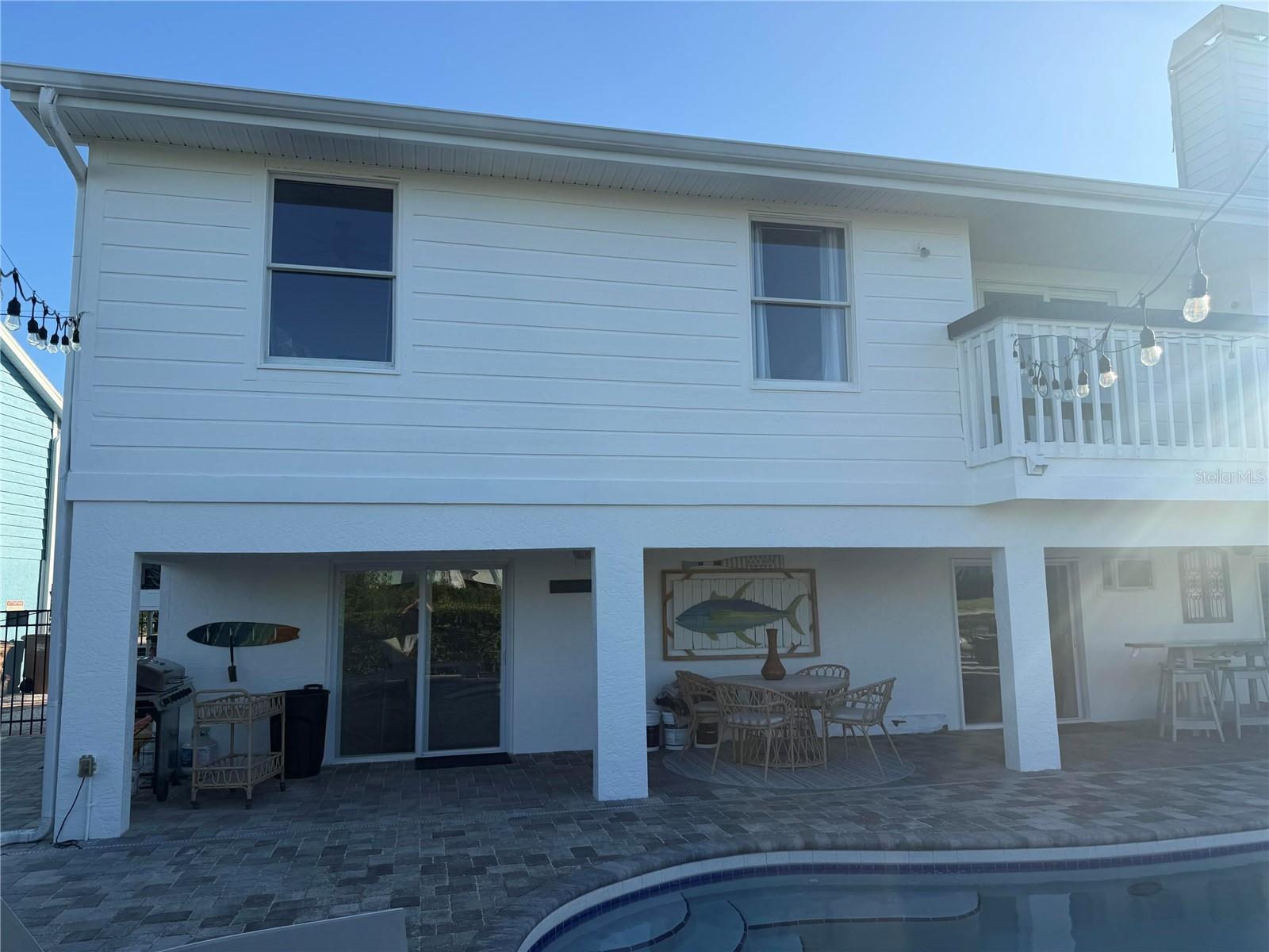 150k kitchen remodeled, just finished – Fully Furnished & Turnkey Rarely available waterfront home with beautiful water views from both the front and back. Fully furnished and professionally maintained with a strong rental history. Located on a quiet dead-end street just minutes from the beach, dining, shopping, and local attractions. Freshly painted on the exterior in a tasteful cream color, the home has a chic and coastal aesthetic that complements its waterfront setting. Situated on a saltwater canal, the property includes a heated pool, private dock with above- and underwater lighting, dredged boat access, an updated seawall, and a whole-home Generac generator. Inside, a 27-ft family room features a fireplace and sliding doors opening to a large balcony overlooking the water. The remodeled chef’s kitchen includes a 60” built-in refrigerator, 48” dual-fuel range with double ovens, double sinks, granite countertops, marble backsplash, and a massive 13’ x 5.5’ island with seating for seven. The kitchen flows into the dining and family areas, all with views of the Intracoastal. The primary suite includes a walk-in closet, double vanity with granite, tiled walk-in shower with glass enclosure, dual shower heads, jacuzzi tub, and a decorative stained-glass window. The guest bathroom is also fully updated. The lower level features a spacious 24’ x 16’ room with sliding doors that open to the pool and lanai area, finished with travertine pavers and plenty of space for outdoor entertaining. Major updates include: a brand-new roof, new natural gas pool heater, new tankless gas water heater, updated seawall, generator, and more. Too many upgrades to list—this turnkey property is a must-see!