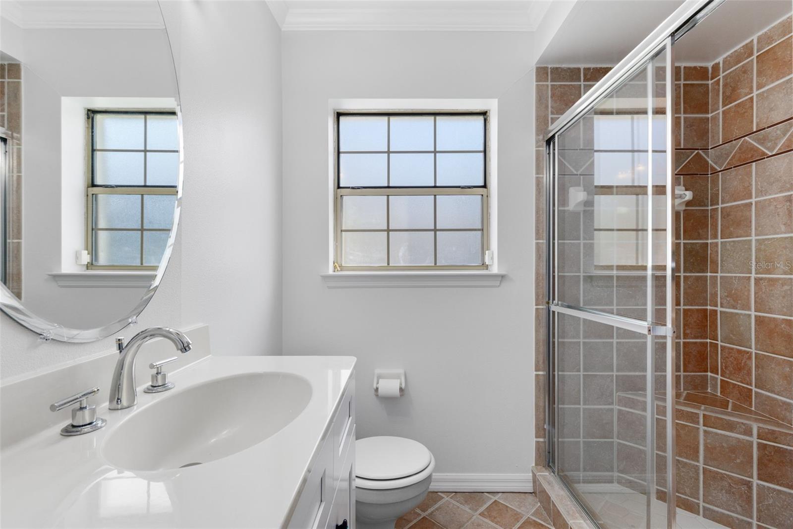 One or more photo(s) has been virtually staged. This beautiful two-story residence is located in the highly desired Temple Heights neighborhood in the heart of Winter Park. Situated on an expansive double lot, this well-maintained home offers over 3,900 sq ft of heated living space and features 5 bedrooms and 4 bathrooms in the main home, plus a large separate pool home/In-Law Suite complete with its own bathroom and kitchenette. The home features original hardwood and vinyl flooring throughout, high vaulted ceilings, and an open floor plan designed for both comfort and entertaining. The family room and kitchen overlook the covered lanai, oversized pool, and spacious, private backyard. French doors open directly to the pool and outdoor barbecue area, creating a seamless indoor–outdoor living experience. The kitchen offers light cabinetry, bright countertops, stainless steel appliances, a gas range, and a window-wrapped dinette with views of the backyard. A front-facing formal dining room provides additional hosting space. Upstairs, the private primary retreat includes French doors leading to a large balcony overlooking the pool and grounds. The spa-like master bathroom features a jetted tub, separate walk-in shower, and a generous closet. A second upstairs bedroom includes built-ins and works perfectly as an office. The property also includes an attached 2-car garage with a long driveway and ample parking. The oversized yard, landscaping, and pool create a serene and inviting outdoor setting ideal for gatherings. This is a rare opportunity in Winter Park—just minutes from Park Avenue’s world-class restaurants, boutiques, galleries, and Rollins College, as well as Kraft Gardens, the YMCA, and the Winter Park Racquet Club.
