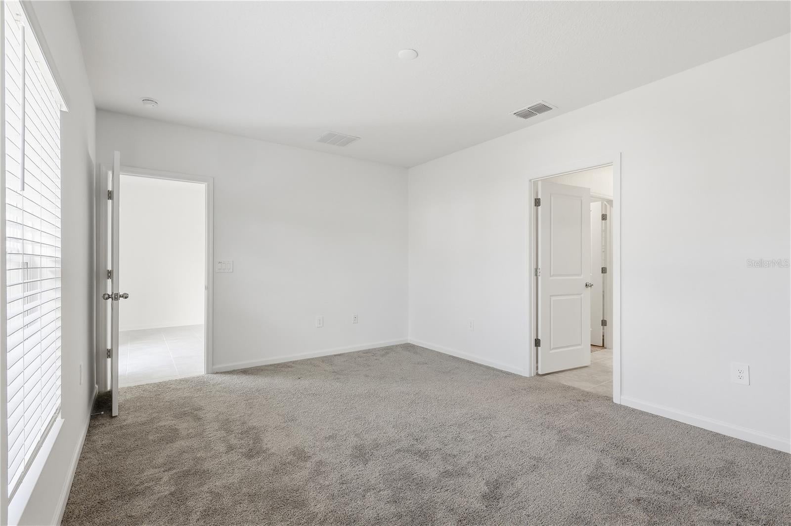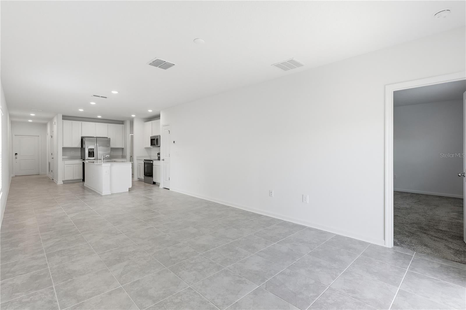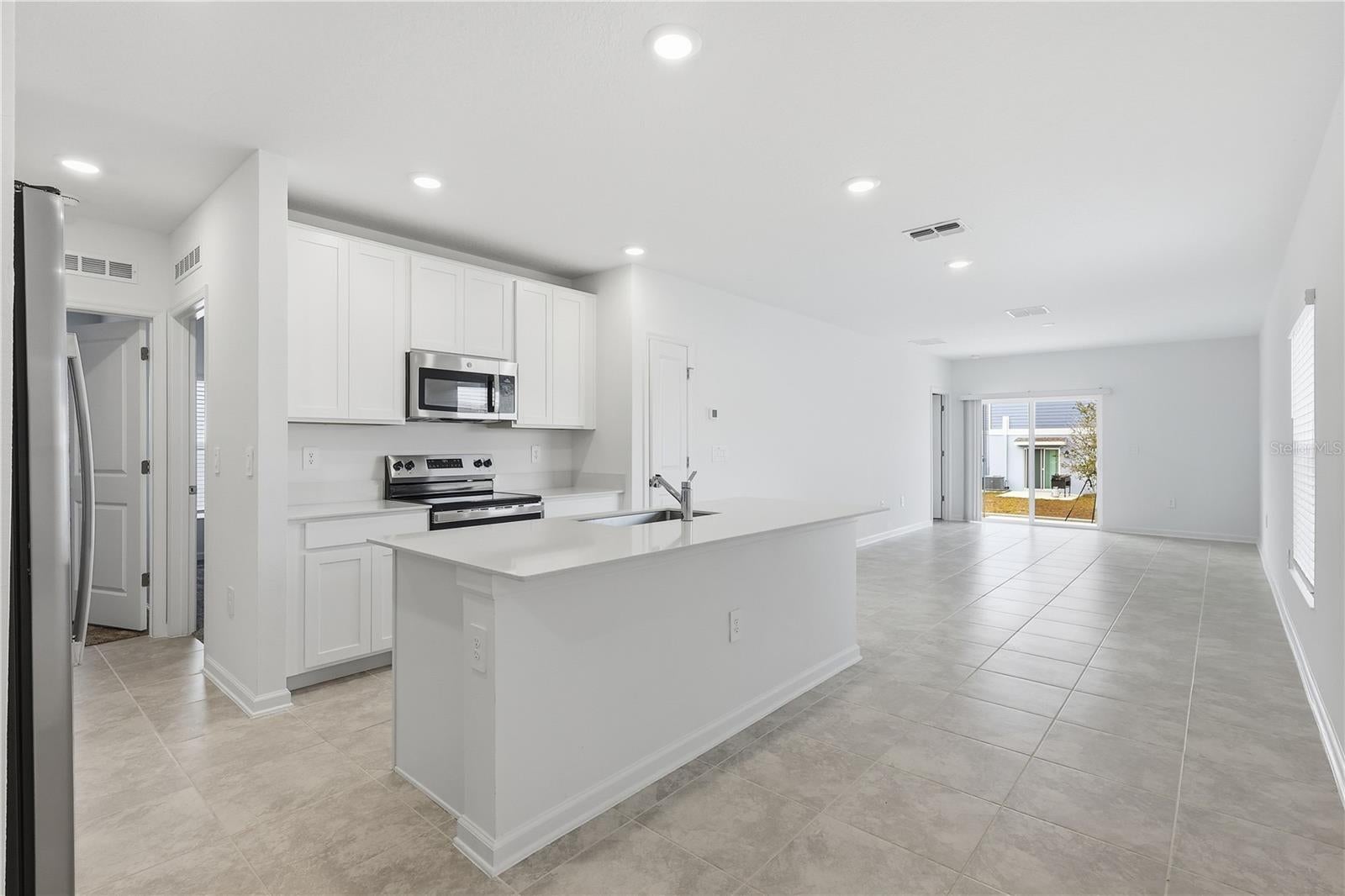- Kitchen/Family Room Combo, Open Floorplan, Primary Bedroom Main Floor, Solid Surface Counters, Solid Wood Cabinets, Stone Counters, Thermostat, Walk-In Closet(s), Window Treatments