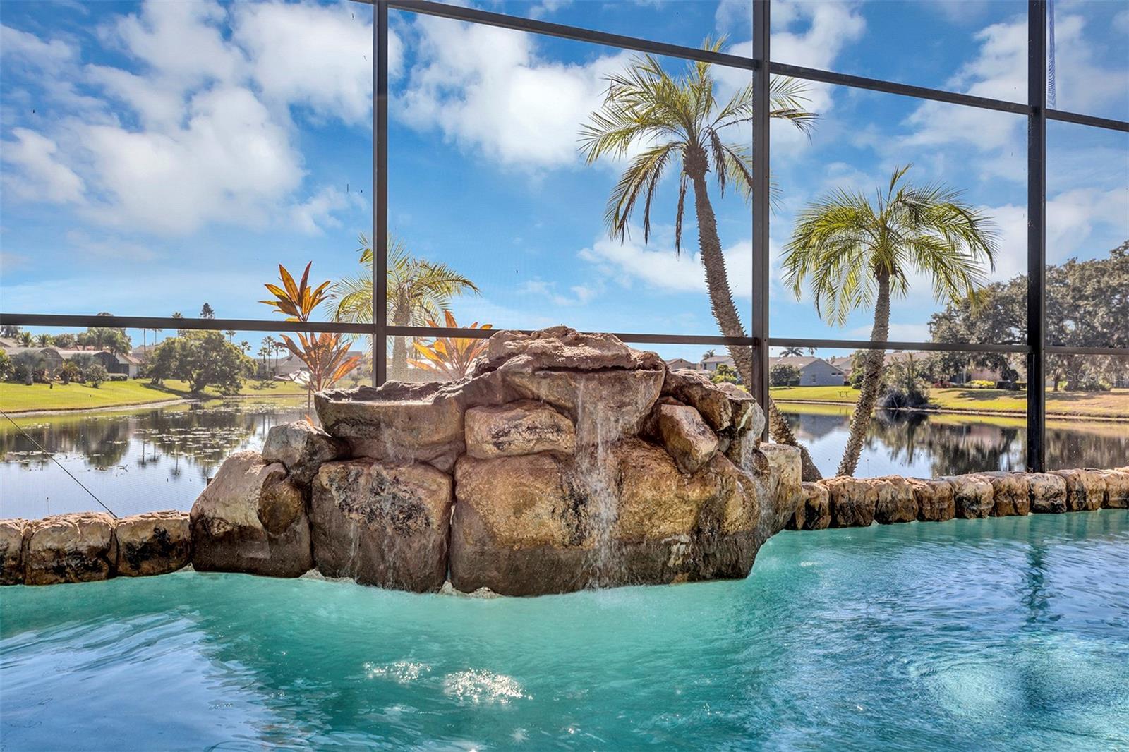 One or more photo(s) has been virtually staged. WATERFRONT BEAUTY! GORGEOUS VIEWS AND SETTINGS FROM MULTIPLE ROOMS! Privacy, quality, the best of Florida living! 1/3 acre of Gated elegance! Hunters Isle is the preferred destination in Hunters Creek! Spacious 1-story, over 3,300 sq. ft of living! Split plan 4bed, 3.5 bath plus a spacious office, ideal for remote employment! Plantation shutters in Office and Dining Rooms! Waterview from multiple rooms in home! Sparkling Saltwater pool, with decorative and functioning fountain, ideal centerpiece for aesthetics and relaxation. Huge lanai that is ideal for family gatherings and festive entertainment occasions! Additionally, ALL FOUR bedrooms have walk-in closets. NEW ROOF(2024), NEW PLUMBING TOTALLY REPIPED(2025). HOME both INTERIOR AND EXTERIOR totally repainted October, 2025 plus entire garage and flooring was repainted! Primary bath updated and renovated. All NEW light fixtures throughout property! New door hardware and miscellaneous lights and switch plates all brand NEW! NEW pool light, renovated kitchen cabinets and more! Take advantage of the HUNTERS CREEK lifestyle! Award winning community as recognized by CNN Money Magazine! Awesome park system throughout community. Sports and recreation galore include multiple playgrounds, tot lots, basketball courts, baseball fields, pickleball courts, racquetball, tennis courts, nature trails and multiple holiday activities! Sought after schools, Elementary and Middle Schools are physically located in Hunters Creek! Put this property on your MUST SEE LIST! Click on Virtual Tour line for 360 tour and floor plan!