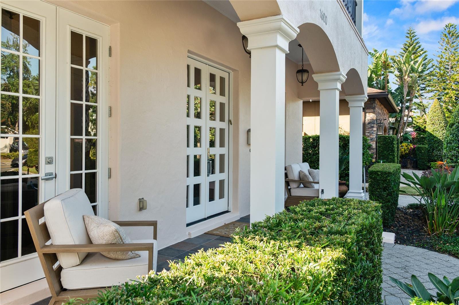 - Balcony, French Doors, Lighting, Rain Gutters, Sidewalk