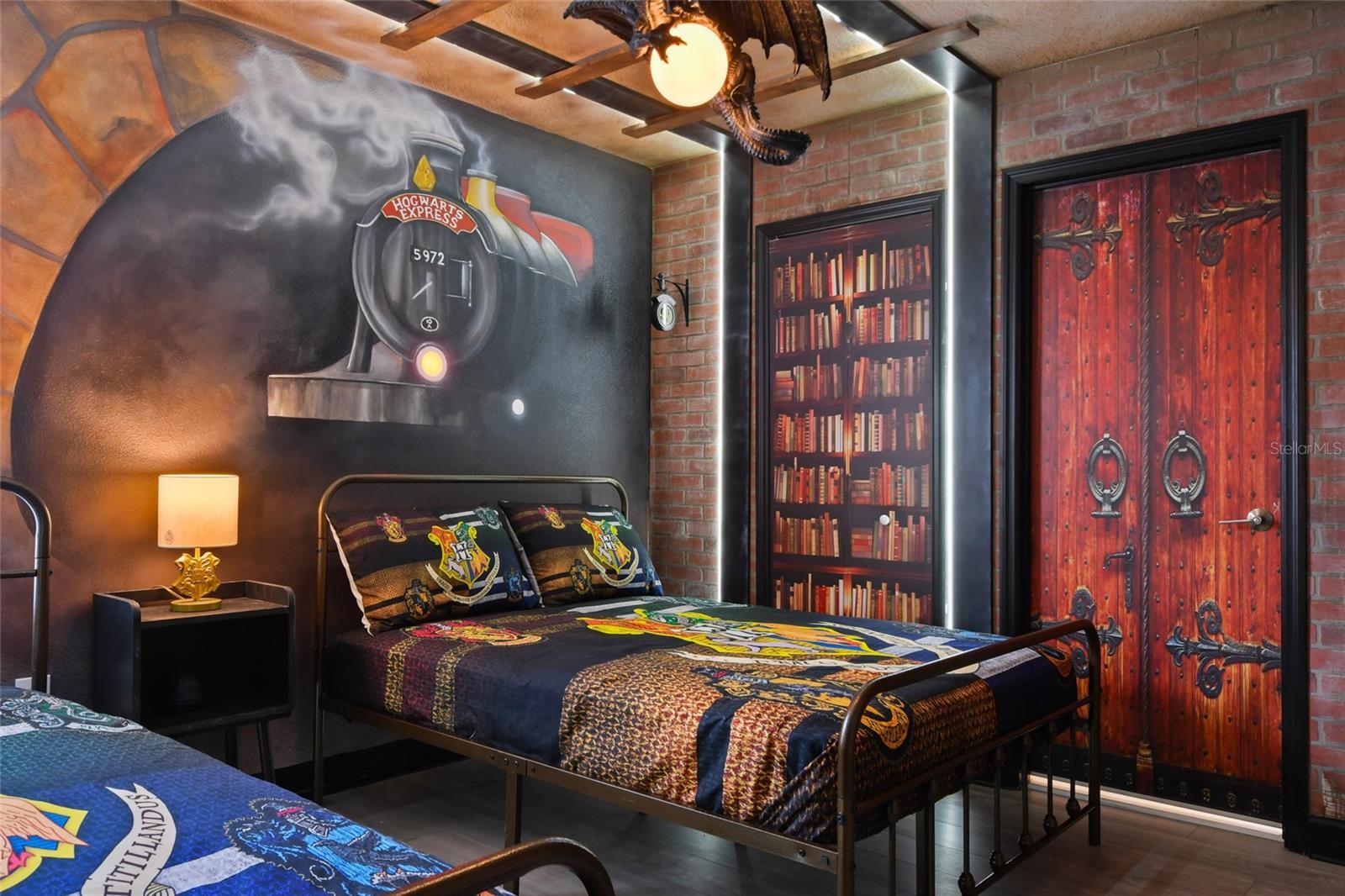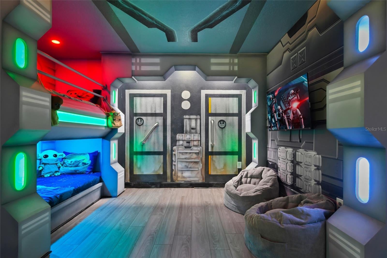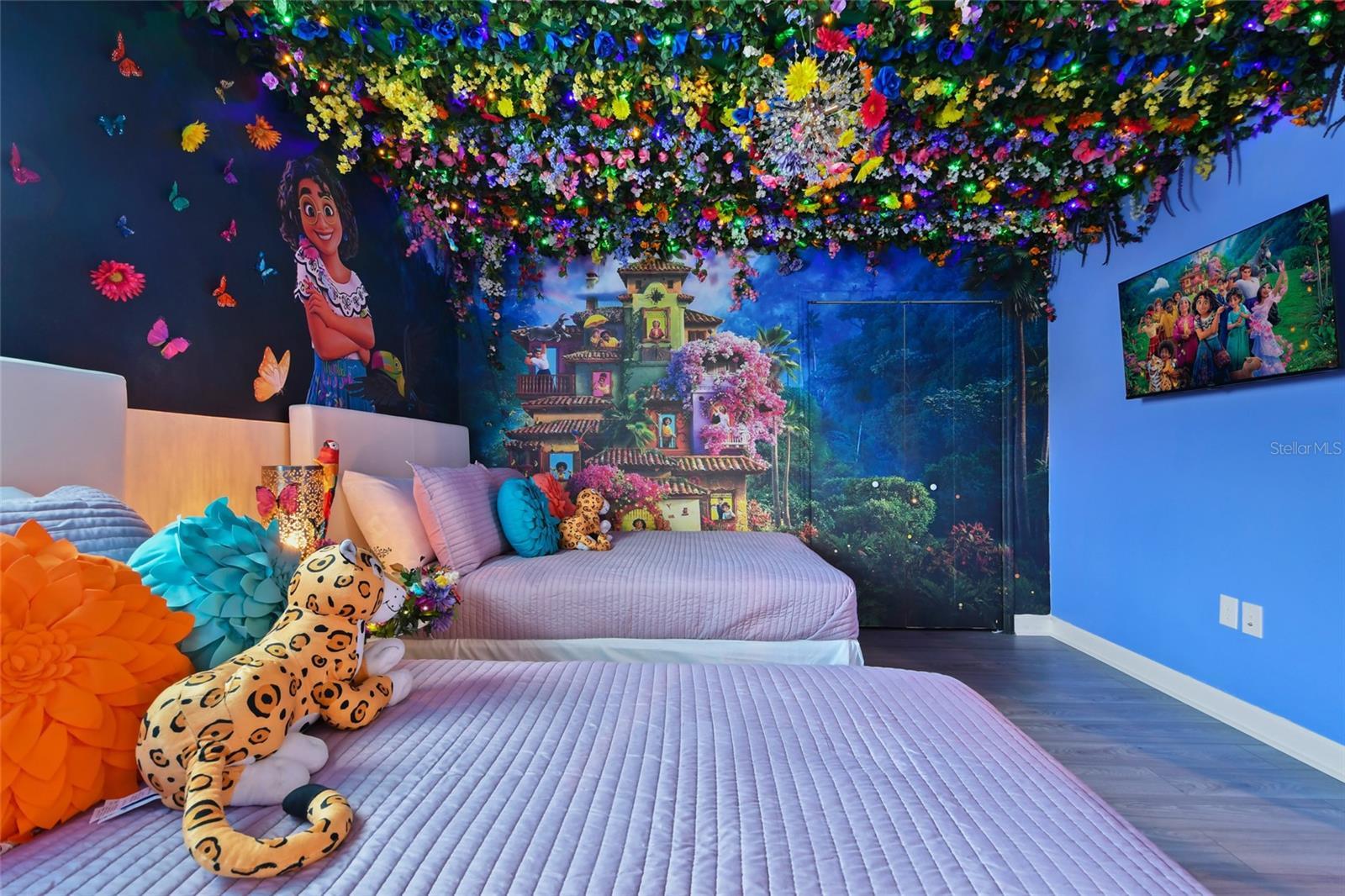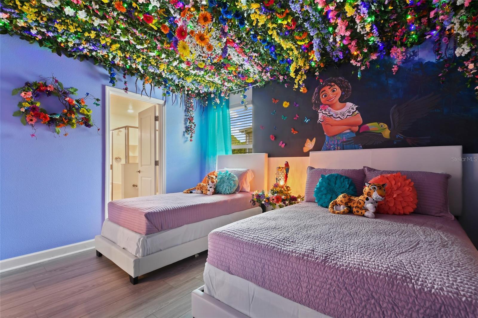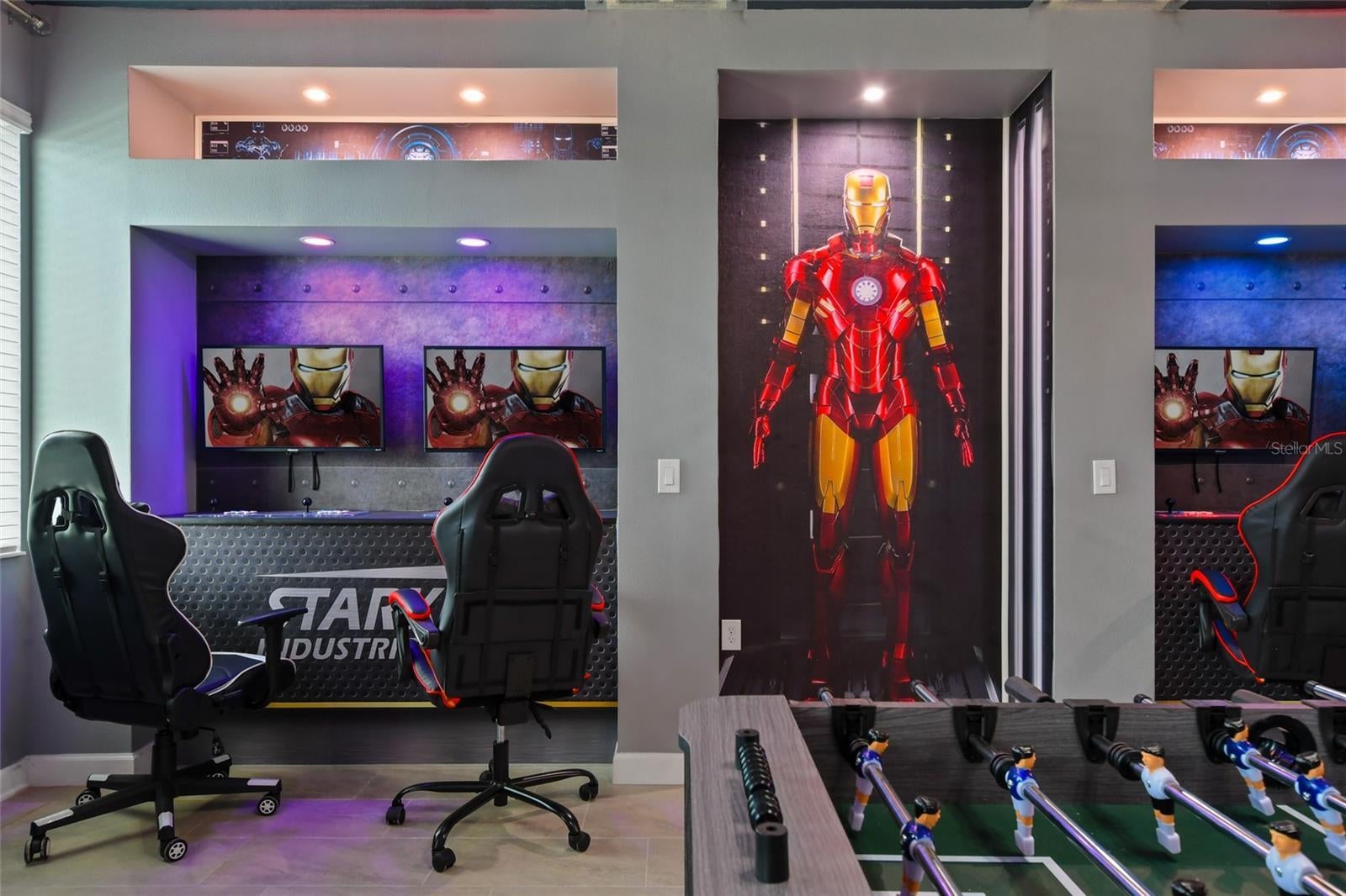 Welcome to this extraordinary 8-bedroom luxury home located in the highly sought-after Storey Lake Resort in Kissimmee. Fully furnished and professionally themed throughout, this residence delivers a true turnkey experience for vacation rental investors and families seeking an exceptional second home just minutes from Walt Disney World. The main floor centers around an expansive open-concept layout with a beautifully appointed living room, spacious dining area for large groups, and a gourmet kitchen featuring quartz countertops, stainless steel appliances, 42-inch cabinetry, and an oversized island with seating for six. One elegant king bedrooms are conveniently located on the first level, offering comfort and privacy for multi-generational groups. Sliding doors open to a private screened outdoor oasis complete with a heated pool, spa, covered patio, outdoor dining, and sun loungers — the perfect place to enjoy Florida living. The upper level elevates the guest experience with an impressive Avengers-style entertainment loft and multiple themed bedrooms thoughtfully designed to delight every age group, including Frozen, Star Wars, Harry Potter, Minecraft, and more. Additional king bedrooms and tastefully decorated suites ensure ample space and comfort for large parties. Every room boasts coordinated décor, premium bedding, and smart TVs. The home also features a full Avengers-themed game room equipped with pool table, air hockey, gaming area, and vibrant mural work. This residence has been meticulously maintained and curated to maximize guest enjoyment and convenience, offering a seamless transition for short-term rental use or immediate personal enjoyment. Storey Lake is one of Central Florida’s most desirable resort communities, offering gated access and world-class amenities including multiple pools, lazy river, water slides, splash park, fitness center, tiki bar, sports courts, and mini-golf. Ideally located minutes from Disney, Universal, shopping, dining, and major highways. A rare opportunity to acquire a fully turnkey 8-bedroom resort home in a premier community with outstanding rental appeal and no setup required.