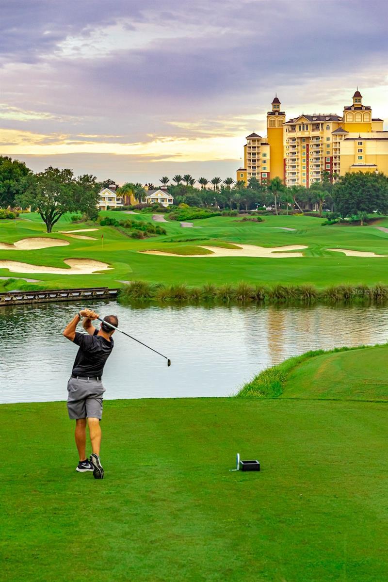 One or more photo(s) has been virtually staged. Experience the best of Reunion Resort in this stunning three-story luxury home, offering breathtaking golf course and sunset views. Perfect for a memorable family vacation, this home has been thoughtfully updated with a new roof, fresh interior and exterior paint, new carpet, and 2022 A/C units. Boasting over 5,300 sq. ft., the spacious floor plan is designed for entertaining and comfortable family living. The elegant living room opens to a covered patio, ideal for enjoying Florida’s spectacular sunsets. Two primary bedrooms one on each level with California closets. Relax in the private courtyard pool, complete with an outdoor grill for al fresco dining. This home also features a large, private in-law suite and a two-car garage with ample space for vehicles and a golf cart. Reunion Resort is just 6 miles from Walt Disney World and offers world-class amenities, including three championship golf courses designed by Arnold Palmer, Tom Watson, and Jack Nicklaus, 14 community pools, and a multi-million dollar water park with a lazy river and water slide.