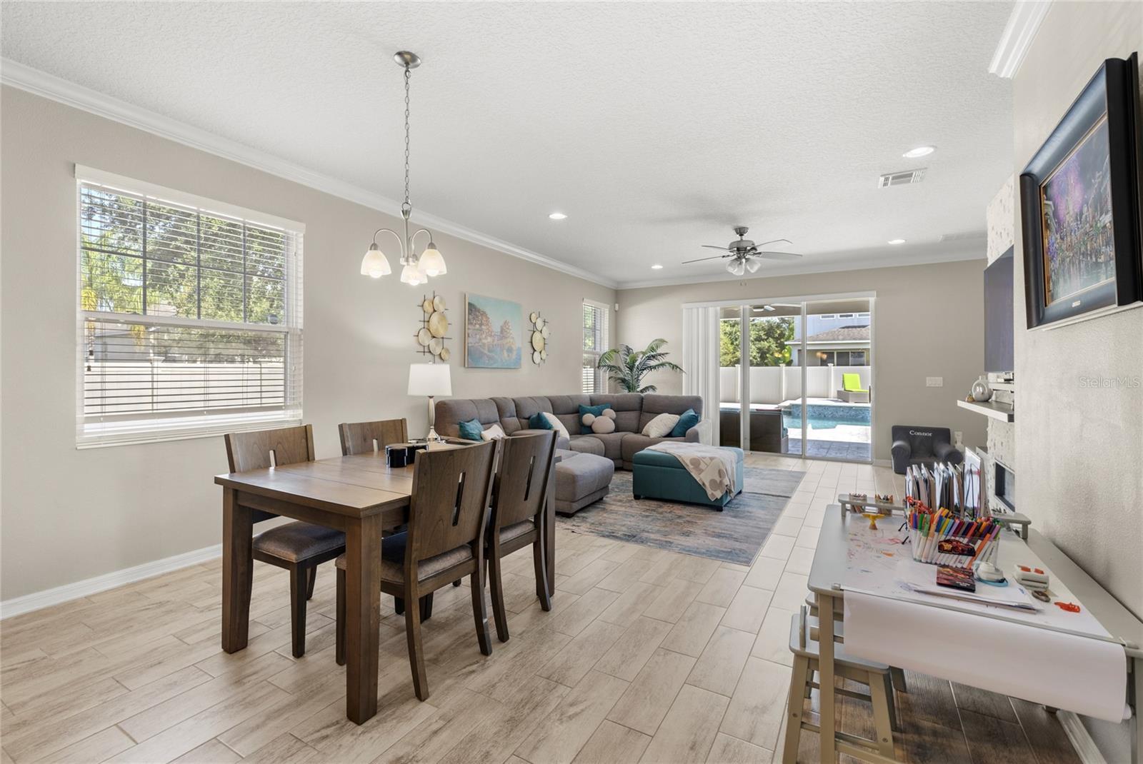 - Ceiling Fans(s), Crown Molding, Eat-in Kitchen, High Ceilings, Living Room/Dining Room Combo