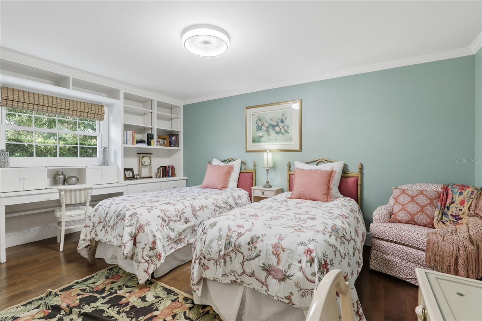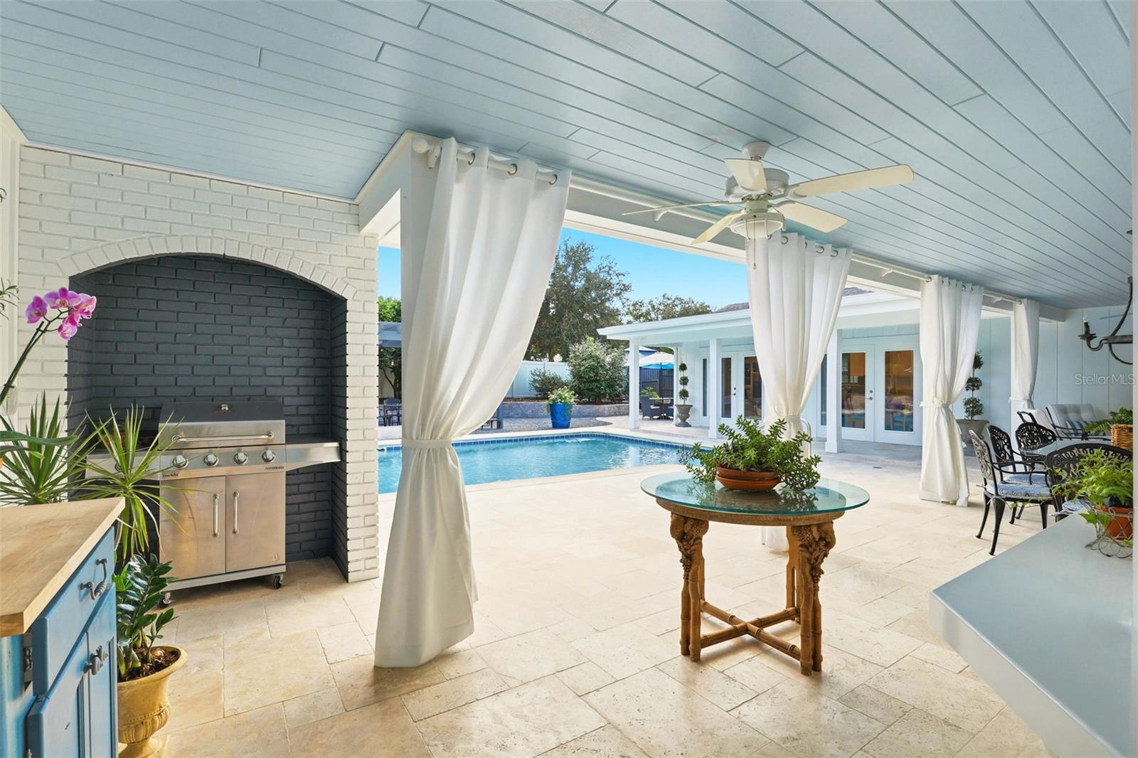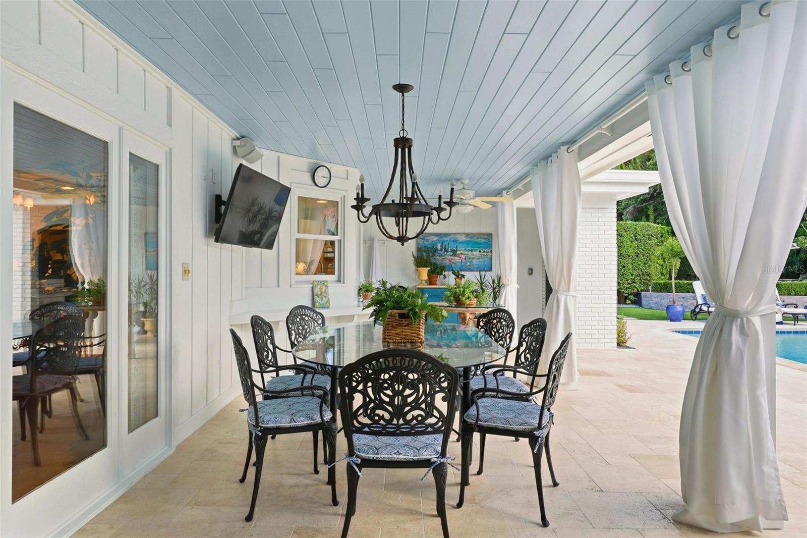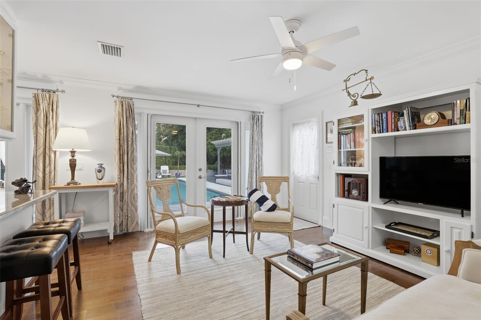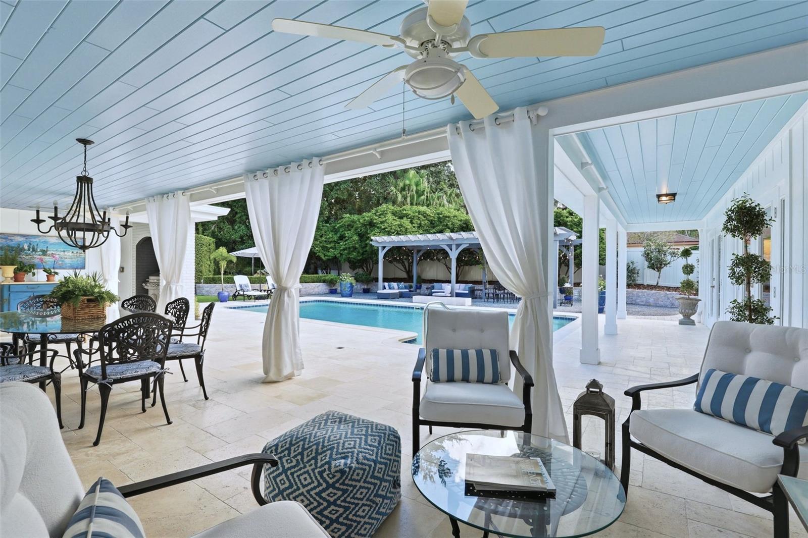 Totally traditional. This luxury single-story home is in the desirable Sevilla neighborhood in Winter Park. Sitting high and dry on approximately a half-acre, beautifully landscaped lot. Original home was gutted down to the studs in 2011-2012 and completely re-done. Interior layout boasts formal living with bay window and tall ceilings, dining room with antiqued mirror set into extensive moldings and trim, plus a library/den with a tongue and groove wood vaulted ceiling and a wall of bookshelves and built-ins. The spacious family room with a white-washed brick wall, wood-burning fireplace and vaulted ceiling is all open to the breakfast area and kitchen. The gourmet kitchen features custom inset cabinet drawers and doors, white marble slab backsplashes, Kohler farmhouse sink and a large island with a deep prep sink. The kitchen is a chef’s delight with a 48-inch Viking gas range, Viking warming drawer, JennAir refrigerator, wine refrigerator and a Bosch dishwasher. The kitchen also has amazing storage and two large pantries. There are a total of three bedrooms (one of which is in the in-law suite) and three full baths. Throughout the home are beautiful real ¾-inch-thick and 5-inch-wide plank walnut floors, beam and coffered ceilings, French doors, oversized picture windows and designer accents lighting. French doors off the family room open to seamlessly blend indoor and outdoor living, leading to a covered lanai with travertine stone tile overlooking a resort and entertaining backyard. Huge swimming pool and a 30-by-15-foot pergola with Bistro lighting, which is a wonderful spot to relax, dine and play, all on a tiny pebble surface, like an Italian driveway! French garden fountain, rose garden and synthetic turf for pets make the backyard a haven. The home’s floor plan offers a desirable layout with huge primary bedroom with a generously sized en-suite bath with dual sink counters, amazing Roman walk-in shower, jetted tub with bubblers and two large walk-in closets. Guest wing features a spacious bedroom and bath and the West Wing is a full In-law apartment, including a bedroom, handicapped bath, full kitchen and its living room. Imagine having a wonderful space for in-laws or an adult family member that needs space of their own. Just a short drive or bike ride from Park Avenue, this open and inviting home has easy access to Park Avenue, AdventHealth, downtown Orlando and is zoned for A-rated schools. Surround sound through most of the house and CAT 6 wiring throughout. Recent additional remodeling and updating have taken place including all new paint inside and out, as well as a new roof and gutters in 2023. A detailed list of all renovations is available upon request.