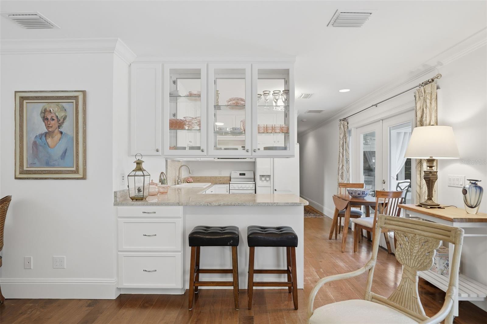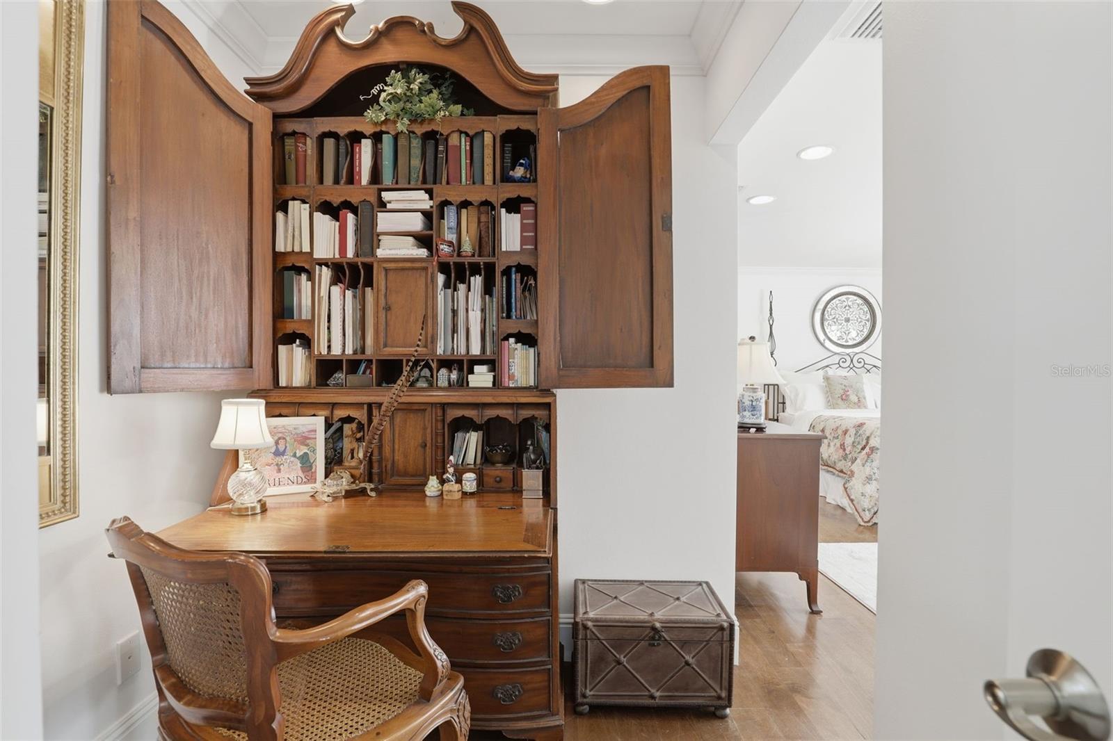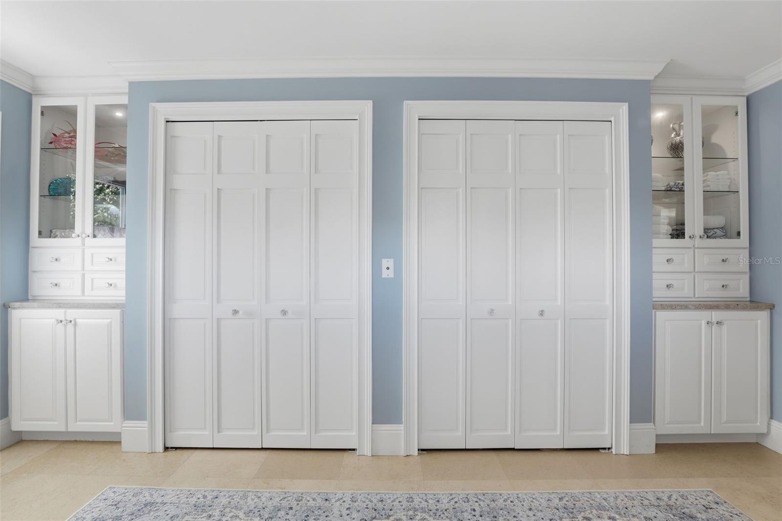- Built-in Features, Cathedral Ceiling(s), Ceiling Fans(s), Chair Rail, Coffered Ceiling(s), Crown Molding, Eat-in Kitchen, High Ceilings, Kitchen/Family Room Combo, Open Floorplan, Primary Bedroom Main Floor, Solid Wood Cabinets, Split Bedroom, Stone Counters, Tray Ceiling(s), Vaulted Ceiling(s), Walk-In Closet(s), Window Treatments