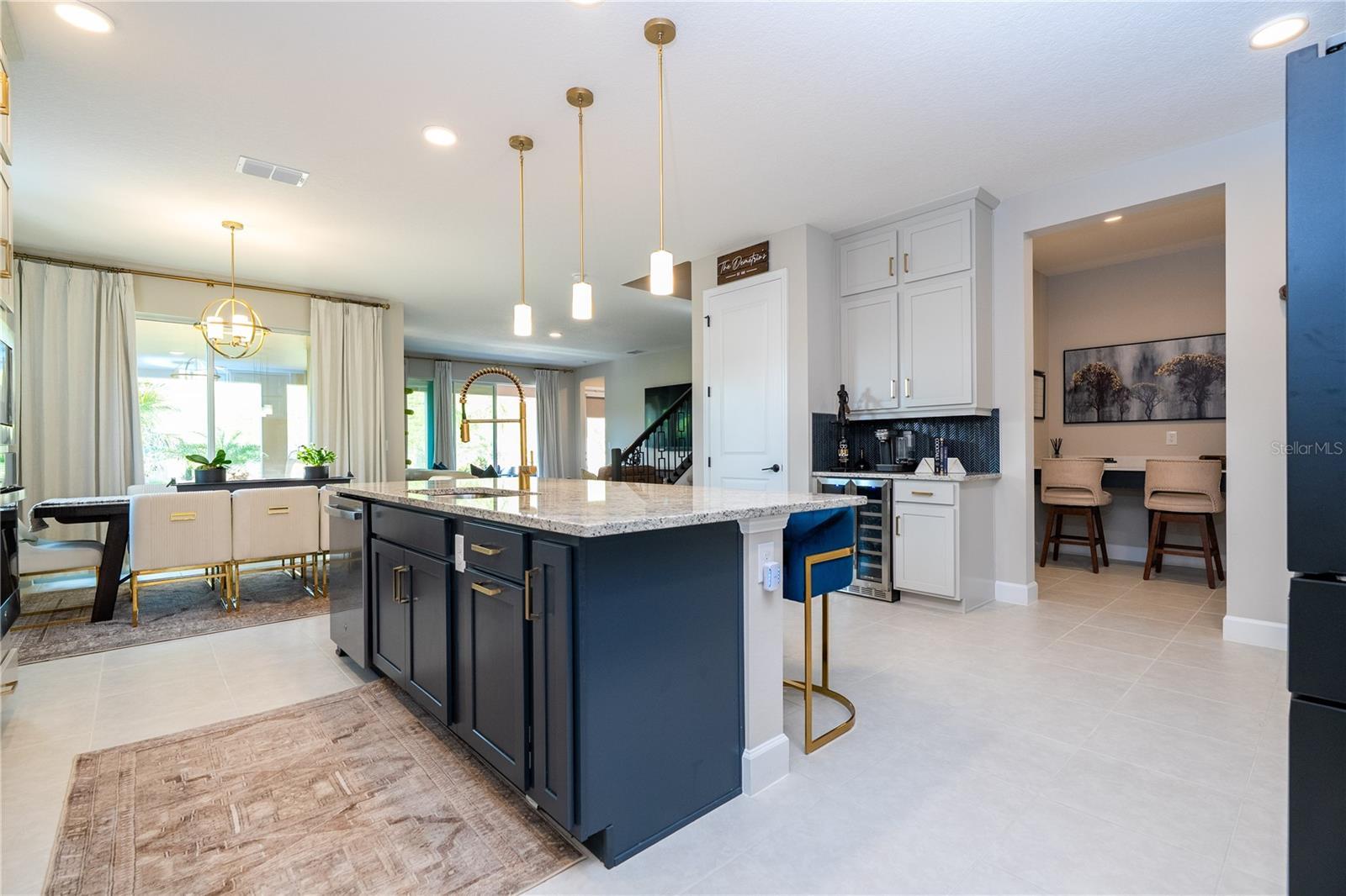 This exceptional Dartmouth Model Home residence perfectly balances elegance and modern luxury. Every detail has been thoughtfully curated to enhance comfort and style. The main level showcases a stunning entrance ( seller's office ) dining room area with a spacious buttler pantry and a walking closet pantry. The gourmet kitchen is equipped with premium stainless appliances, a gas top range with a pot filler, upgraded faucets and ample custom cabinetry ideal for the culinary enthusiast, a wine bar perfect to entertain Family and Friends. A Study room/office for the family just across from the gourmet area. The Nook/ seller's dining room lead to the outside L shaped extended Lanai great to enjoy the built in Argentinean BBQ area. A spacious Family Room with sliding doors to a relaxing Lanai with a pergola overlooks the beautiful landscape with extended brick pavers area and a relaxing Koi pond. There is a full bathroom featuring a mosaic-tiled floor and walk-in shower. The First Floor Master Bedroom/ In Law Suite with a Master Bathroom Garden Tub and separate shower , dual vanities, and a spacious walk-in closet. On the Second Floor a Loft/ Entertainment/ Play Room plus (3) Bedrooms with walking closet plus a full bathroom with shower/tub and a stunning Second Master Bedroom with an upgraded large Balcony to relax and enjoy the Florida lifestyle overlooking the landscaped garden with a Koi pond. The Second Master Bathroom professionally designed with beautiful tile shower and dual vanities with a large walking closet. Laundry room on the second floor. Enjoy the Florida Lifestyle at this elegant and spacious Home.