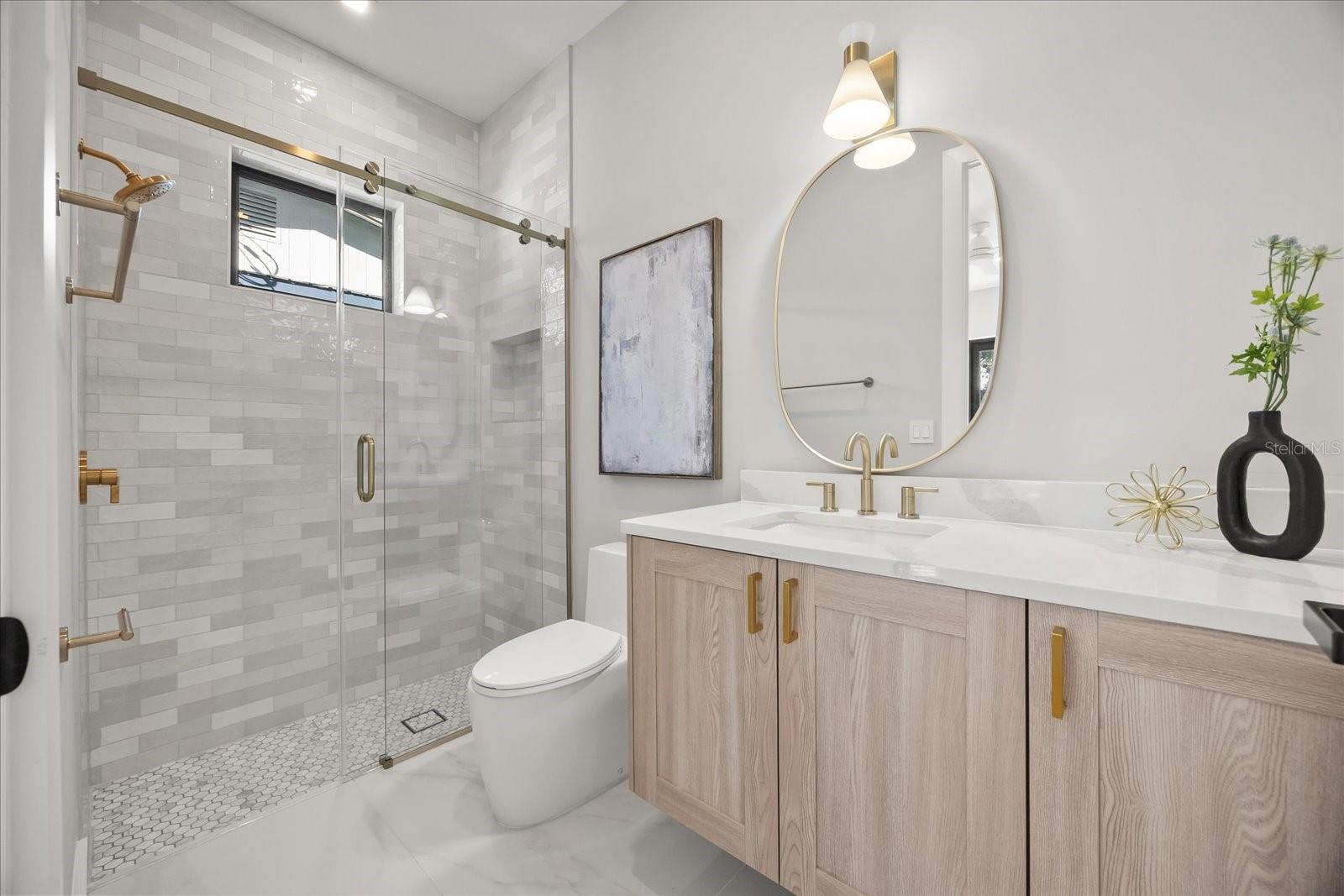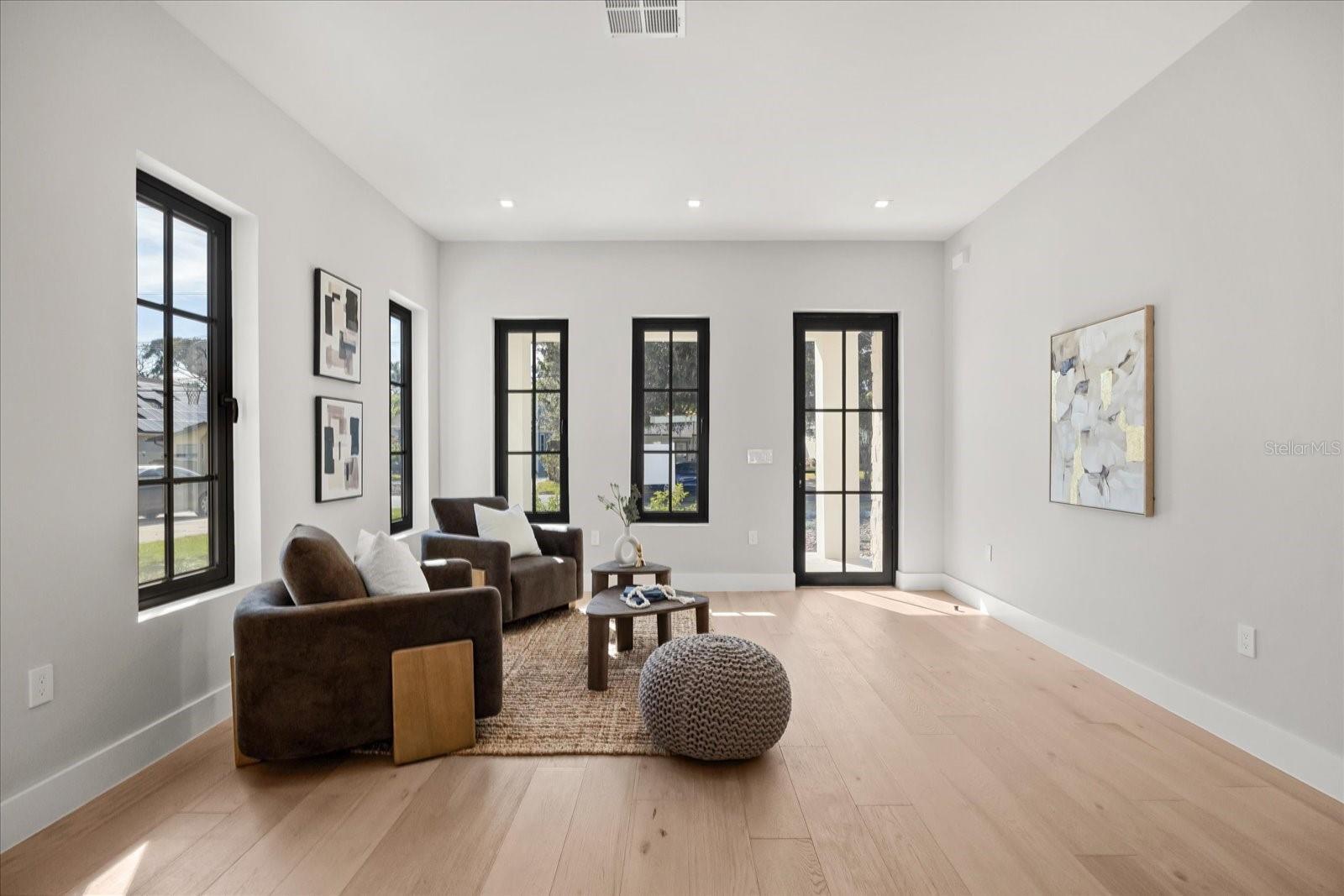 A newly constructed luxury home in the heart of College Park, this property blends modern craftsmanship with the classic charm of one of Orlando's most beloved neighborhoods. The main level unfolds with an effortless sense of openness, where the living room, dining room, and family room flow seamlessly around a chef's kitchen appointed with stone counters, a designer range hood, and a suite of built-in appliances including a wine refrigerator. A private bedroom with a full bath on this level offers ideal flexibility for guests or a dedicated workspace. The second floor is designed for comfort and privacy, beginning with a serene primary suite featuring a generous walk-in closet and a spa inspired bath.Three additional bedrooms provide abundant space for family and visitors, while a loft and an upstairs laundry room add everyday convenience to the thoughtful layout. Throughout the home, engineered hardwood and porcelain tile floors combine durability with beauty, and features such as zoned climate control, custom accents, and ample storage showcase the quality of construction. Outdoors, the lifestyle continues with a covered living area, an outdoor kitchen, and a landscaped yard ideal for quiet evenings or weekend gatherings. A long driveway leads to a rare detached garage that adds both convenience and private covered parking. Sidewalk lined streets connect you to the energy of College Park, where local dining, boutique shopping, parks, and the upcoming Packing District enrich every day. Move in ready and meticulously designed, this luxury home offers a refined way of living in a location that brings the best of Orlando to your doorstep