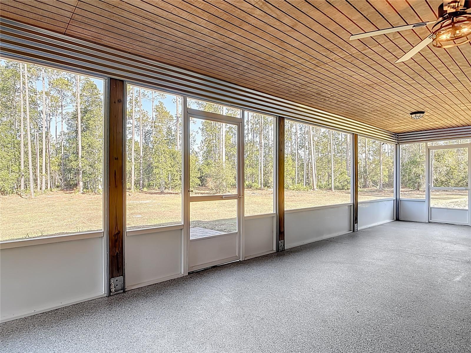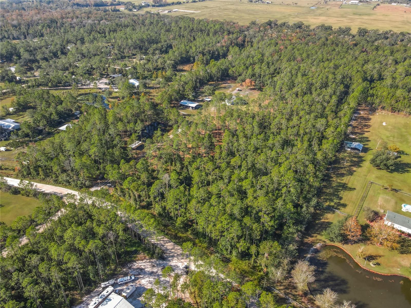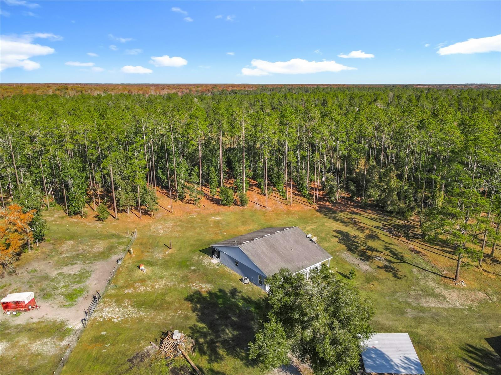 Looking for privacy, peace, and quiet? This beautiful 20-acre property—featuring a custom-designed solid block 3-bedroom, 3.5-bath home—offers the serenity and space you’ve been dreaming of. Step inside to a fantastic, efficient floor plan with no wasted space. The open-concept Great Room flows seamlessly into the spacious kitchen, creating the perfect setting for entertaining or gathering with family. The kitchen features solid wood 42-inch cabinetry, a large island, and abundant counter space. A large laundry/utility room is located beside the kitchen for storage and wash. Expansive windows throughout keep the home bright while providing sweeping views of your private acreage. The split bedroom layout includes a generous Primary Suite with a walk-in closet and an en suite bathroom complete with dual sinks and an oversized walk-in shower. Each of the two large secondary bedrooms also offers its own private full bath and ample closet space—an ideal setup for multi-generational living or long-term guests. A convenient guest half bath is located off the main living area. French doors open to the impressive 44' x 15' screened lanai, spanning the entire back of the home. Enjoy peaceful mornings and evenings watching native wildlife—deer, hawks, and more—right from your own backyard. The property is a rare full 20-acre, high-and-dry parcel. It includes a 1-acre fenced pen currently used for cows, plus three pole barns—one 60' x 30' and two 30' x 15'—providing exceptional versatility. Timber planted on the land offers an agricultural tax advantage. There is a small pond on the property. Bring your horses and enjoy nearby riding trails at Lake Heart Conservation Area. All this is just minutes from DeLeon Springs State Park, where you can enjoy swimming in the springs, birdwatching, and breakfast at the historic Sugar Mill Pancake House. Only 32 miles to world-famous Daytona Beach and a short drive to charming downtown DeLand, known for its Old Florida character paired with modern conveniences. This exceptional property combines privacy, nature, and true Florida living—a rare opportunity you won’t want to miss.