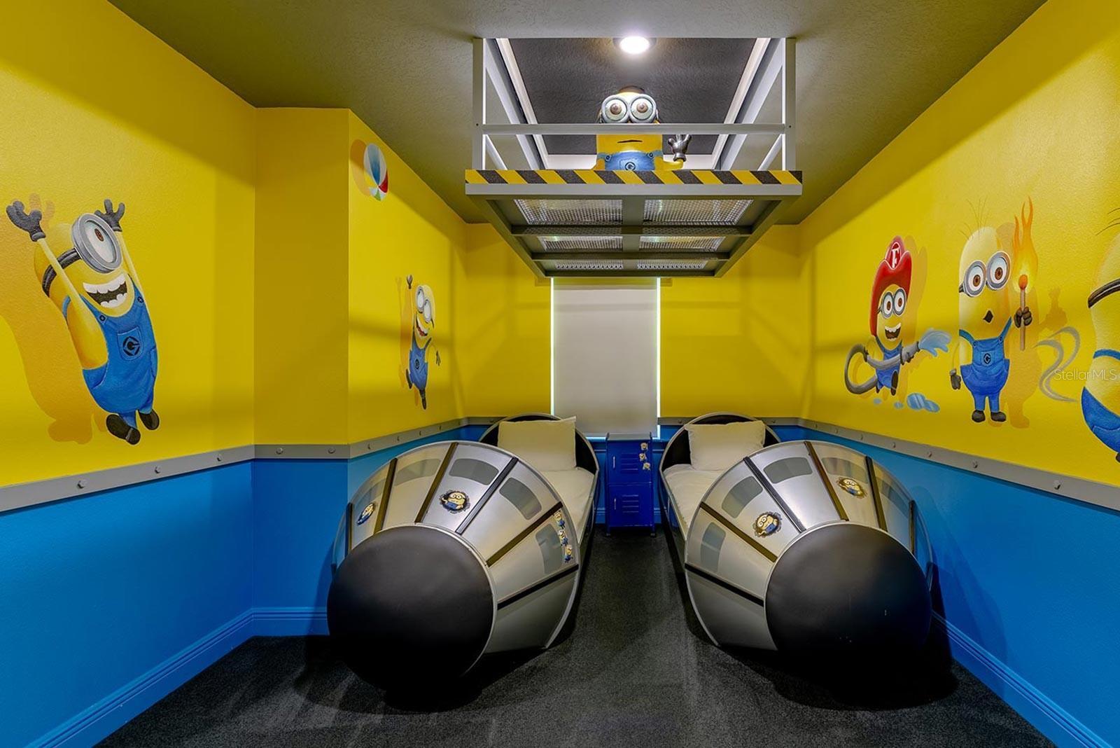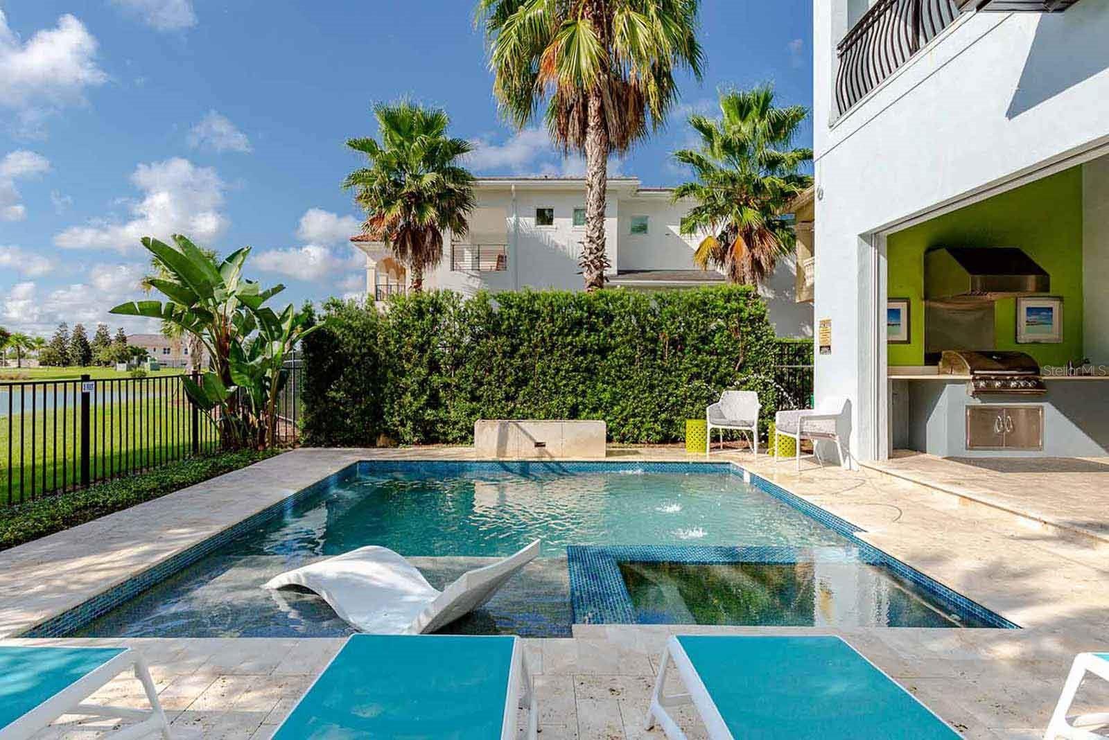 Exceptional 6BR Custom Resort Home with Pool, Spa, Theater & Water Views This one-of-a-kind 6-bedroom, 5-bath home stands out as one of the most unique and desirable properties in the community, offering custom finishes, incredible themed spaces, and a rental history that has been consistently strong. The open main living area features a sleek modern kitchen with double islands, a spacious dining area, and direct views of the private pool, spillover spa, and scenic water backdrop. Entertainment is at the heart of this home with a full theater room, plus an oversized game and play space packed with slides, climbing elements, hoops, gaming consoles, and multiple TVs—an amenity combo very few homes offer. Two immersive themed bedrooms elevate the guest experience, while four additional king/queen suites provide generous space, upscale bathrooms, and great flexibility for large groups. The third-floor suite is a true highlight with double queen beds, lounge seating, mini fridge, and its own private balcony overlooking the pool. Outside, enjoy a covered lanai, built-in grill, in-pool loungers, and plenty of deck space to relax. Fully furnished, turnkey, and located minutes from Orlando’s top attractions, this home delivers a rare mix of custom design and proven rental performance—an exceptional option for both personal use and investment.