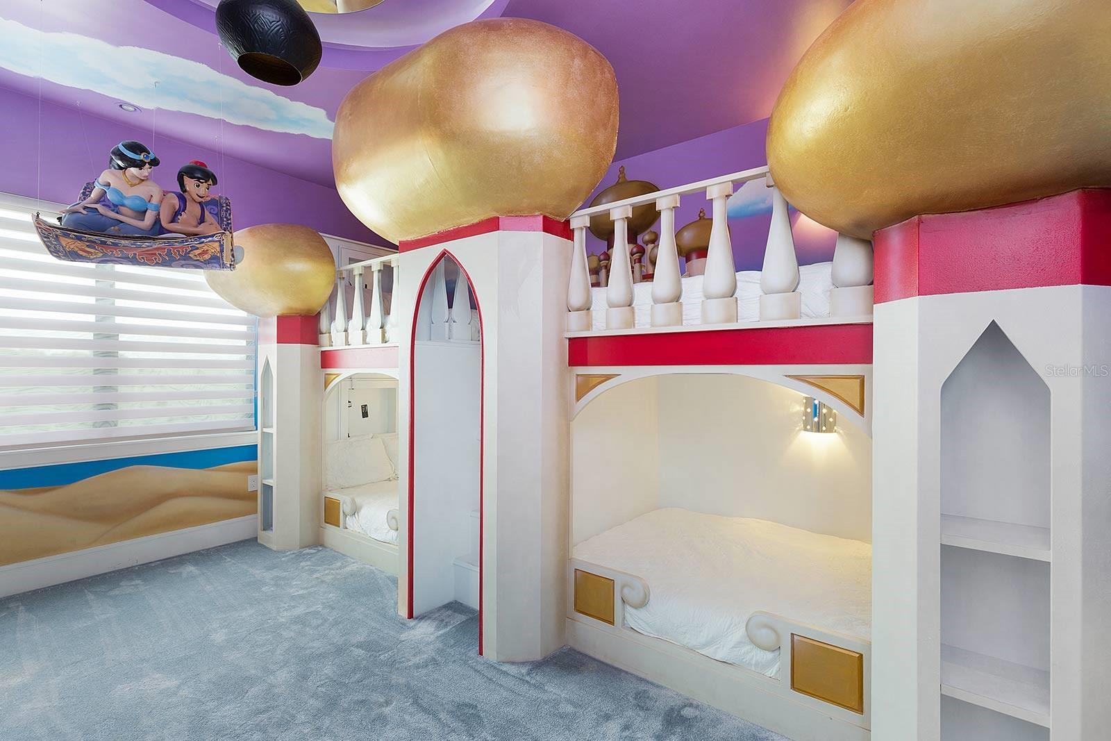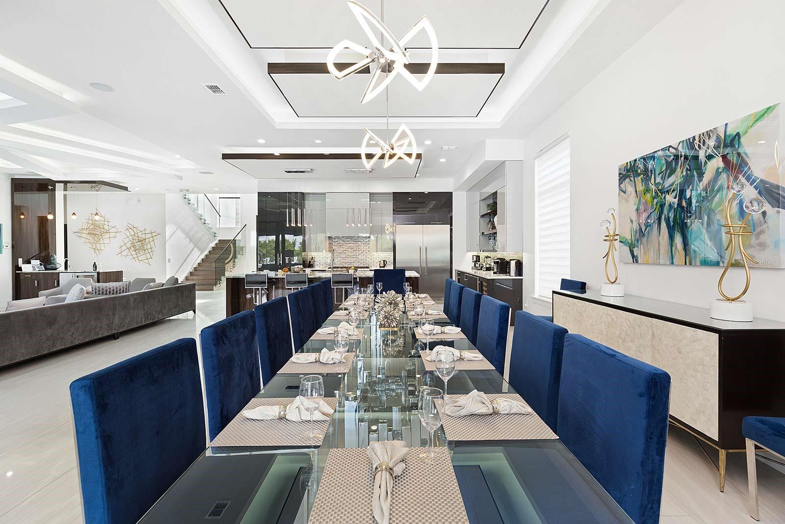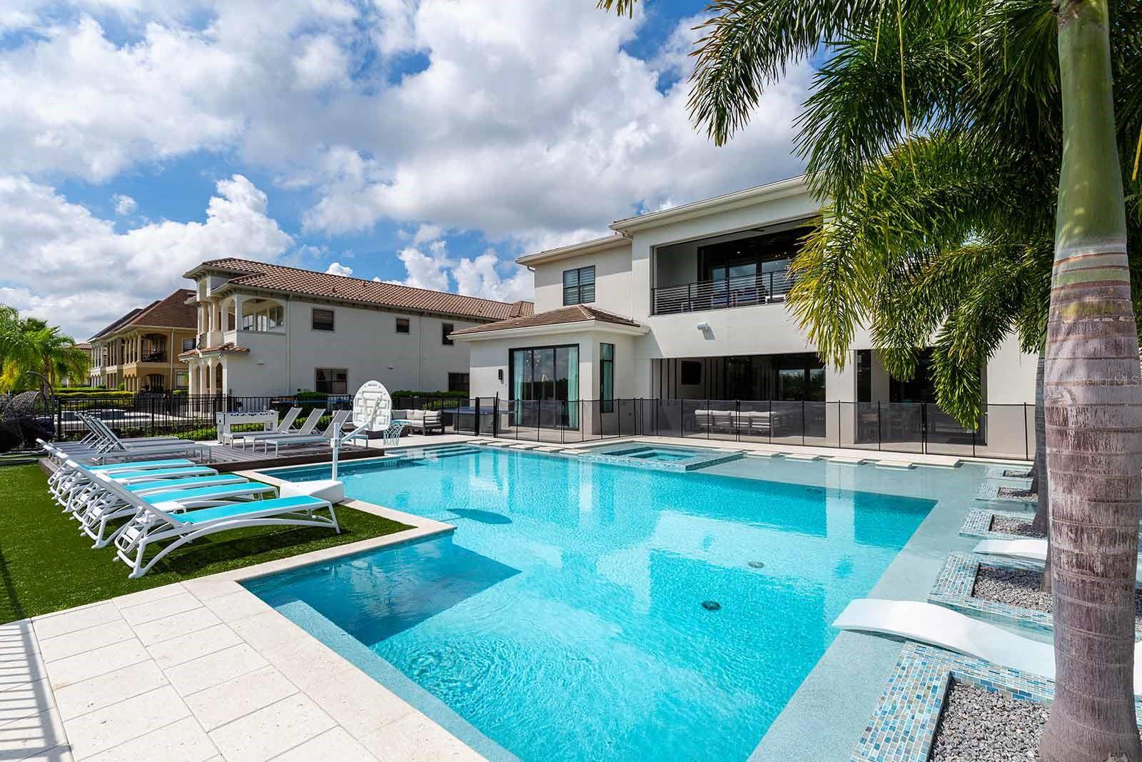 Modern 9-bedroom luxury estate in Reunion Resort with over 9,100 sq.ft. of high-end living and entertainment space. This home is a rental powerhouse and one of the most unique offerings in Reunion—featuring a resort-style pool & spa, multiple indoor/outdoor entertainment zones, and designer finishes throughout. The main level offers a grand open layout with upgraded furnishings, a chef’s kitchen, and seamless indoor/outdoor flow to a massive lanai overlooking Reunion’s championship golf courses. The outdoor space includes a large pool with spillover spa, in-pool loungers, summer kitchen, and multiple covered hangout areas. Inside, the home delivers unmatched amenities: a full theater room with reclining seating, an upstairs entertainment loft with bar, game tables, and balcony, a fitness room, and two incredible themed bunk suites. All nine bedrooms include en-suite baths and modern décor. Located in one of Reunion’s most sought-after sections, this property is the total package—luxury, space, modern updates, and exceptional rental performance. A true statement home built for large families, groups, or the investor seeking a top-tier short-term rental asset.